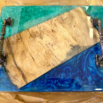 Maple Wood Rectangle 8" x 7" Cheese board Each resin design is one of a kind