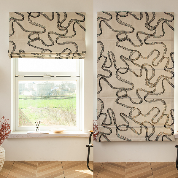A pretty camel-colored curtain with navy blue polka dots. Easy to hang with its tie tops. 100% cotton poplin Dimensions: Height: 250cm / Width: 105cm Block print design