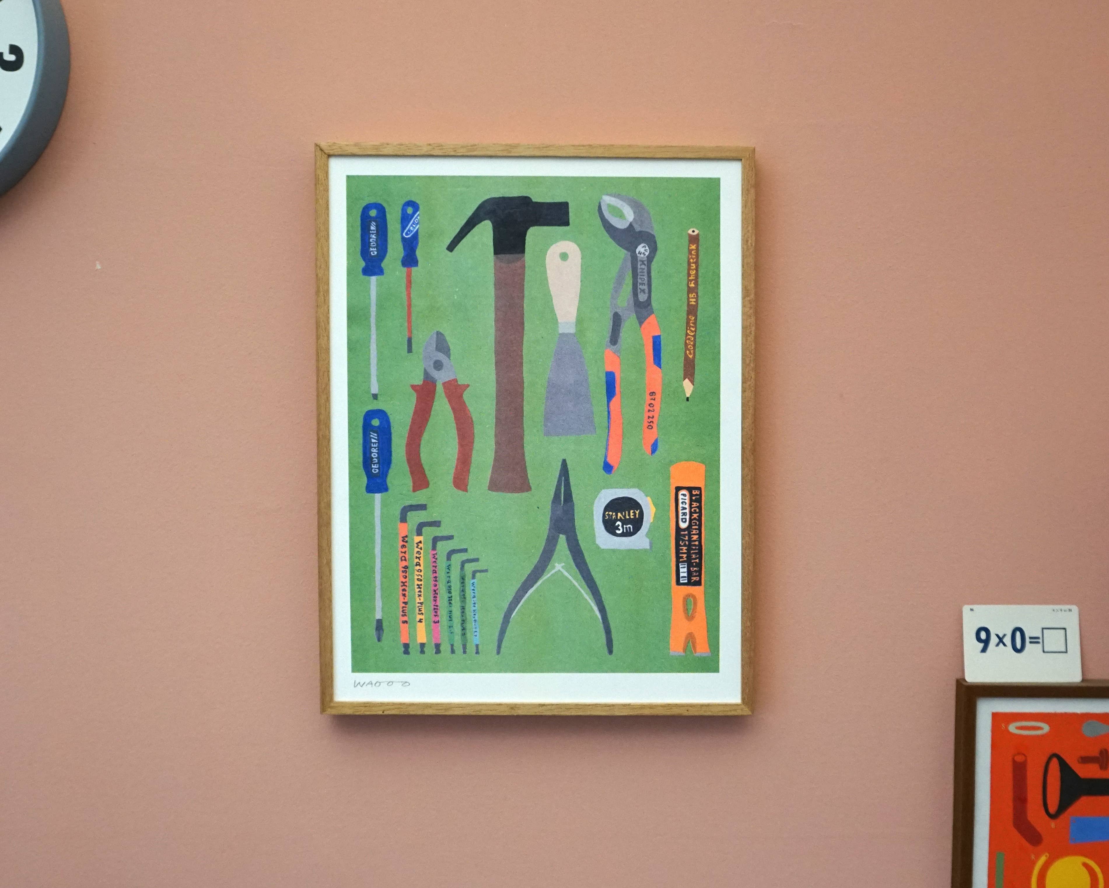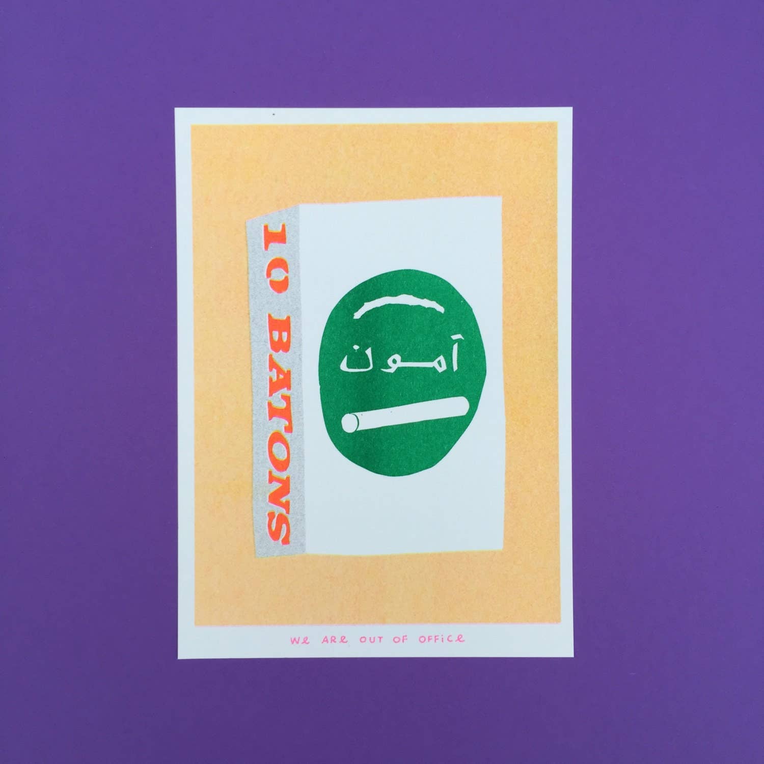 Winneke de Groot and Felix van Dam are two artists working together under the name: ‘We are out of office’. They’re very DIY in their approach to art, skilled as screen printers, painters and illustrators. They run a small studio including a screen print and risograph workshop based in a cherry orchard just outside Utrecht. Their work is inspired by little rarities and memories they pick up in daily life. They use a wide range of media covering print, paiting, sculpture, textile and more. Their style is recognisable and has a bold and colourful aesthetic and reflects their graphic background.