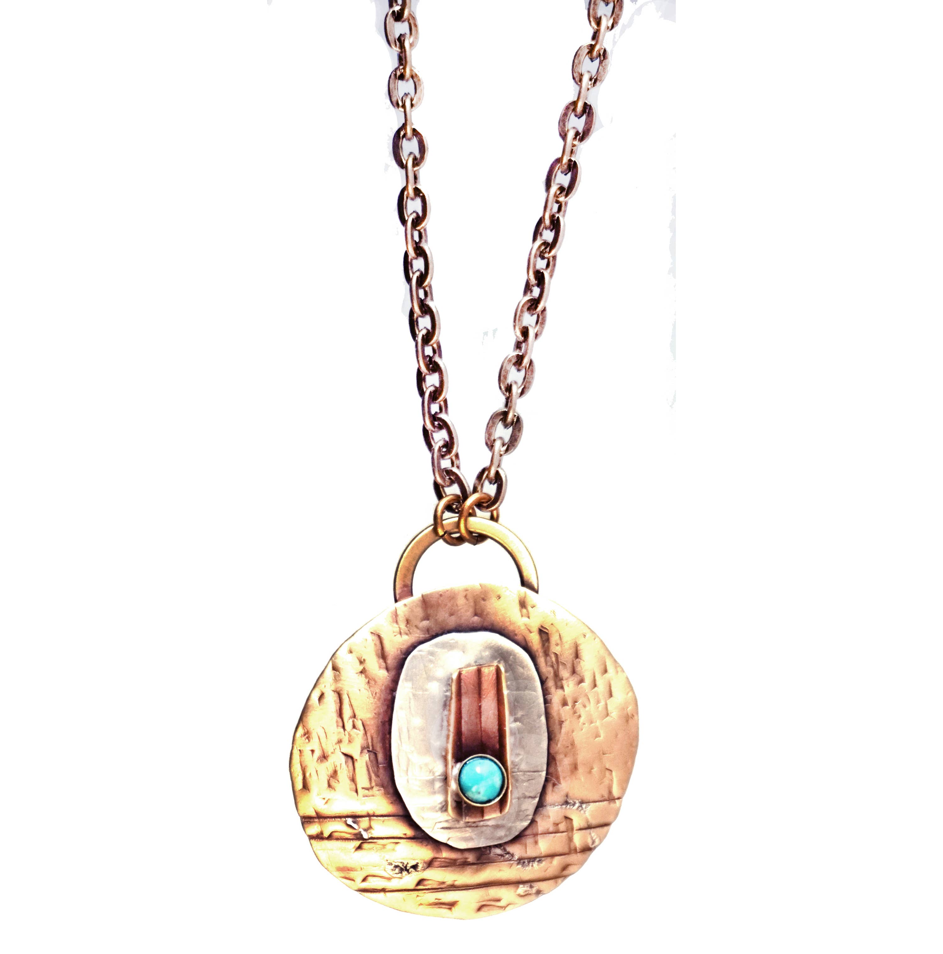 Throughout the 50 years that we, John and Linda Whitney, have been working in metalsmithing our goal has been to produce a smile on our patrons face by creating a jewelry work that is well crafted but very affordable. All of our work is made from beginning to end by using traditional silversmithing techniques of fabrication. When we started creating pieces in 1970 they were all sterling silver and 14 kt gold, but now we have expanded to other metals by adding red brass and copper. These copper based alloys and polymer clay have added in colors and oxidation that were not possible with traditional metals. We continue to experiment with polymer clay as a way to add a colorful story and surface design to larger jewelry. By using this clay we can make light weight pieces some with motifs inspired by African textiles and aboriginal art of the South Seas. The cut pieces of metal are lovingly shaped over silversmithing stakes and tree stumps with the use of forming and raising hammers. Then the work is assembled with gas soldering torches and silver solder. Depending on the design, we may continue to form with hammers and chasing tools, dap, or corrugate to achieve the desired effect. Natural stone embellishments are added to the designs to give it integrity. Our ever bonding love of the plasticity of metal and the joy of creating with our hands is our daily inspiration.