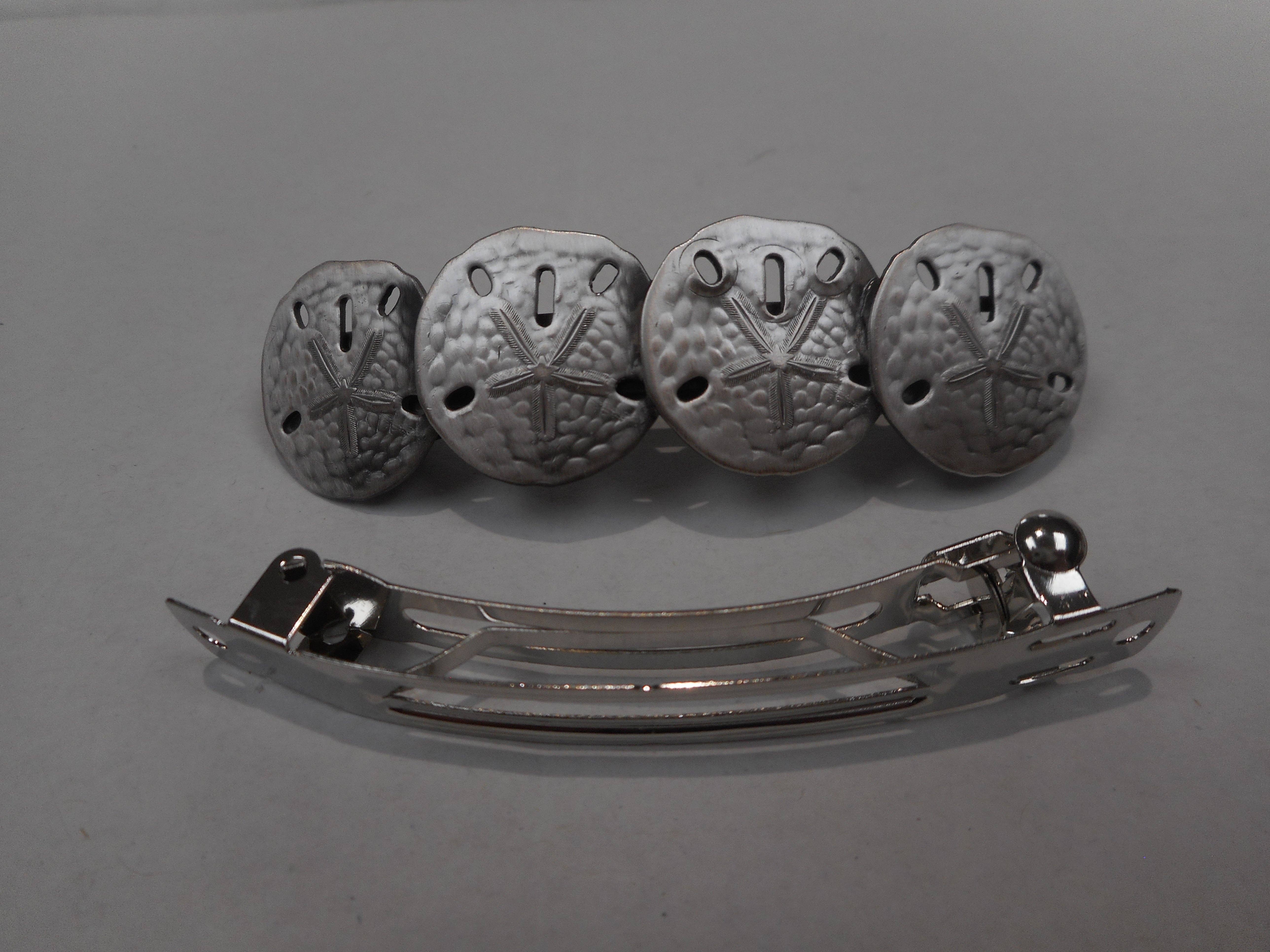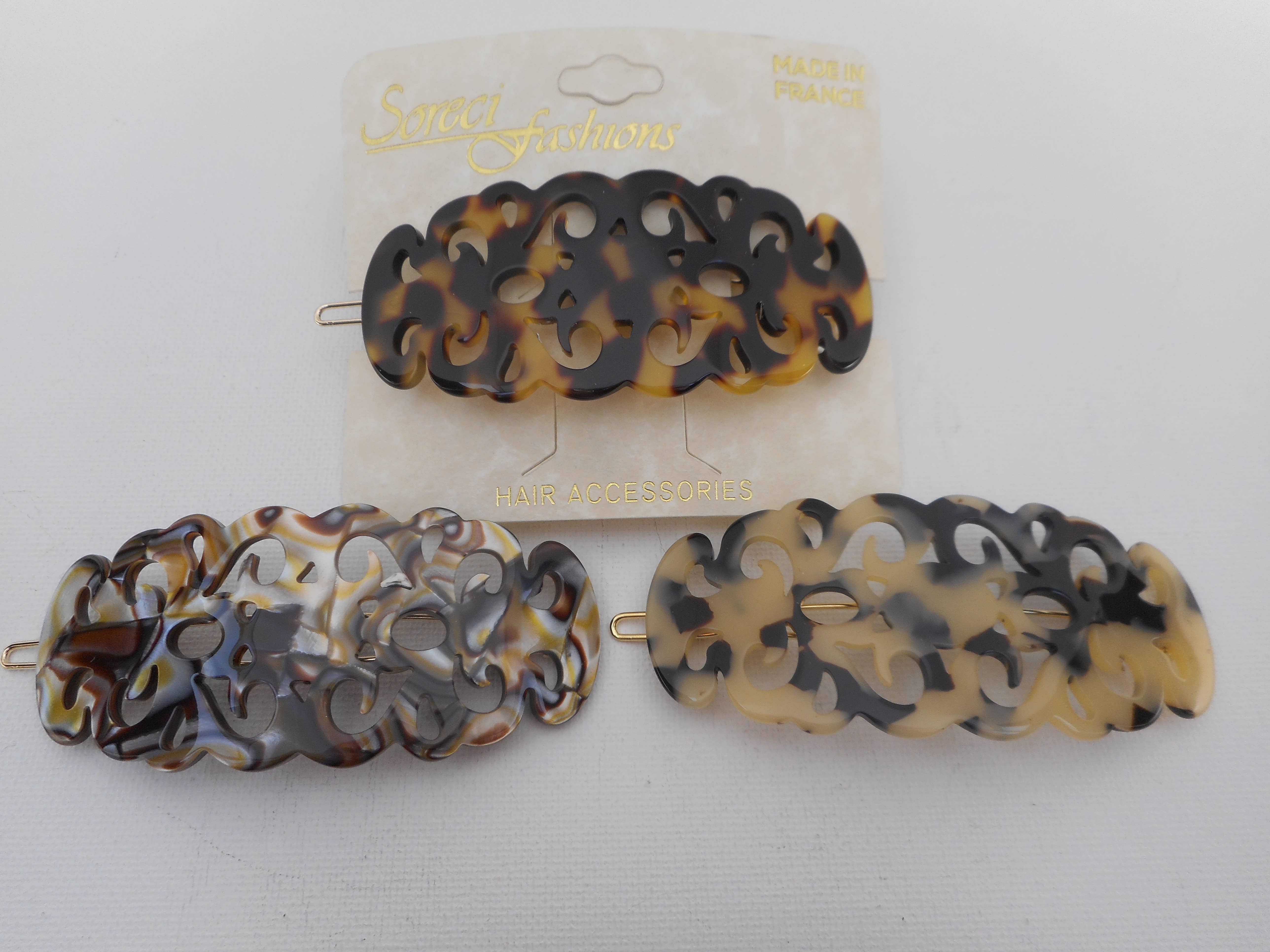 We have been importing French hair goods for about 20 years and have been manufacturing metal barrettes and earrings in the US for the last 40 years. All of our barrettes use a high quality French clip.