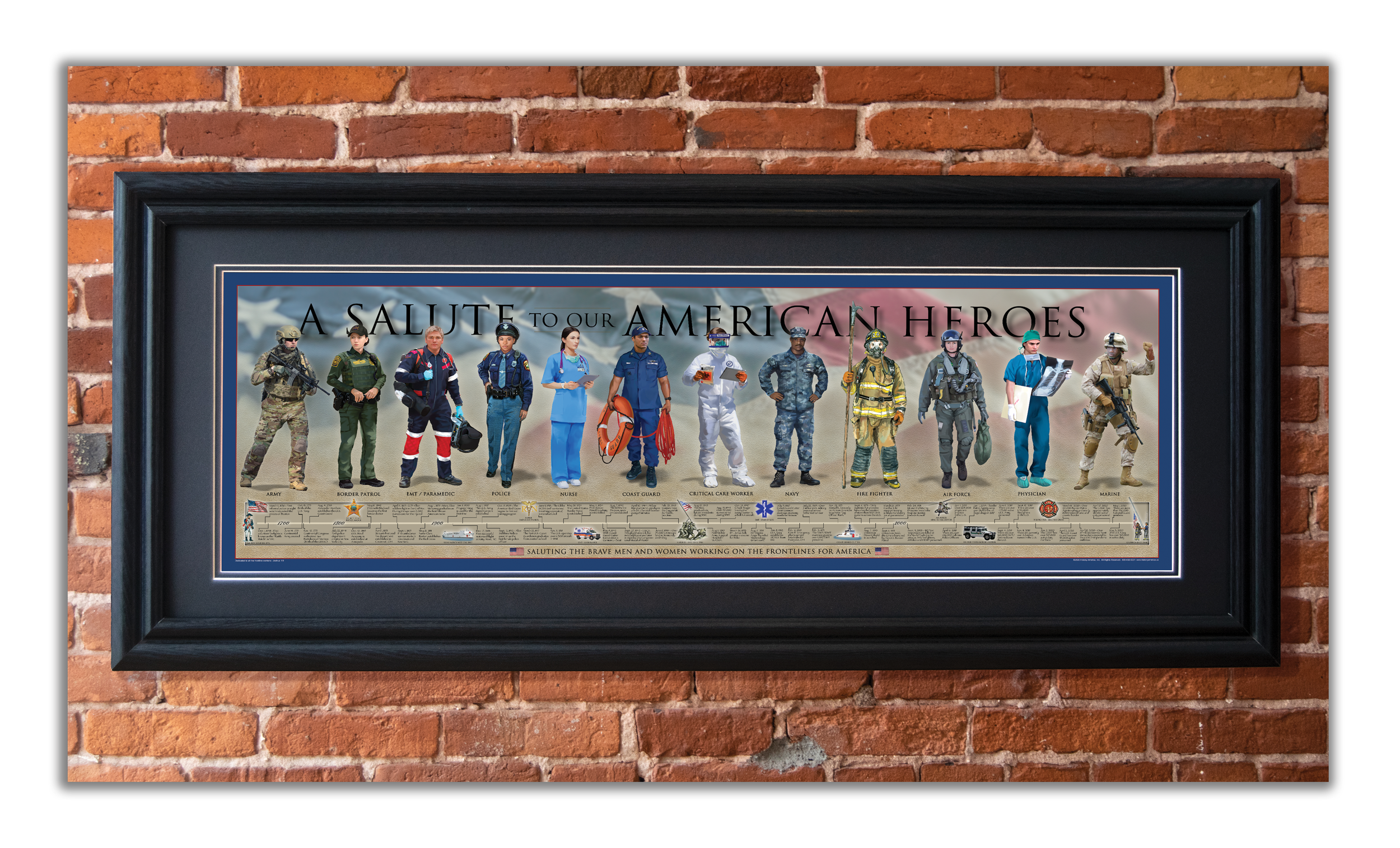 "I have always had a deep love and passion for American history, influenced by my family's rich heritage. This includes five great-great-uncles who fought in the Civil War from Wisconsin and a fourth-generation grandfather who served during the Revolutionary War from Vermont. However, it wasn't until shortly after 9/11 that I first conceived the idea for an American history-themed print." "For over 20 years, History America has dedicated itself to crafting and presenting a remarkable collection of American History prints and gifts. Our mission extends beyond merely creating visually appealing products; it is rooted in the desire to instill a profound sense of patriotism and honor the heroic legacy that defines our nation. With a commitment to reviving and enhancing patriotic awareness, we strive to honor and respect those who have bravely served to safeguard the freedom upon which our great nation stands. Within our extensive portfolio, you will find meticulously curated prints that celebrate the History of the American Soldier, American Firefighter, United States Marine, Women in the US Military, American Police Officer, Old Glory, United States Navy, World War II, American Heroes, American Civil War, American Aviator, American Baseball, American Football, An Appeal to Heaven, Join or Die, and We the People. Each piece encapsulates a unique facet of our nation's journey, made in America, and designed to inspire and connect with the rich tapestry of our shared history.