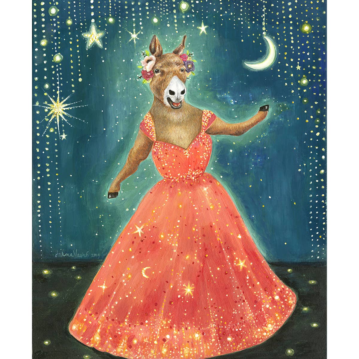 Welcome to The Wondrous World of Jahna Vashti. Born to create, Jahna paints the world as she imagines it. All of the silly and fanciful thoughts one has as a kid never ceased. In 2011 her paintings started piling up. Hearing the words “It makes me happy” over and over again, Jahna realized her purpose. Taking a leap of faith, she had her work printed and quickly started selling online, in boutiques & shops, and at local craft fairs. Creating products from her art has been Jahna’s full time dream job ever since. Whimsical art that brings joy one card, print & sticker at a time!