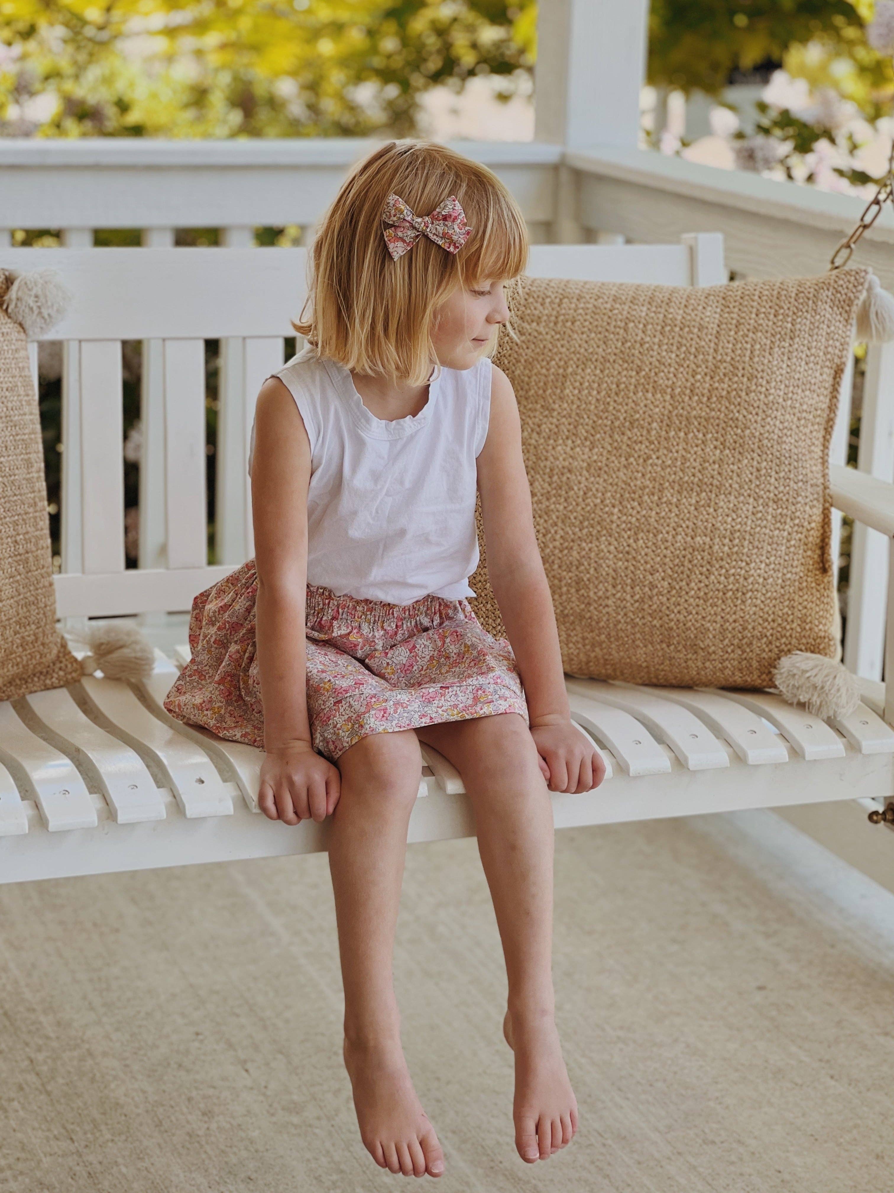 Hadley Girl was born out of a love of my two girls, Hadley and Tallulah, all things fashion, and as a celebration of childhood. And let's be honest, when our gals look cute, we feel pretty good too! My hope is that our bows and clothing will strike that perfect balance between feminine and minimalist, being both simple and sweet- but overall, we want to make clothes and bows that you and your gal will both reach for in the morning, which makes everyone happy! A little bit about our bows Our collection of simple and sweet hand-tied bows and headbands is girly but not over the top. So, there won’t be any “What was I thinking?” moments when you look back on baby pictures. With a handful of colors and beautiful patterns to choose from, you’ll have something for every outfit. We especially love the neutral palette, so you don’t have to try too hard to coordinate on one of those mornings. Unparalleled Style, perfect for Play Our clothes are made to be worn and loved, perfect for play, and easy to wash! Perfect for newborns and toddlers alike, you’ll be smitten with our charming clips and headbands that actually stay put, unlike your busy babe.
