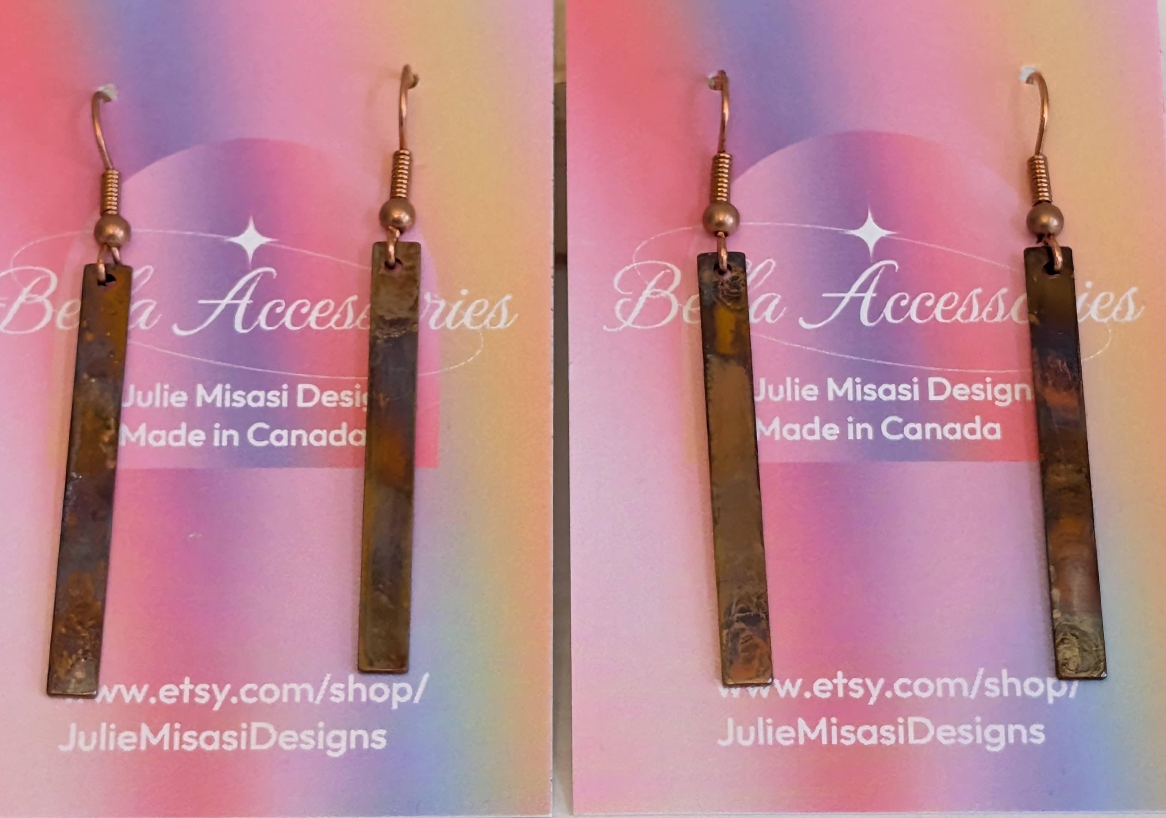 Bella Accessories is a Canadian-based jewelry company. I love to work with all sorts of different mediums. From torches and fire to regular Himalayan pink sea salt on copper, there is nothing more exciting to me than to see the different and unique results I can achieve everytime I work on a new piece.