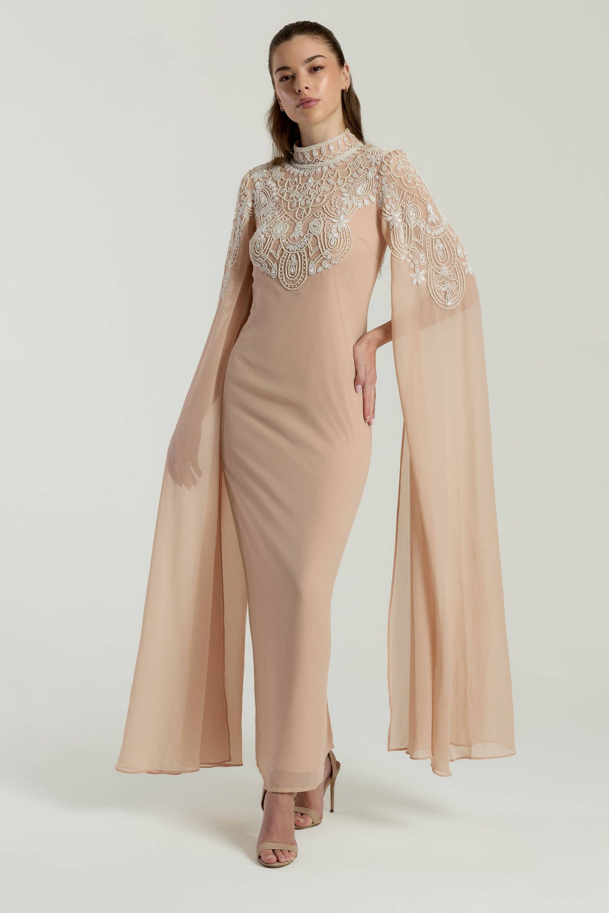Frock and Frill make special dresses for every occasion. Consisting of embellished dresses for weddings, proms and parties, our collection is perfect for the style-conscious woman who wants to stand out for their elegance and femininity. Each piece is designed in-house by a team of dreamers and designers, before being hand-beaded and stitched in India, supporting an ethical production model. Since our launch in 2001, the brand has developed a unique flare for combining classic vintage shapes with modern trends and artisanal embellishments. Frock and Frill was borne of a love of catwalk fashion and vintage charm, and prides itself on an unerring dedication to both quality and ethical production. Amelia Rose is a sister brand of Frock and Frill. This is a bridal collection, featuring many styles with intricate beadwork, as well as tonal sequins. Perfect for parties and other special events, the Amelia Rose collection will ensure that you make a striking entrance, before sparkling the night away.