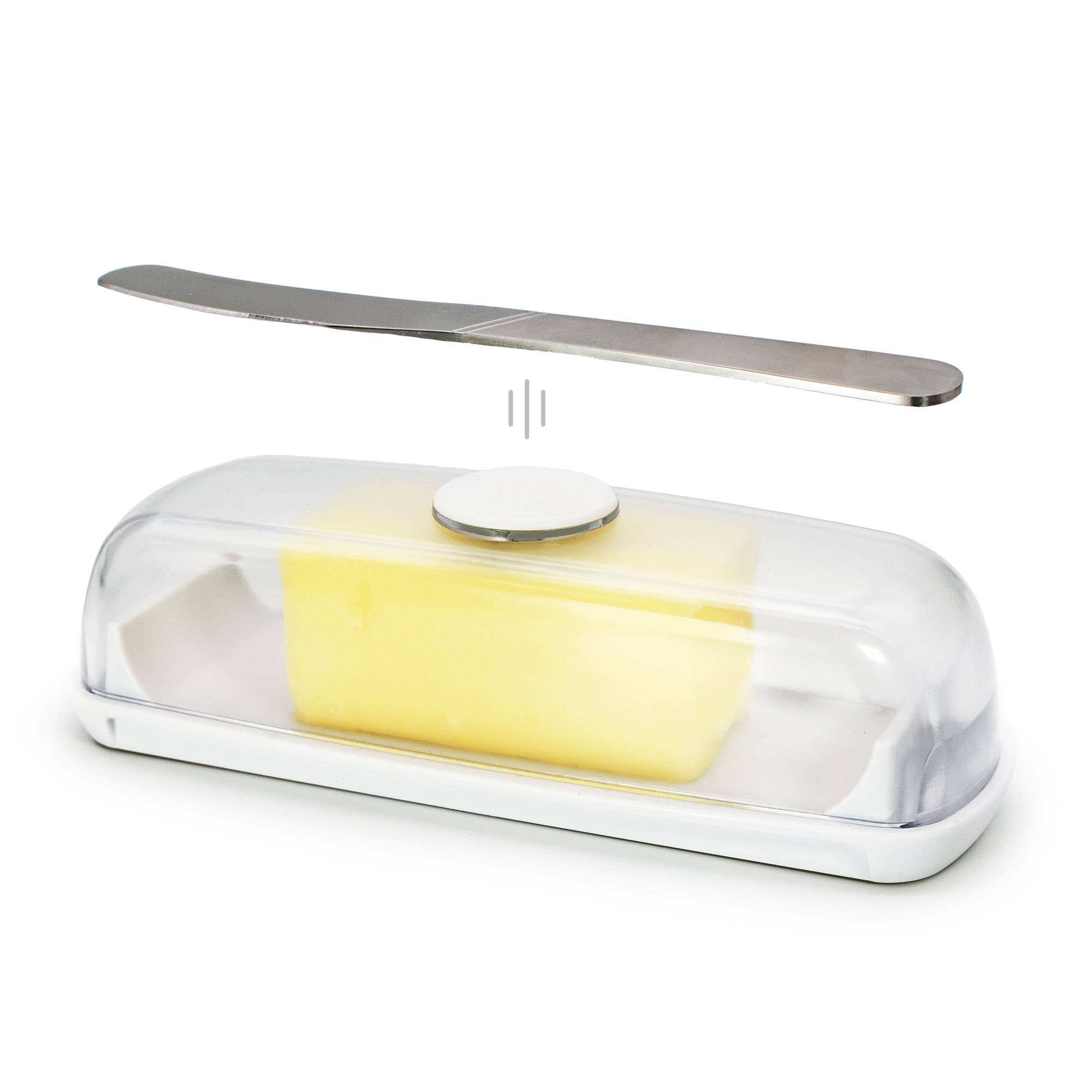 In 2019 Ryan started making sourdough bread. He and his wife Valerie started looking for a new and better butter dish, but they didn’t like the seemingly old fashioned designs they saw online and wanted something a bit more clean and stylish. Ryan also thought that butter dishes could have some design improvements like keeping butter mess from getting on the table, easily keeping the knife with the dish, and easier ways to scoop up butter. He put pen to paper and drew out some ideas while also cutting up other butter dishes into new shapes and glueing magnets on them. Better designs started to take shape. Having already developed one product, they decided to go for it and make the butter dish they themselves wanted. - “As Ryan stood in his Seattle kitchen buttering a warm slice of homemade sourdough, he frowned. He didn’t have anywhere to set his butter knife down without making a mess. And the butter on the dish lid had already left a greasy rectangle on the counter. As he tried to figure out where to keep his buttery knife for the next time he needed it, he became grumpy. I’d know, I’m his wife. But grumpiness can lead to good ideas. With Butter Hub, you can now get that butter onto your bread and that bread into your mouth... without becoming grumpy.”