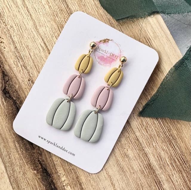 Sparkl + DOT creates handcrafted accessories, specifically earrings, hair barrettes, necklaces, rings, and bracelets made with polymer clay and polymer clay components. All our products are carefully sourced and made with quality hypoallergenic materials. We begin the process by creating our own custom clay cutters, which we design and 3D print in-house. Then we create unique hand-mixed colors out of polymer clay. Some styles include silk screen transfers using paint or transfer sheets, which are also made in-house and transfer permanent ink onto the clay when water is applied. Once the clay components are baked, we assemble them with a variety of metal, clay, acrylic, and resin components. We have recently incorporated mini 3D florals into our designs to give them extra dimension. We offer a variety of styles as well as custom wholesale orders to fit your shop's needs.