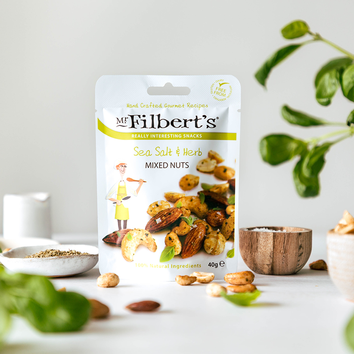 AN AWARD-WINNING INDEPENDENT SNACK BRAND SINCE 2010. Snacks Beyond Expectation Established in 2010 by a small group of food enthusiasts who, with 40+ years of combined fine food manufacturing experience, identified a gap in the market for a snack that was strikingly delicious, of exceptional quality and totally natural. They set off, producing the first snacks by hand, using a refurbished coffee roaster. We carefully tumble and marinate our gourmet snacks with fresh herbs and foraged ingredients, to give them their truly distinctive taste. It’s this attention to detail that makes Mr Filbert’s a favourite in bars, hotels and delicatessens everywhere. Unlike other snack producers, all of Mr Filbert’s recipes are oven roasted by hand and not oil fried, making for snacks that are naturally healthier, more delicious and truly beyond expectation.