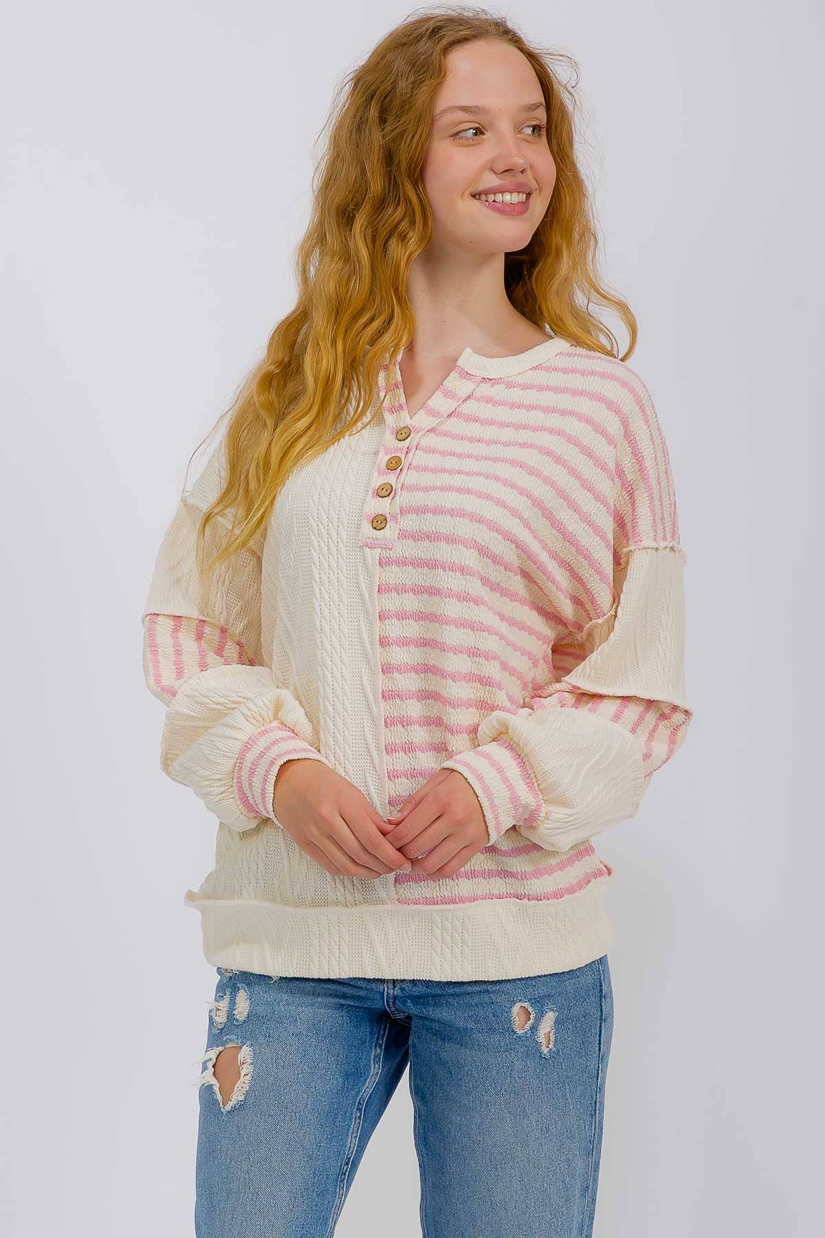 ![[PLUS SIZE] Stripe Cable Knit Patchwork Button top T6022XL for wholesale by 7th Ray](https://cdn.faire.com/fastly/1cd45e4b1de85acc2fc23b24ceaa6b7bde05c4e6f02eaf11e3841158fb0cf975.jpeg?bg-color=FFFFFF&dpr=1&fit=crop&format=jpg&height=960&precrop=1199,1599,x0,y0,safe&width=720)