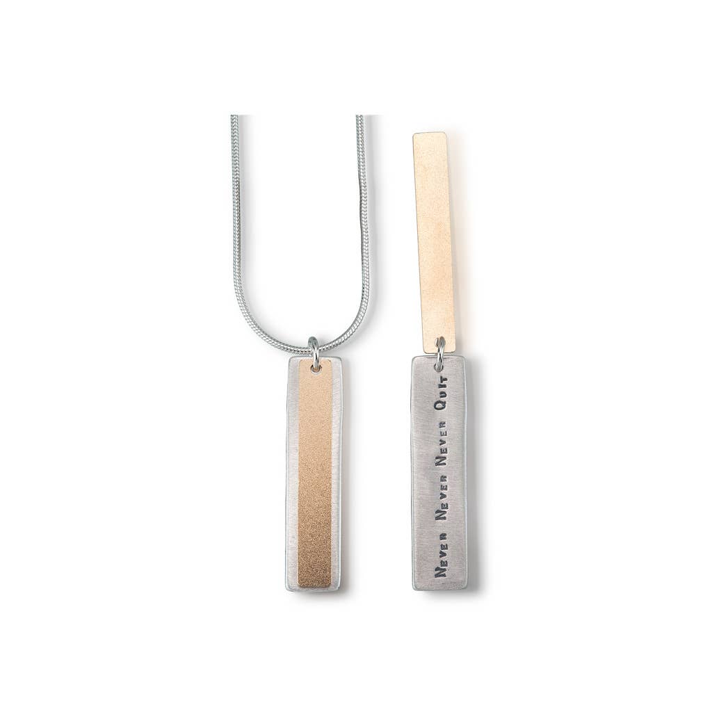 Kathy sprouted in the good old midwest in Cinti, Ohio. She has been making jewelry since she was a kid and is now riding a slip n slide towards 50. As the original trailblazer of quote jewelry, Kathy has been designing with words abound for over 28 yrs. It started with a small letter stamp set her father gave her in 1992. She first made miniature book necklaces with multiple pages that held one’s deepest aspirations, personal sentiments, or would become an amulet for a time of deep tribulation. From this sprung forth an entire line of jewelry that would carry all of those words forward into a beautiful prospect that has continued to grow and touch people around the world. What is very special is that the words are secret for the wearer as there is a design cut out of a 22kt gold heavily plated bronze that covers the sterling holding the quote beneath. You catch a peek of the letters through the top layer design before lifting to reveal the real beauty below. Poetry that lives and swings across your very heart. We proudly make everything in the state of California under the strictest of environmental rules. We are a small family business and take great pride in delivering the highest of quality with 100% certainty. Besides creative ventures of many types, Kathy enjoys her children endlessly, cooking and eating, scuba diving, adventures and travel of any kind, and drinking champagne while beating her beloved husband (who brilliantly runs the business) at gin rummy!