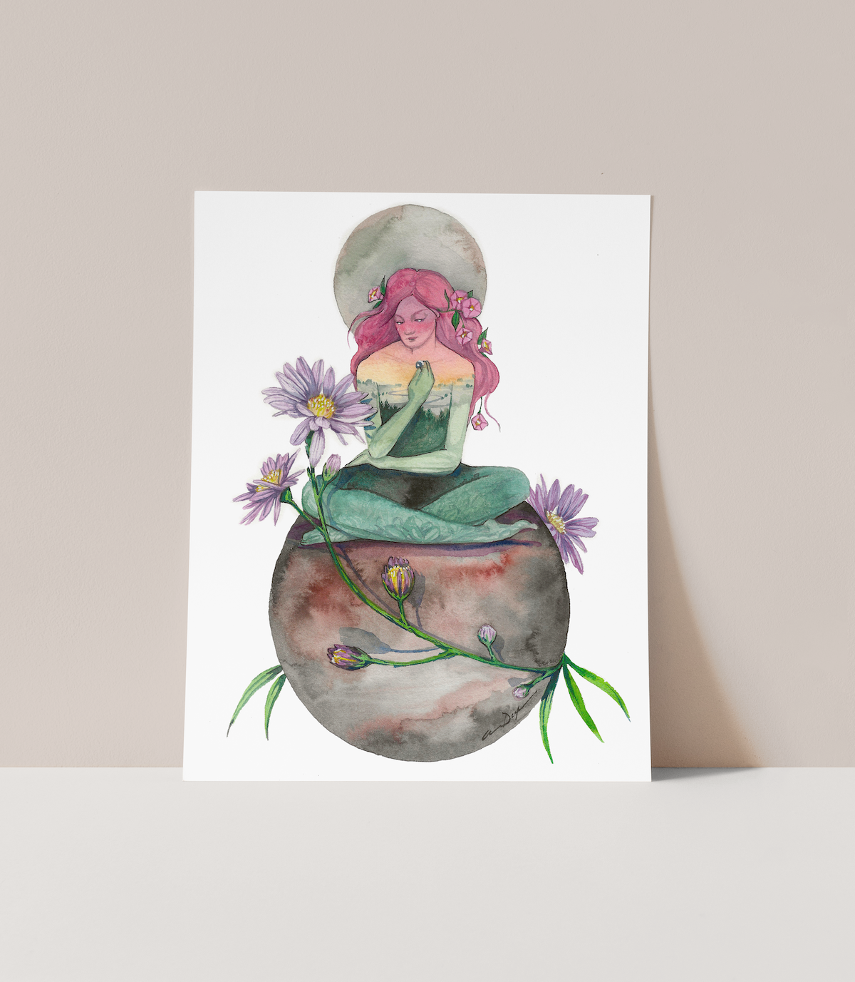 Enchantment in Quiet Moments. As a visual storyteller, I create art that celebrates the beauty in slowing down and finding vibrant quiet moments. My work bridges our inner worlds with shared human experience. My work fuses landscape, flora, and fauna with the human figure, serving as gentle invitations to pause, breathe, and remember the magic in both solitude and togetherness. Each piece becomes a sanctuary where viewers reconnect with wonder and re-enchant their world. My Collection: Fine Art Prints: Museum-quality reproductions that honor the vibrant energy of their originals Greeting Cards: Intimate messengers for life's sacred moments Wearable Art: Personal talismans carrying connection and wonder Gaia: Lessons from the Earth Oracle Deck: 44 cards bridging inner wisdom with natural world In a fragmented world, this collection offers pathways back to ourselves and each other, reminding us that wonder exists in both individual journeys and shared experiences, and creating spaces where people recognize the sacred within themselves and their relationships. Andrea's studio is located in Rochester, New York.