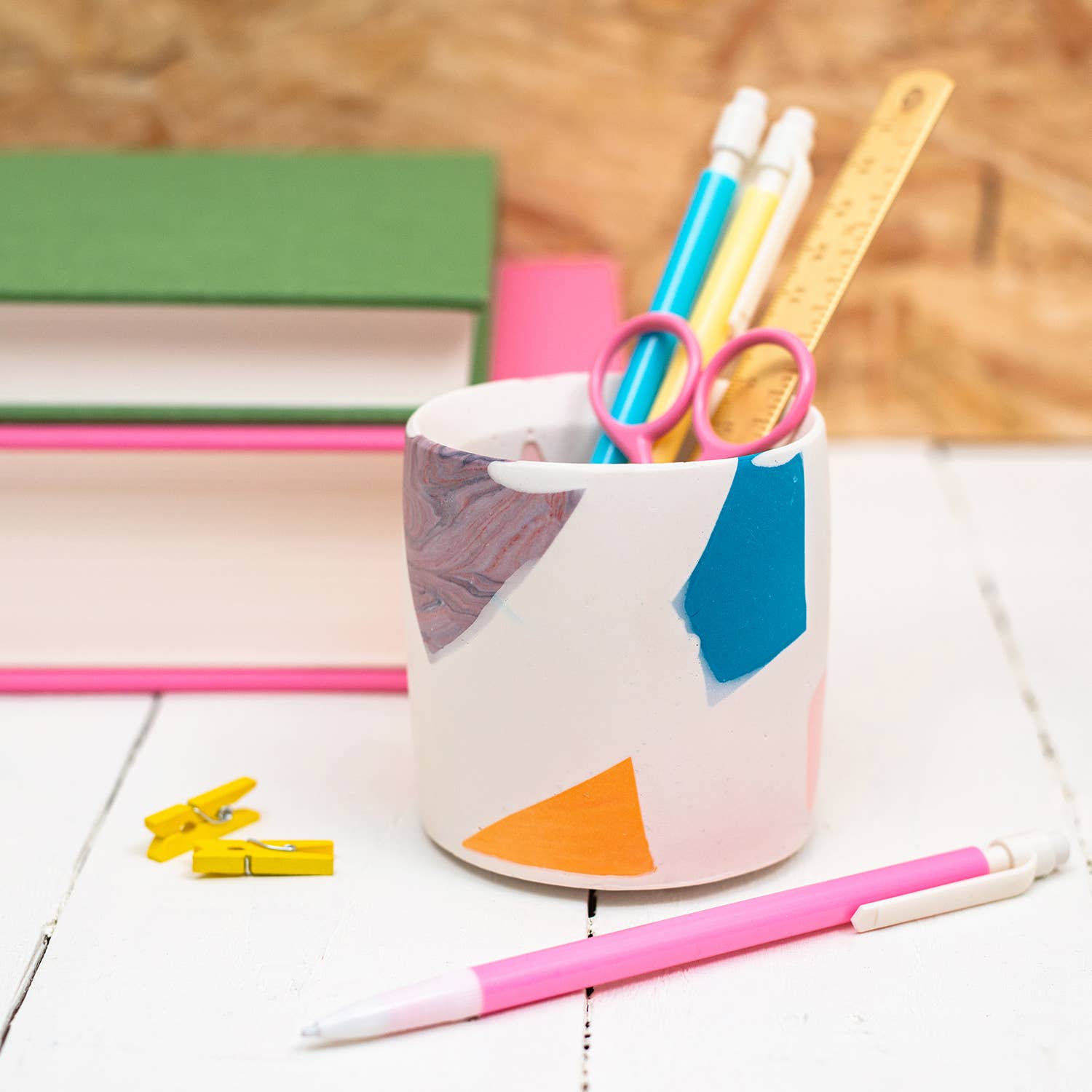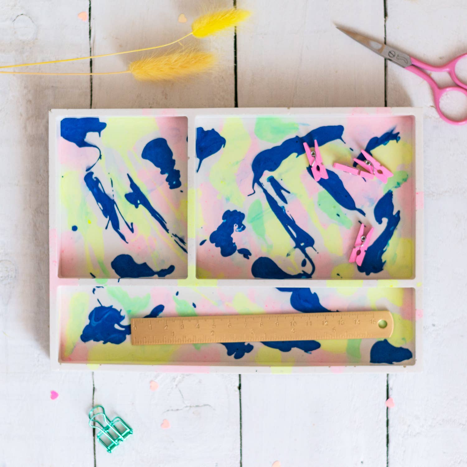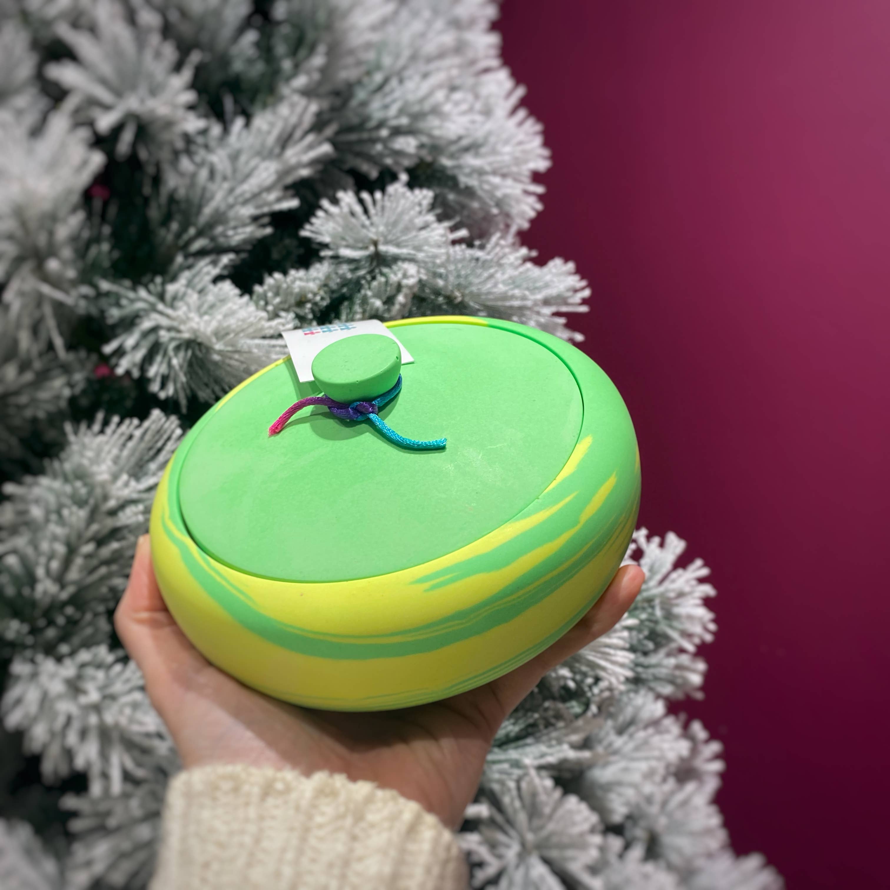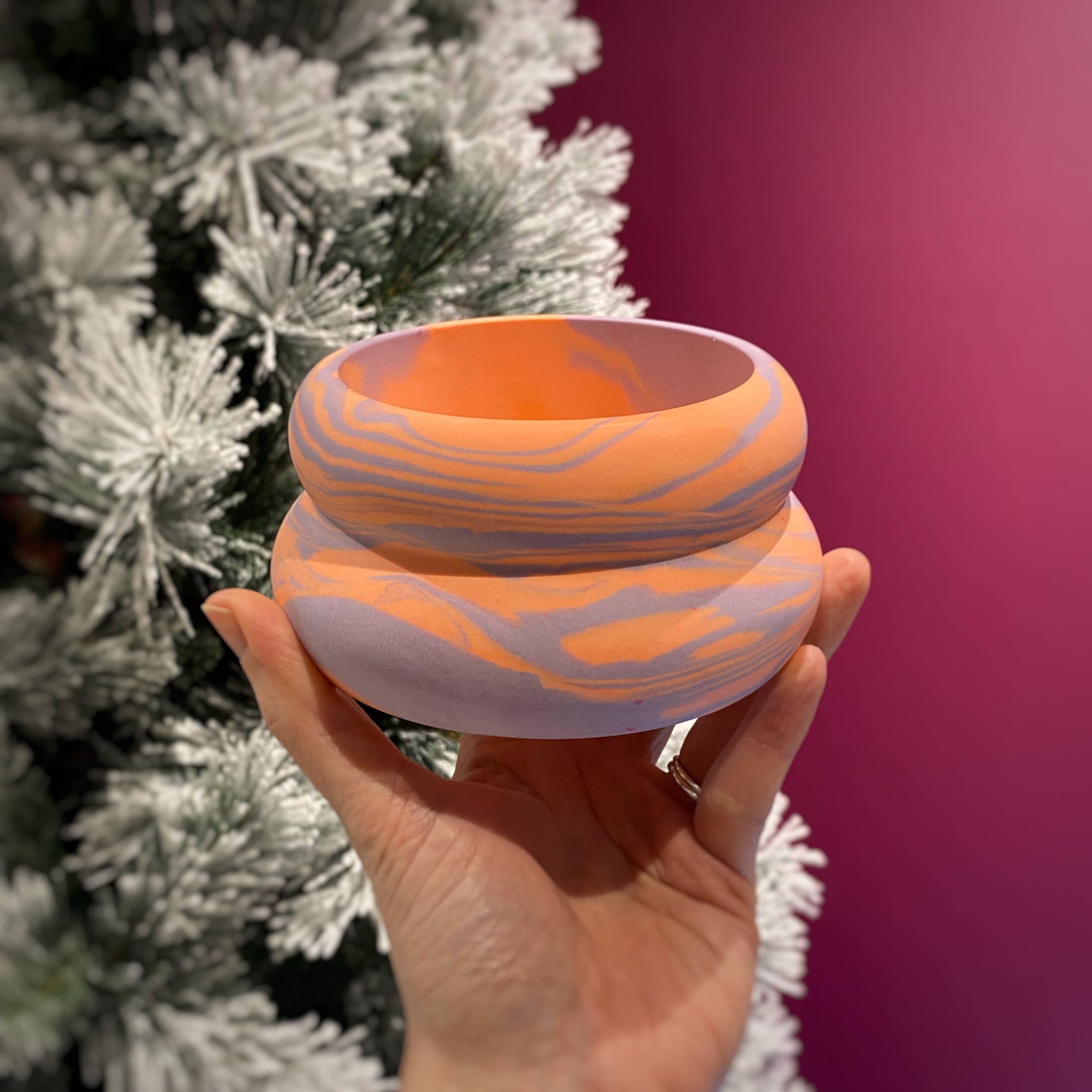 My journey to Nine Angels has taken a few unexpected turns. I studied dentistry at the University of Dundee, then worked in medical research, followed by several years at Google. On paper, it all made sense, but creatively, I felt stuck. I wanted to work with my hands, to play with colour, shape, and texture; to make things that bring joy. That’s when I discovered Jesmonite. I was instantly hooked by its versatility and the freedom it gave me to experiment. What started as a side project quickly turned into something much bigger. Now, I run my studio from Forgan Arts Centre in Newport-on-Tay, where I handcraft bold, vibrant pieces designed to brighten up everyday spaces. Each item is made in small batches, with care and character. I’m inspired by colour, modern design, and the idea that functional objects can still feel like art. This brand is a celebration of creative freedom, playful design, and following your own path, even if it’s not the one you originally planned.