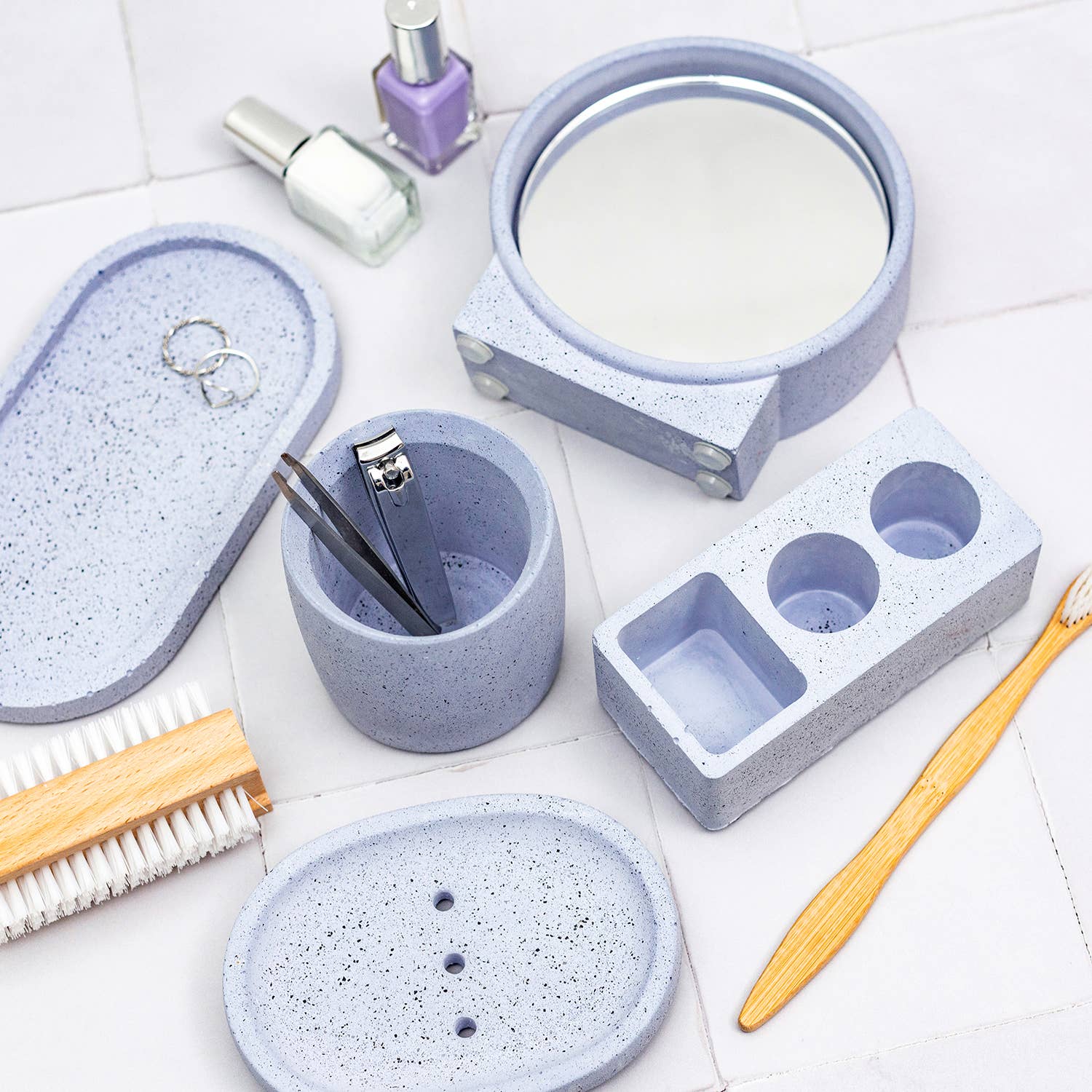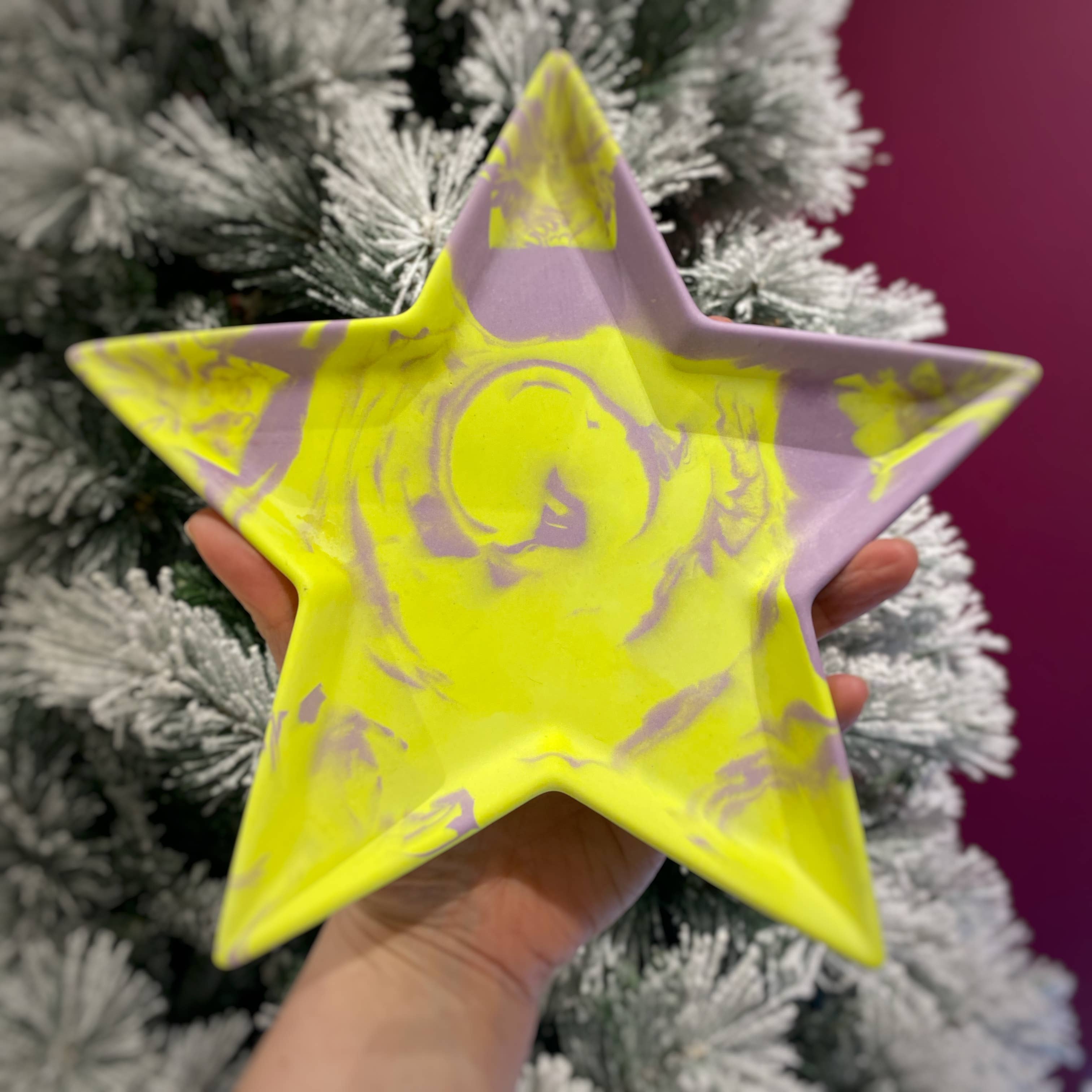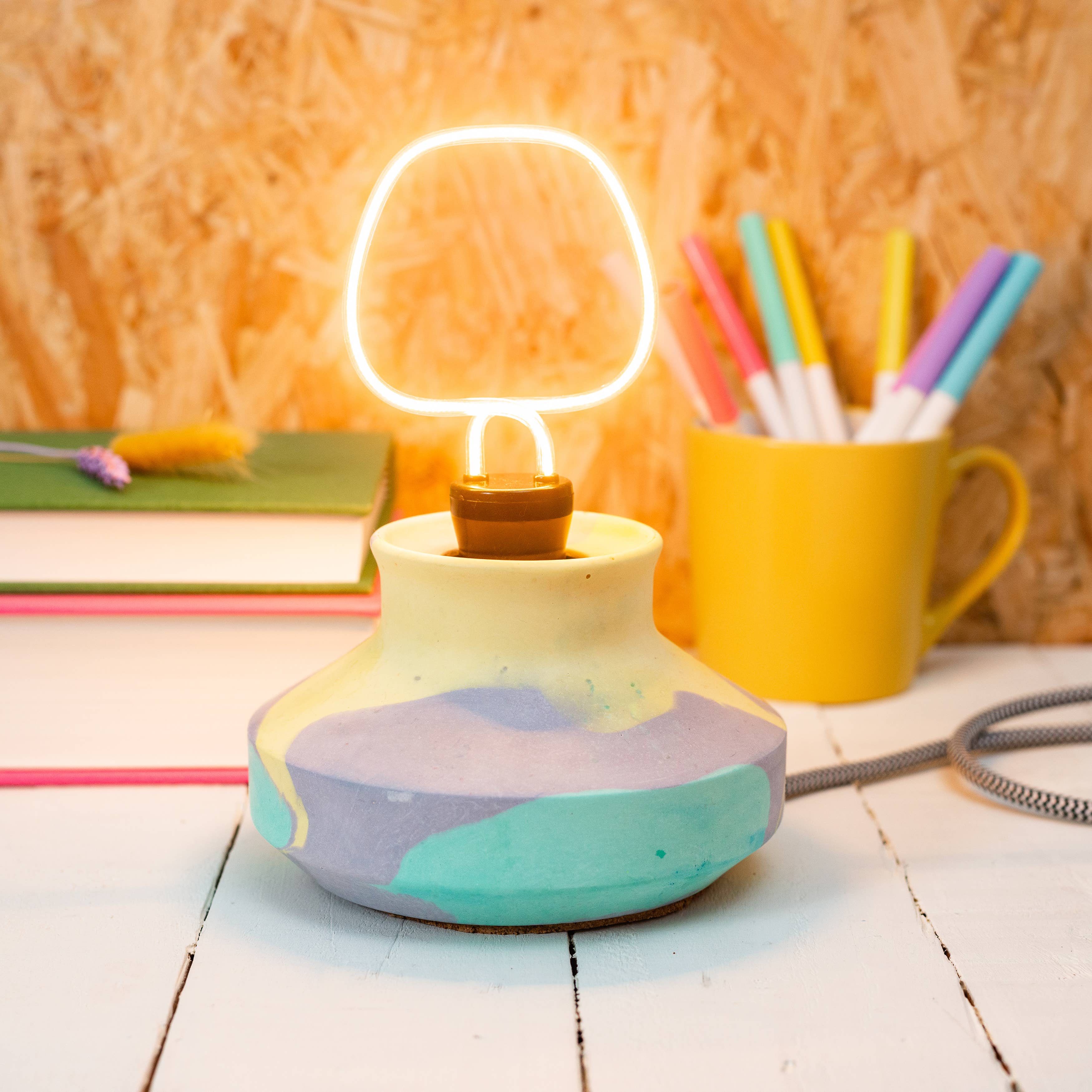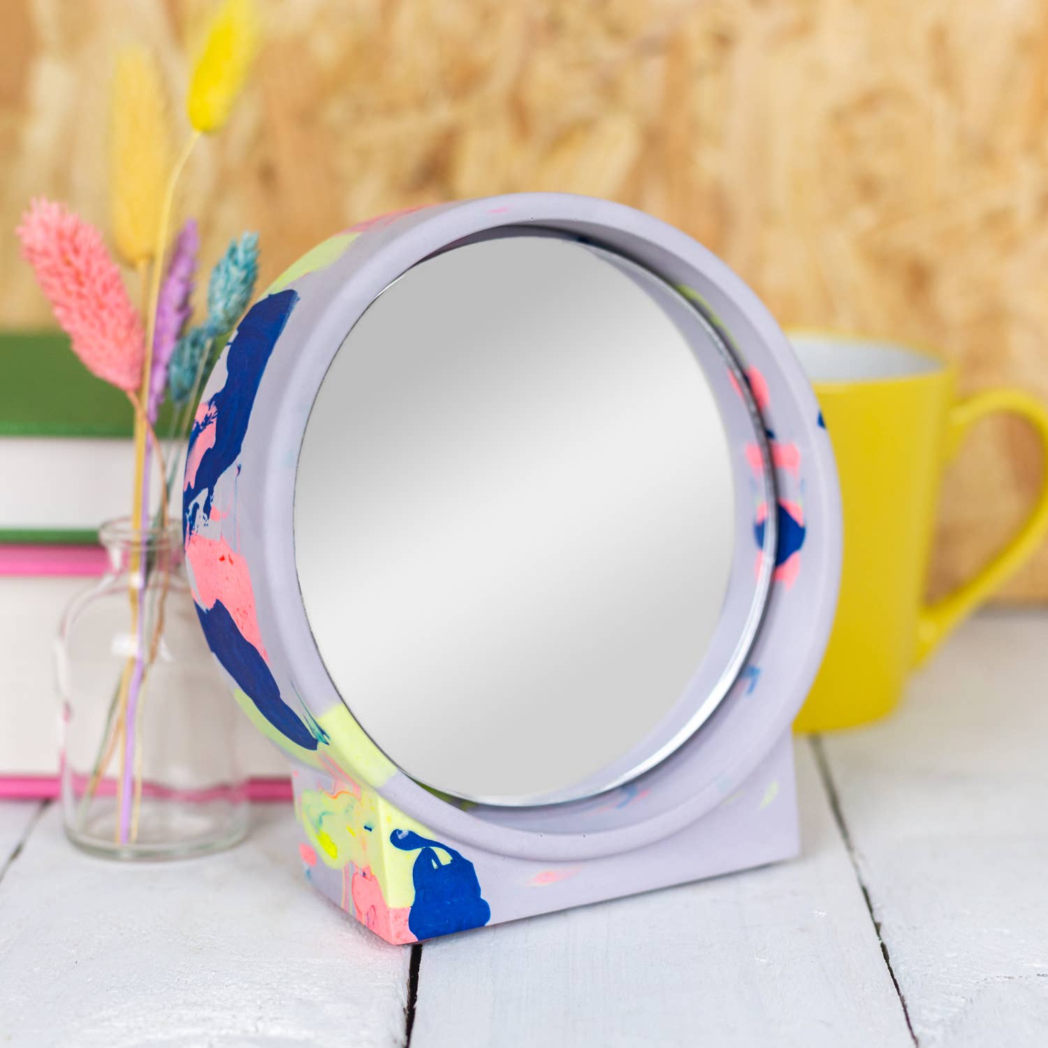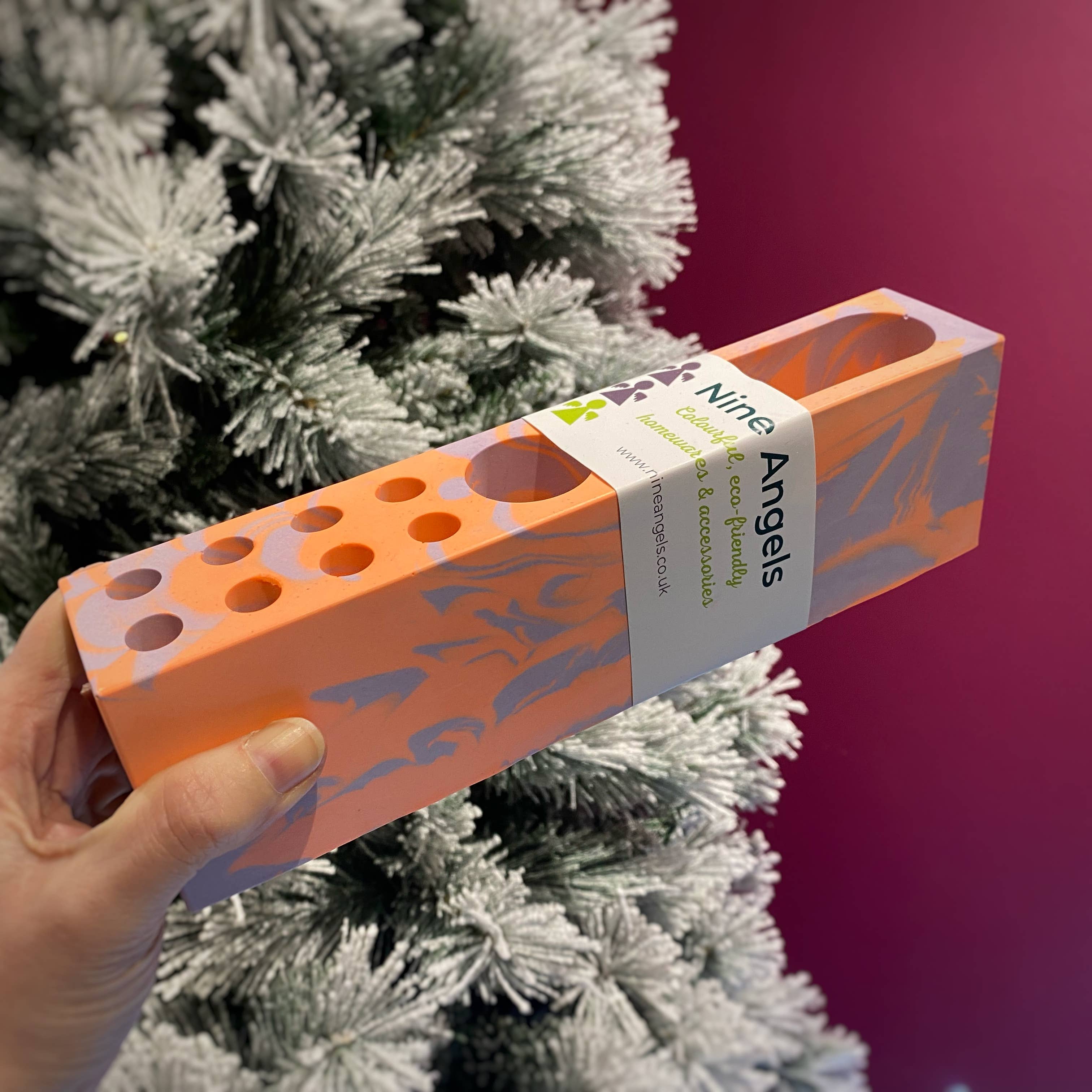 My journey to Nine Angels has taken a few unexpected turns. I studied dentistry at the University of Dundee, then worked in medical research, followed by several years at Google. On paper, it all made sense, but creatively, I felt stuck. I wanted to work with my hands, to play with colour, shape, and texture; to make things that bring joy. That’s when I discovered Jesmonite. I was instantly hooked by its versatility and the freedom it gave me to experiment. What started as a side project quickly turned into something much bigger. Now, I run my studio from Forgan Arts Centre in Newport-on-Tay, where I handcraft bold, vibrant pieces designed to brighten up everyday spaces. Each item is made in small batches, with care and character. I’m inspired by colour, modern design, and the idea that functional objects can still feel like art. This brand is a celebration of creative freedom, playful design, and following your own path, even if it’s not the one you originally planned.