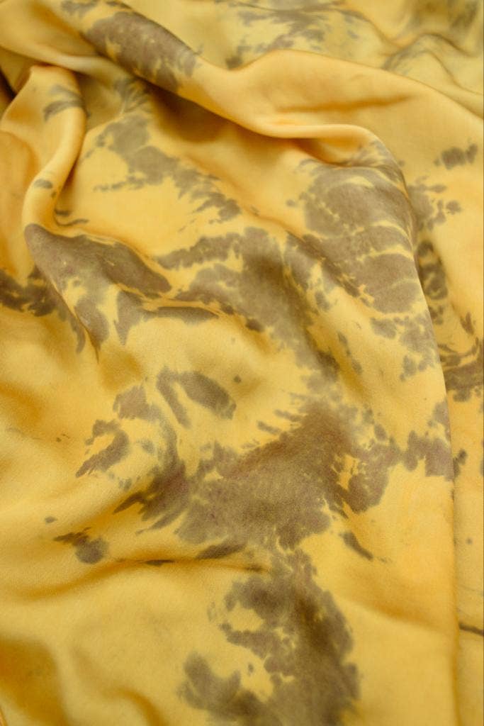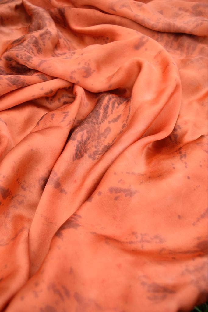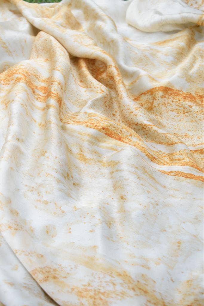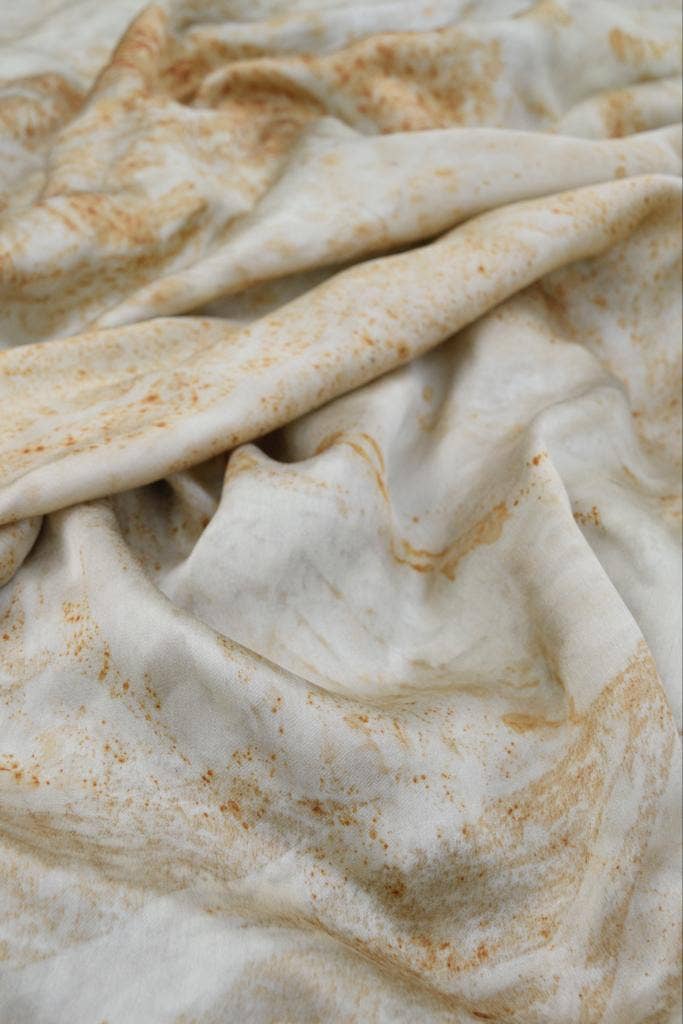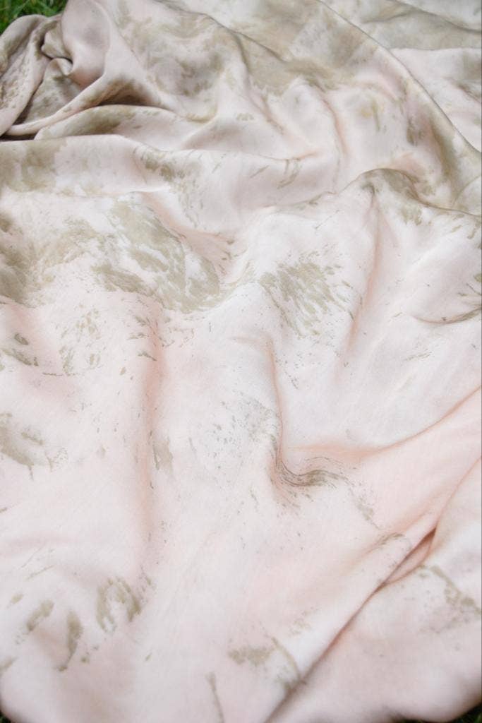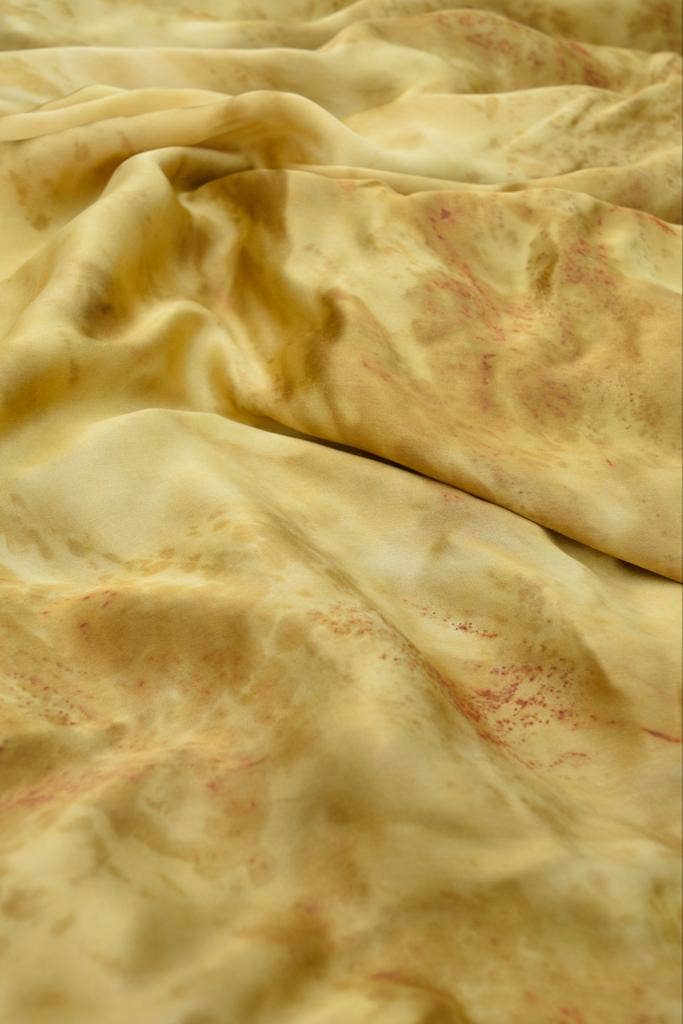 Sissell Gustavsen is a designer and Central Saint Martins graduate who explores the concept of wearable art through her collections. By using wellness practices through textiles, she unifies the relation between wearer and garment. Sissell Gustavsen is a sustainable brand focusing on handmade organic luxury silk scarves. Sissell Gustavsen values high quality and sustainable production without compromising on look. Creating sustainable and aesthetic pieces in an ethical way, Sissell Gustavsen is using biodegradable fabric and natural dyes. Focusing on craftsmanship, each scarf is handmade in a delicate process, where no fabric waste, chemicals or toxins are used. Sissell Gustavsen graduated from the prestigious design school Central Saint Martins in London. During her final year project, she discovered a new technique of eco-printing, using natural dye and rust. She developed this technique further after graduating, before starting her own brand of handmade organic silk scarves. All scarves are handmade from 100% organic peace silk satin. Peace silk is a sustainable and non-violent type of silk, that has been hand-spun in India after the silk moths have naturally left their cocoons. No types of pesticides are used in the silk production.