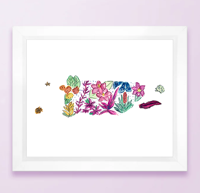 Allison's Illustrations all start with the watercolor art of Allison Gonzalez painted in her sunny Florida studio. I am passionate about sprinkling art into the everyday, by putting a hand-painted watercolor pattern on every surface possible. This includes art prints, stickers, mugs, fabric, phone cases, and everything in between. A lifelong plant lady, one of my favorite painting series is my collection of floral states from 2016. I painted each of the 50 states (and Puerto Rico!) with the flowers and plants that are native to that state. Each state is available as prints and stickers. One plant collection spiraled into another and another and soon there were plants in almost all of my pieces.