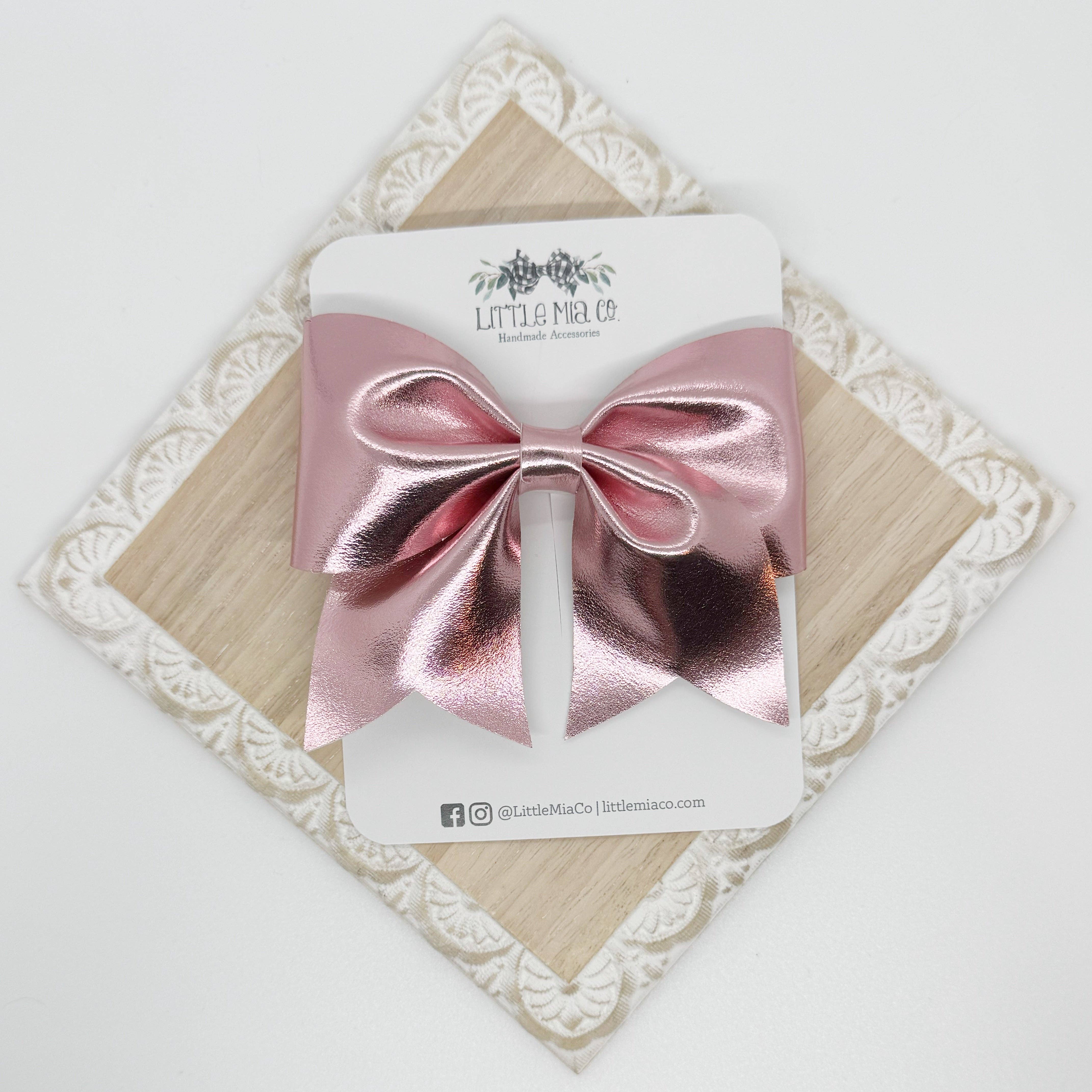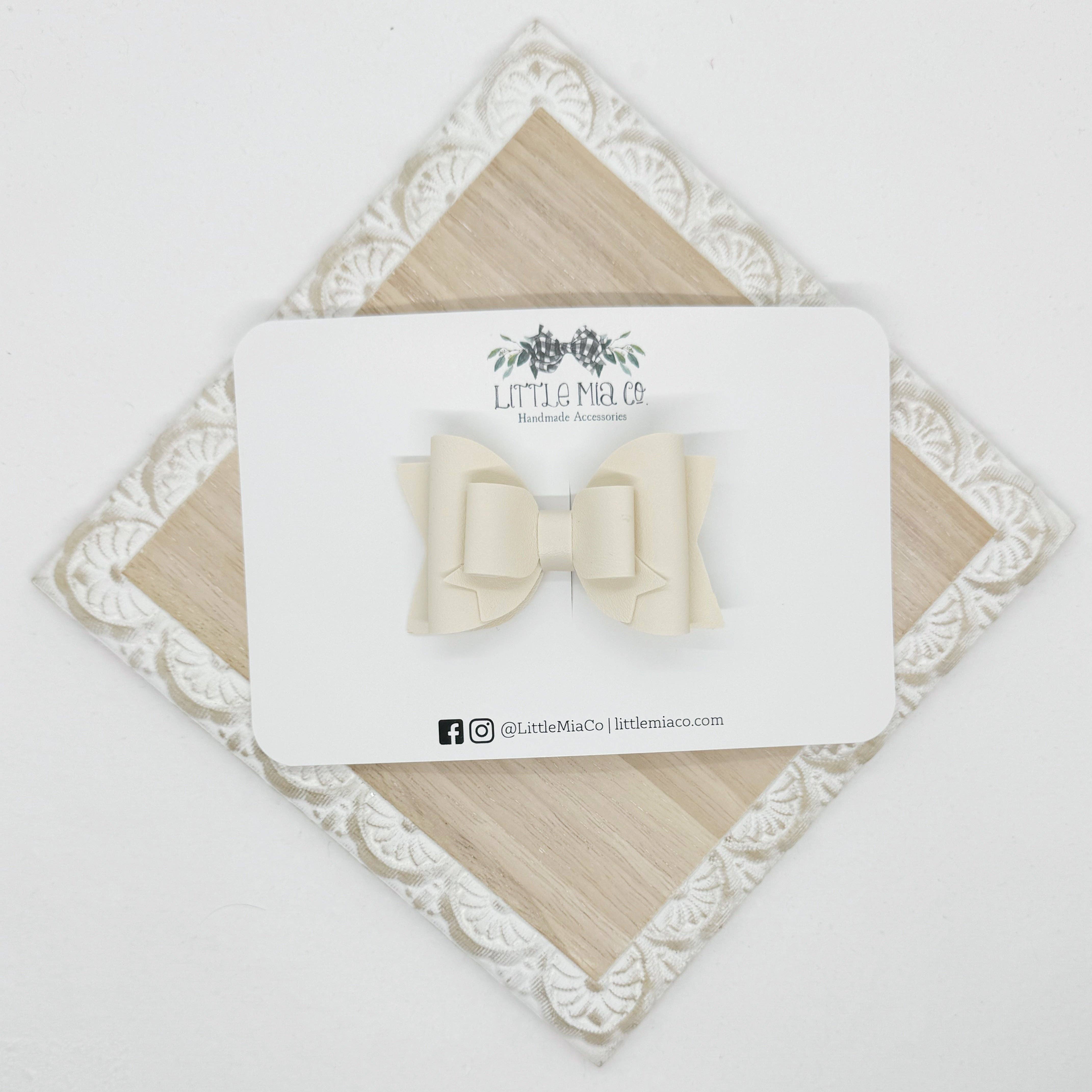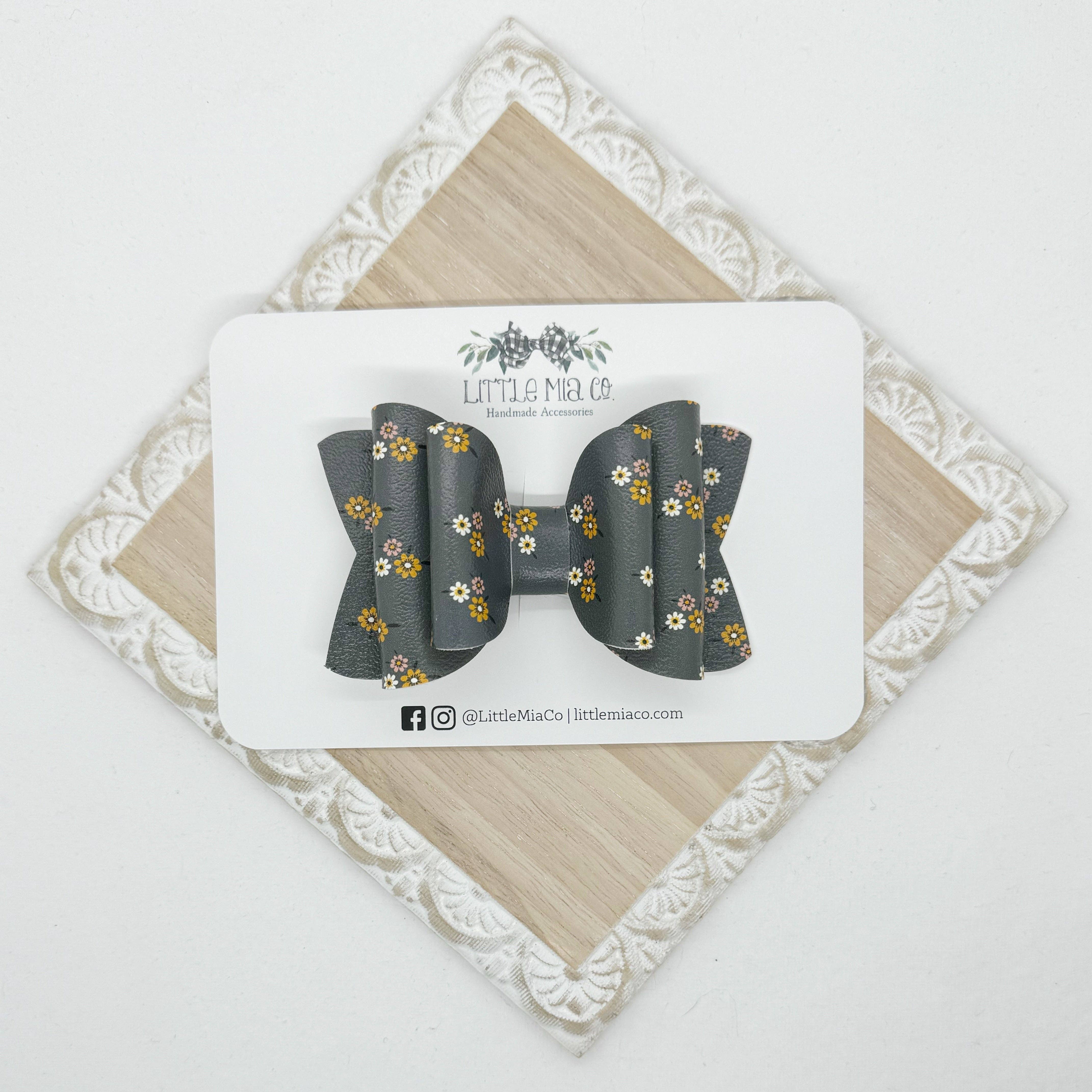 We are a mama run small shop that creates bows and accessories for newborns to adults. All of our bows and accessories are handmade with faux leathers. We offer a variety of sizes, styles, colors and textures.After having two boys we were blessed with a girl and I knew accessories were going to be her thing and Little Mia Co. became a reality.