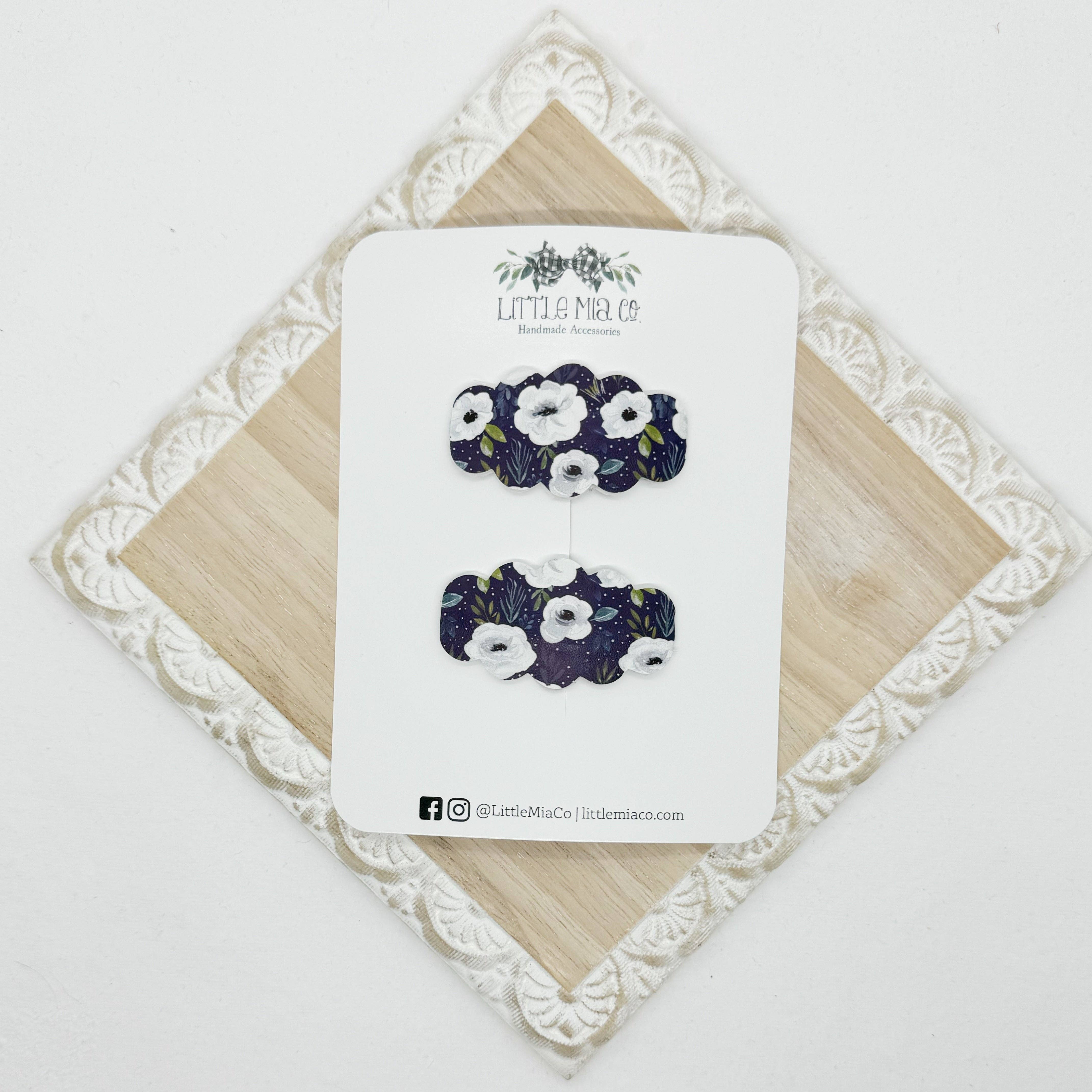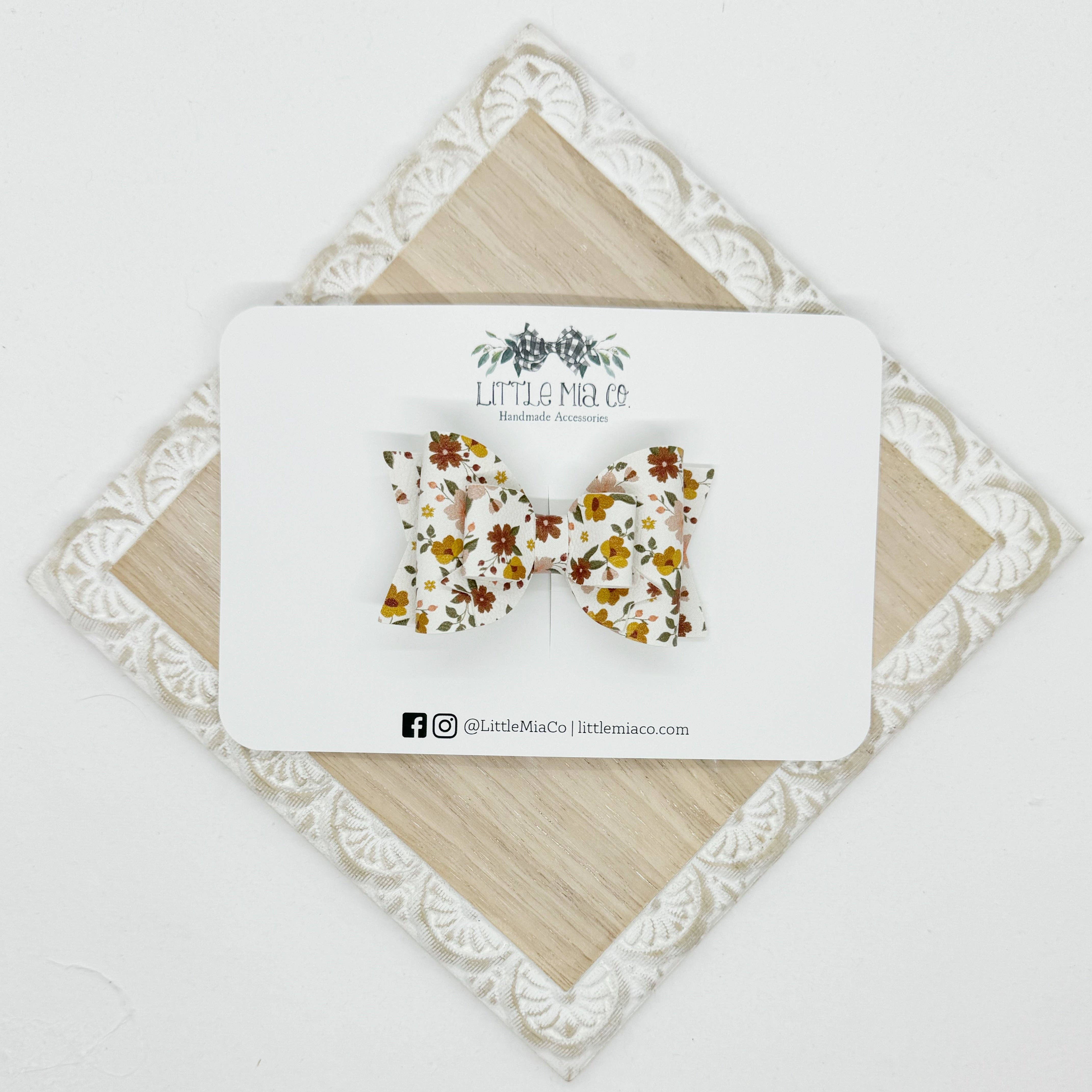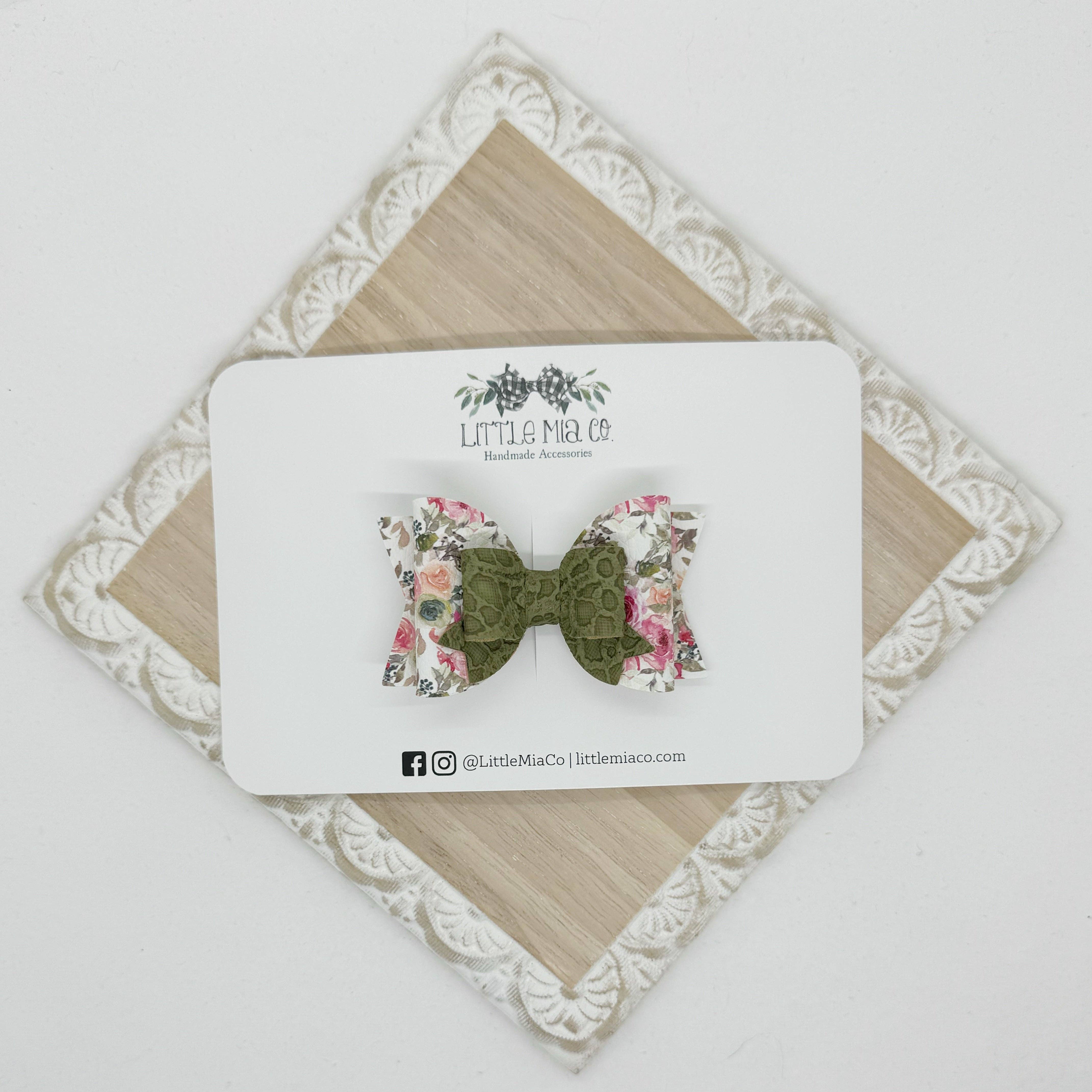 We are a mama run small shop that creates bows and accessories for newborns to adults. All of our bows and accessories are handmade with faux leathers. We offer a variety of sizes, styles, colors and textures.After having two boys we were blessed with a girl and I knew accessories were going to be her thing and Little Mia Co. became a reality.