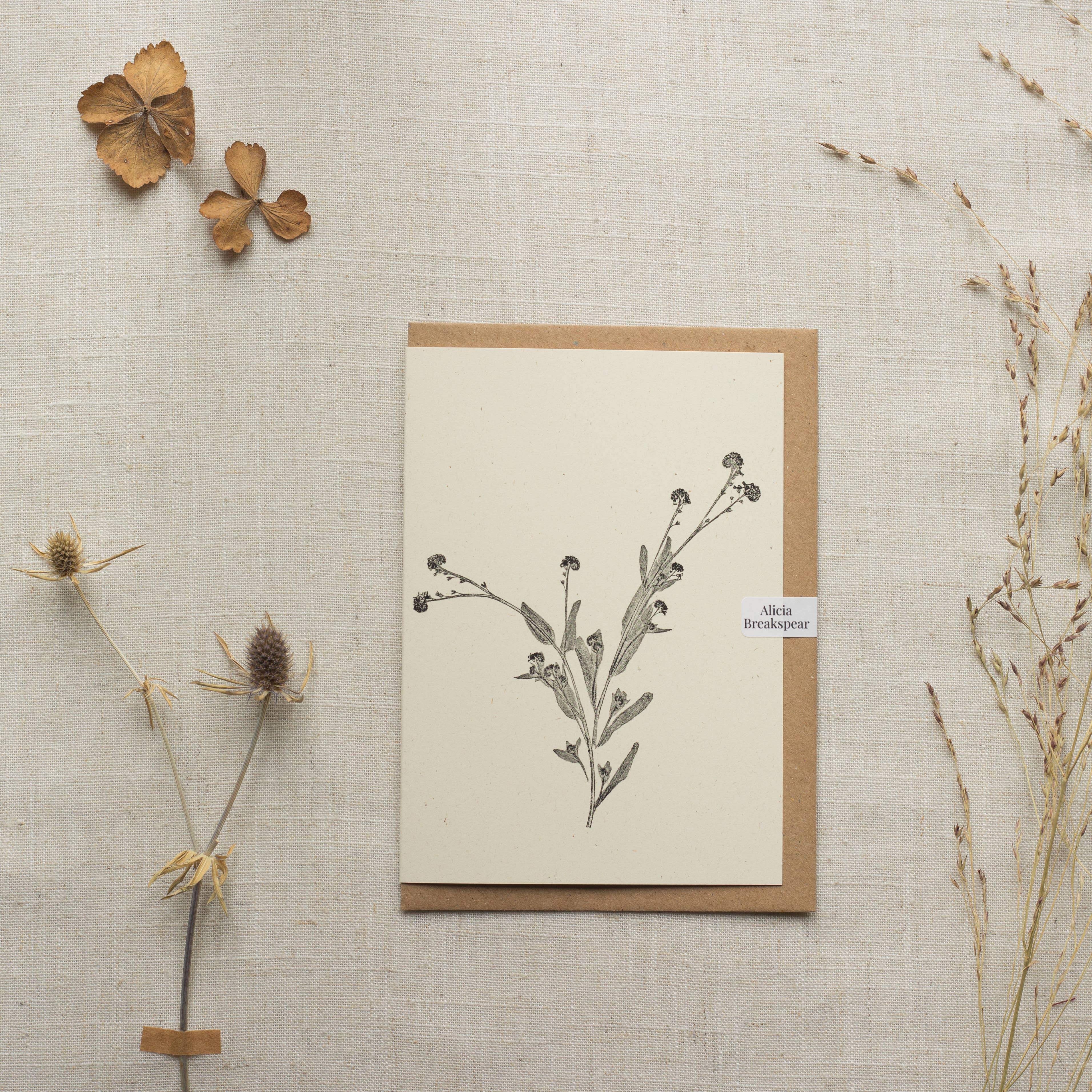 Alicia is an artist with a love for botanicals, she documents the plant life around her through the process of botanical mono printing. This is where Alicia works with plants found on her walks to create one of a kind original prints and thus greeting cards. The simplistic style lends it self to many interiors, with a particular focus on the slow living and garden enthusiasts. Her printmaking practice focuses on her and her audiences need to be grounded and present, to tune in to the changing of the seasons and the plant life that follows. Through a series of botanical greeting cards Alicia hopes to share her love for the plant kingdom with others.