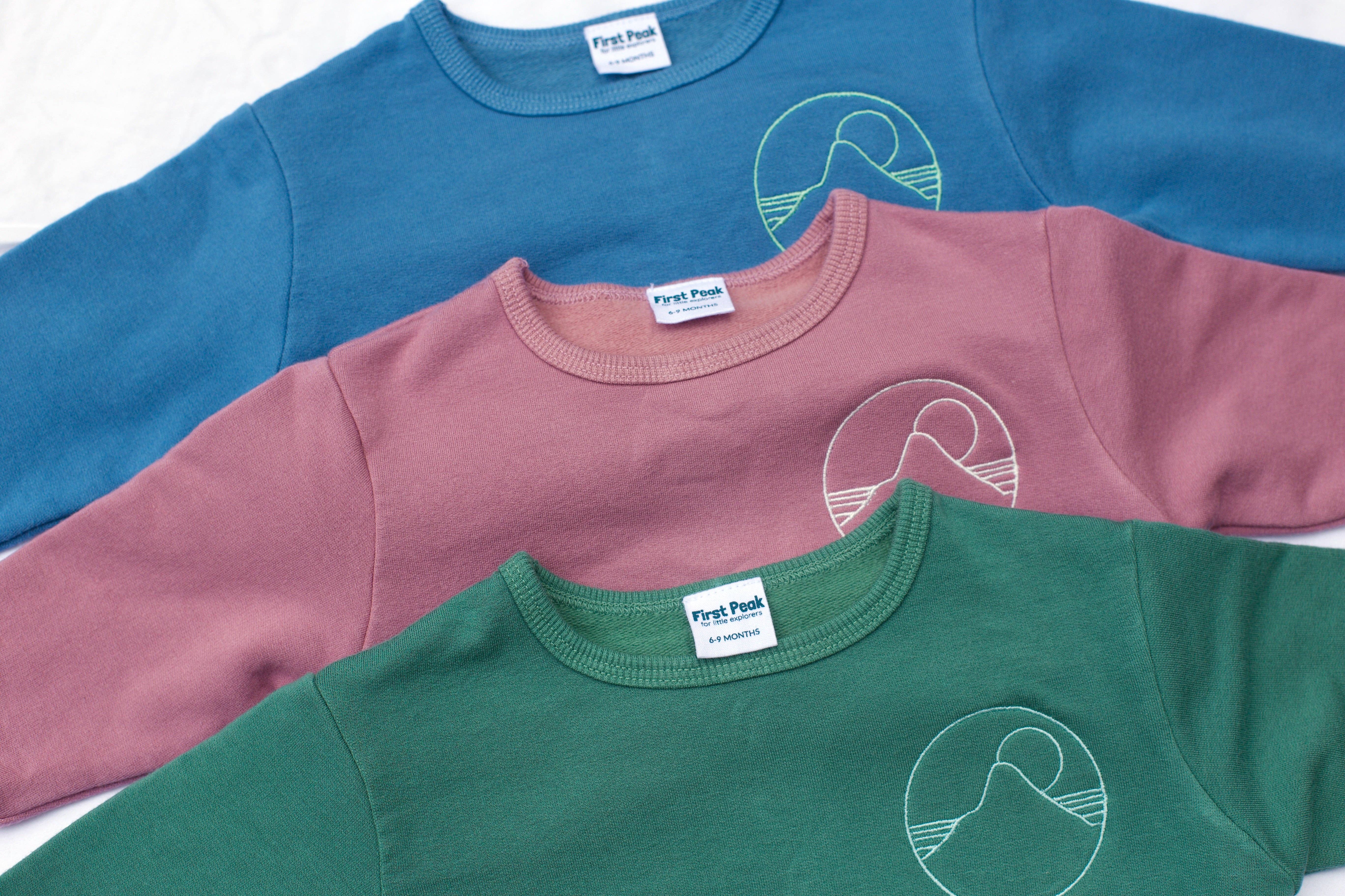 First Peak makes sustainable adventurewear for babies and toddlers. Our clothes are designed and manufactured in California using eco-friendly, odor-resistant fabrics that safely fight off bacteria, mess, and moisture. First Peak was founded from a place of need: shortly after the birth of her son, founder Jocelyn Newman craved better clothes for family time in the outdoors. She was tired of soggy, smelly, stretched out onesies that had to be thrown out after just a few wears. She wanted a solution that was more comfortable and less wasteful, and that could help her feel more confident exploring with her little one. From bodysuits, to flannels, to sweatshirts, all our products are built for little explorers on big adventures. We’re on a mission to help families get outside together.