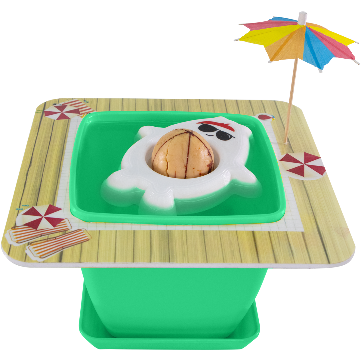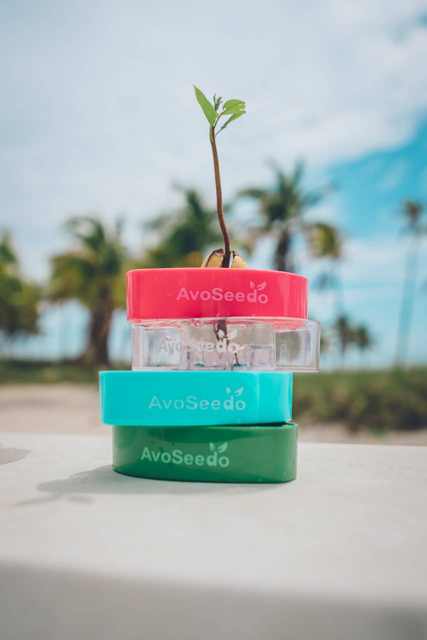 AvoSeedo is a tool that helps you to grow your own avocado tree. My girlfriend eats a lot of avocados, and I always tried to germinate them with the toothpick method without any success. I always forgot to watch the water level, and the pit dried out. That is why I came up with the idea of a little boat holding the pit in place.