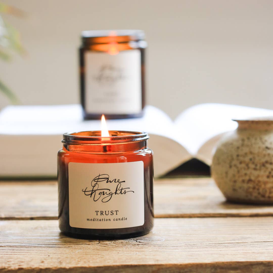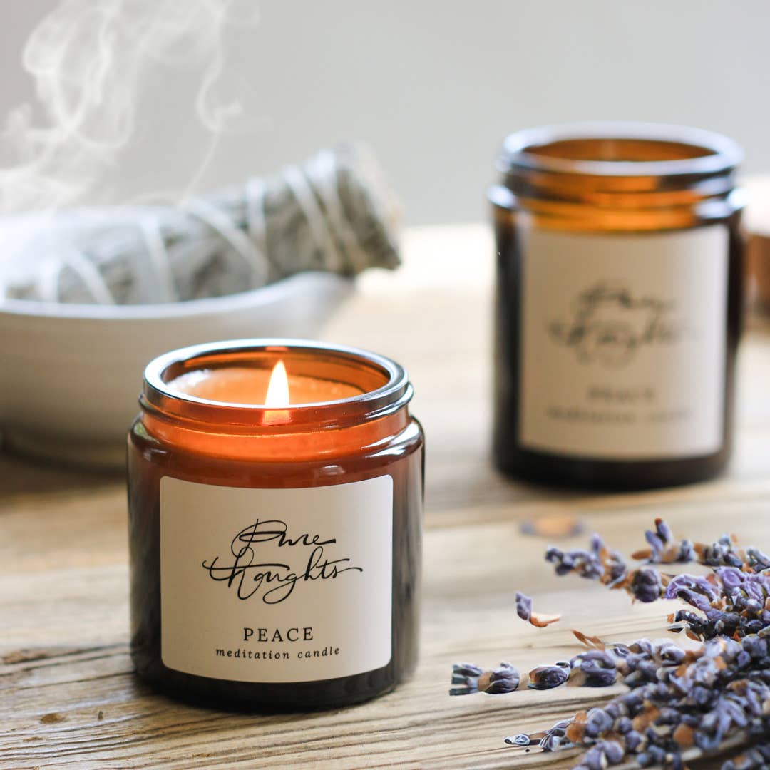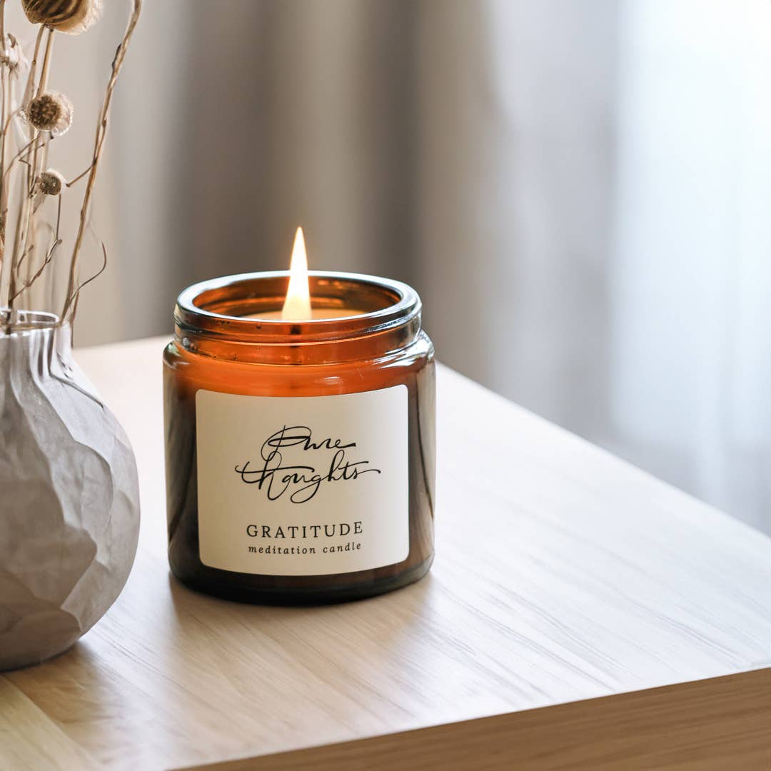 Pure Thoughts products are mindfully created to encourage you to find pause in your day; a moment to breathe deeply, give thanks and reconnect. Our all-natural collection of soy wax meditation candles and skincare embraces the power of aromatherapy to support you on your wellbeing journey.