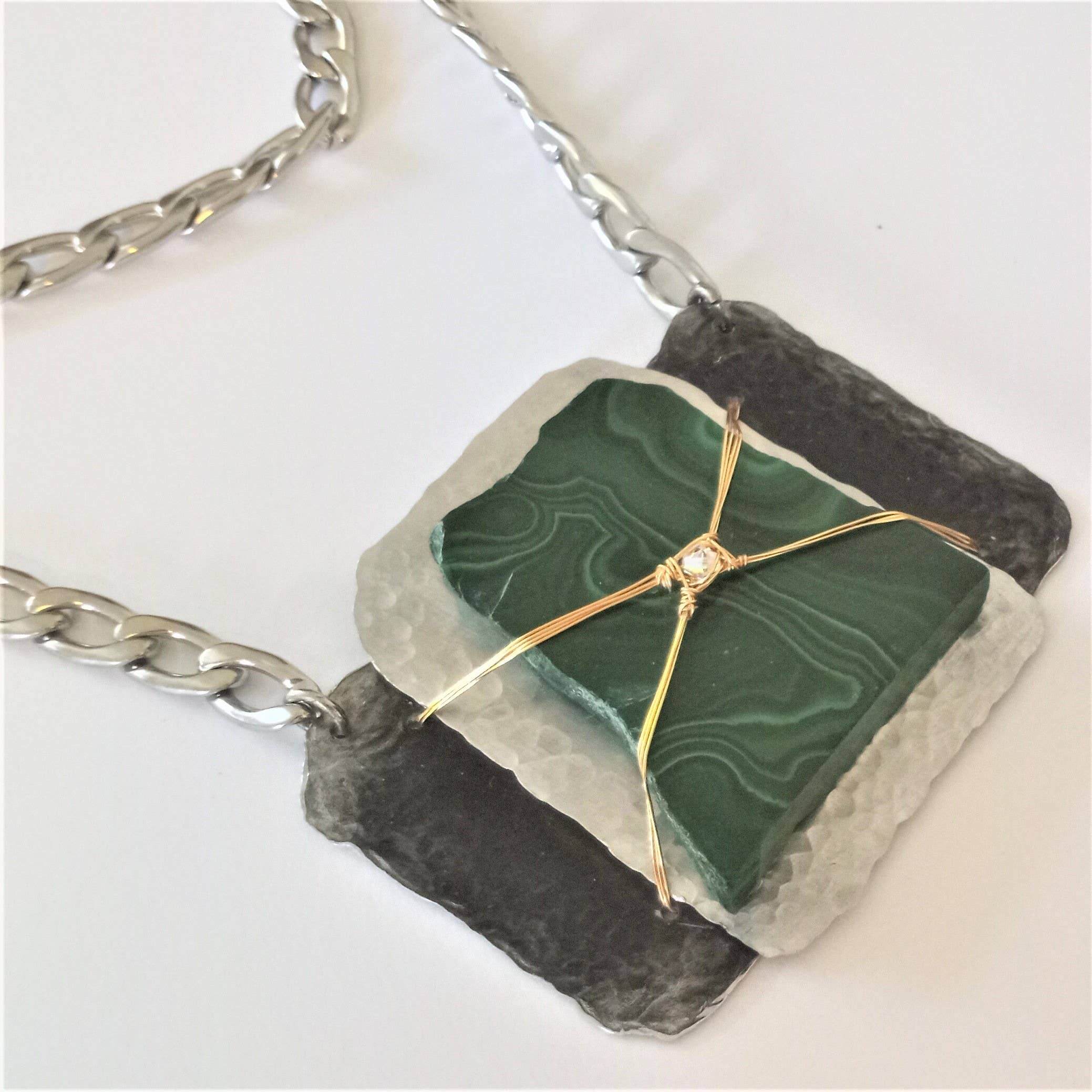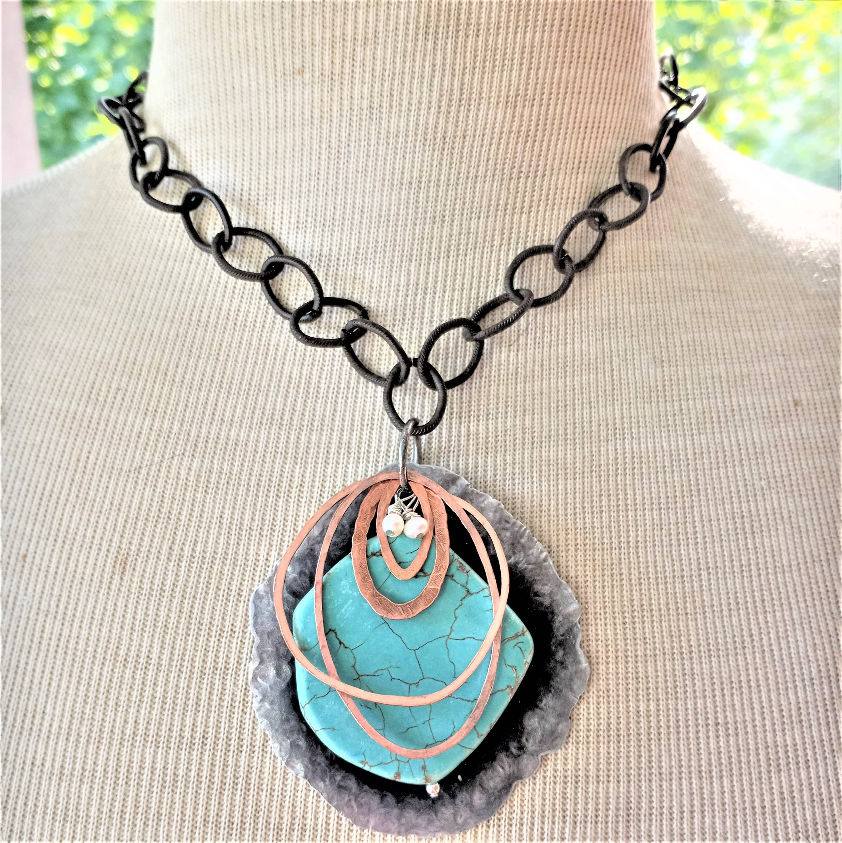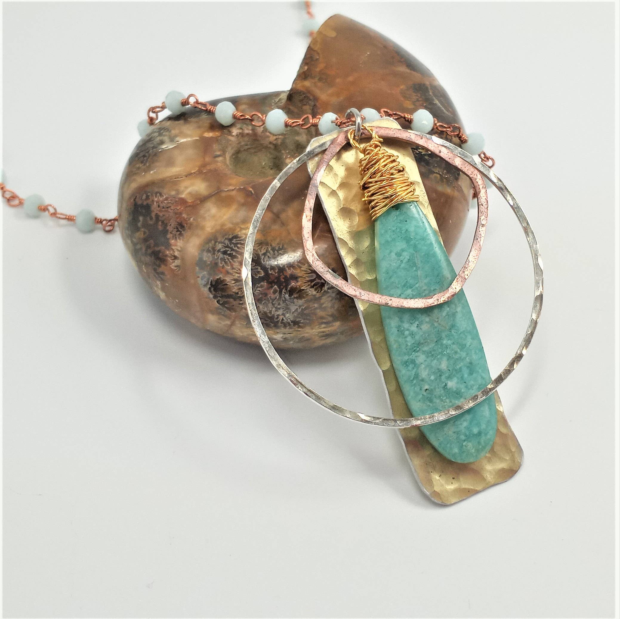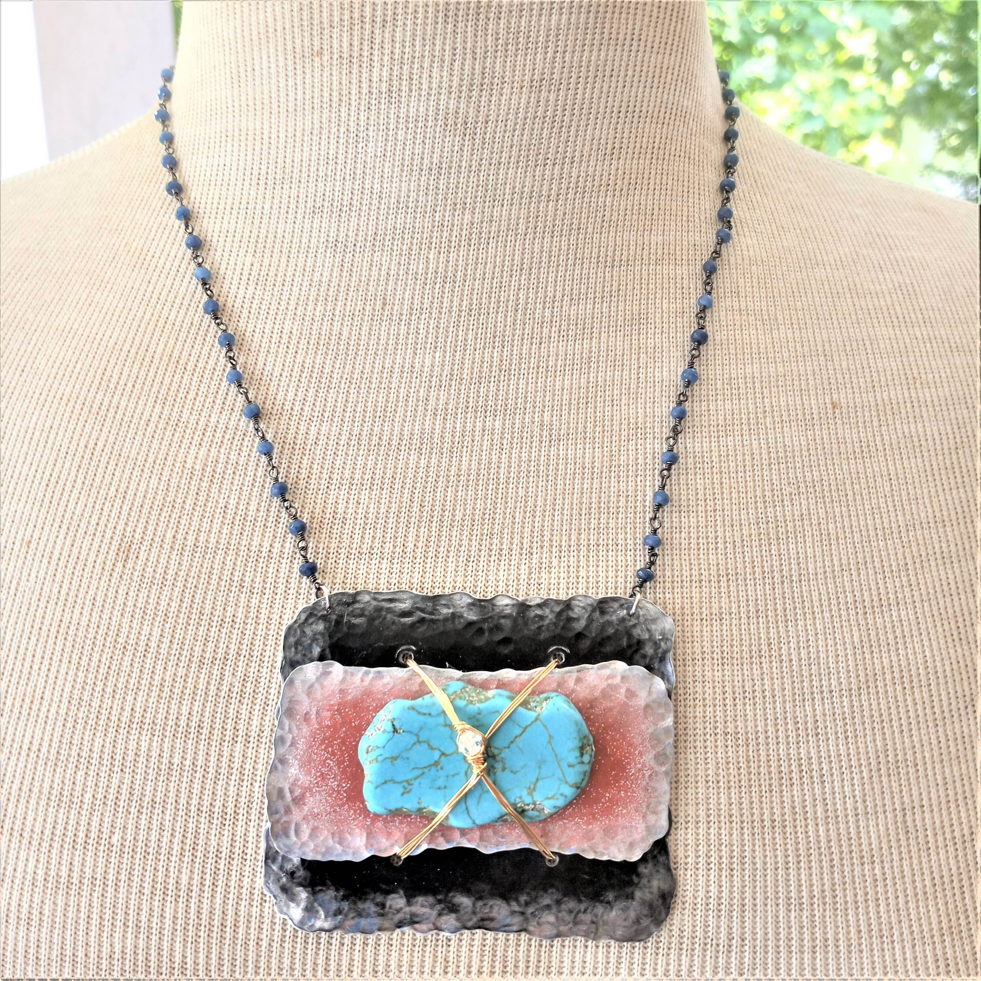 Handcrafted, Bold and Distinct, Art You Wear. My jewelry is about evolution-- evolution as a woman, as a wife, as a mother, and as an artisan. That evolution has inspired me in many ways along with the natural beauty of the areas in which I have lived, from Dallas, TX to Chicago, IL to Philadelphia, PA to Oahu, HI but now resides in the gorgeous mountains of East TN. My work is a blend of natural, semi-precious stones and subtly detailed, rich metals. I cut, shape, sand, solder, hammer and cold forge gold, silver, brass, copper, and aluminum. My jewelry achieves a union between inspiration and functionality.