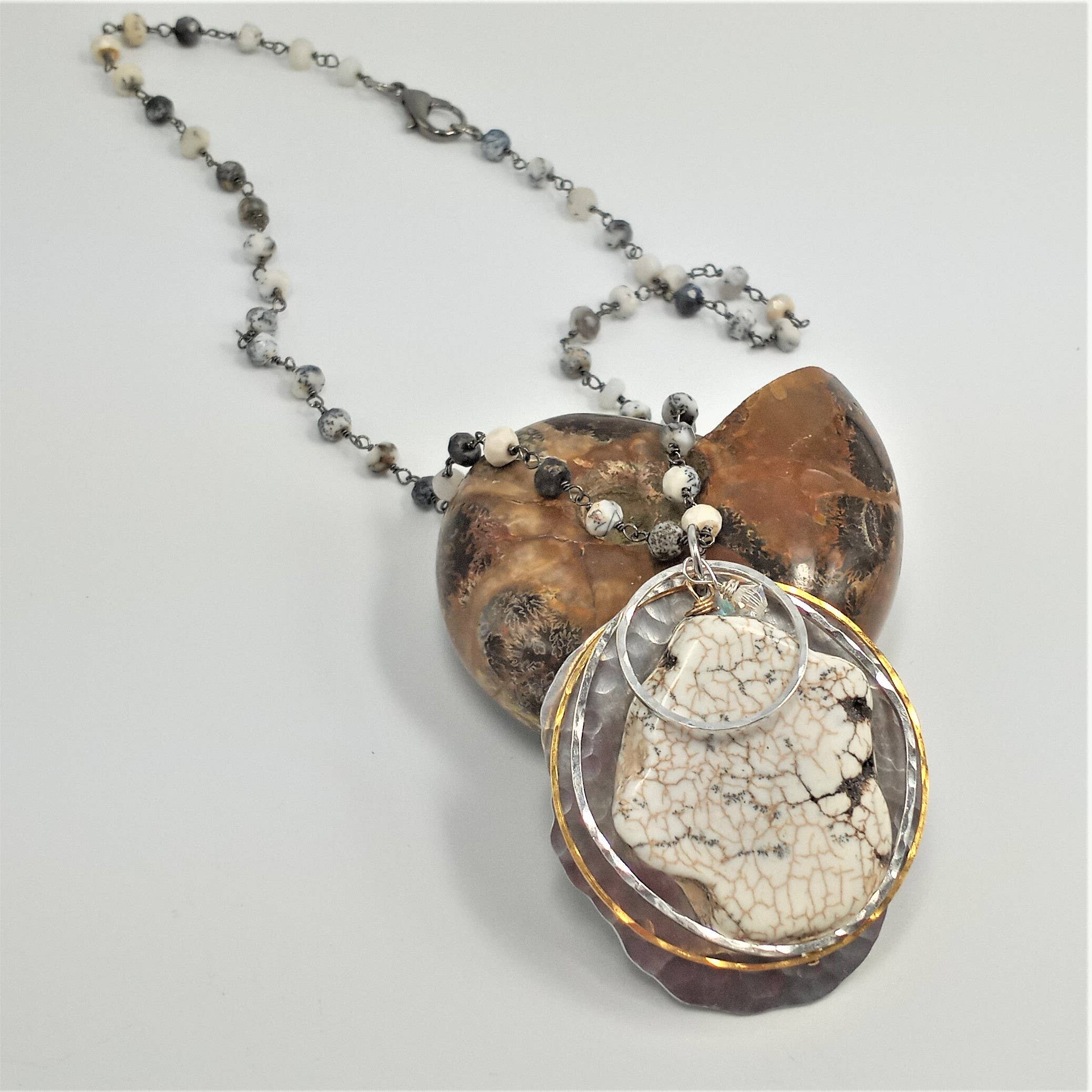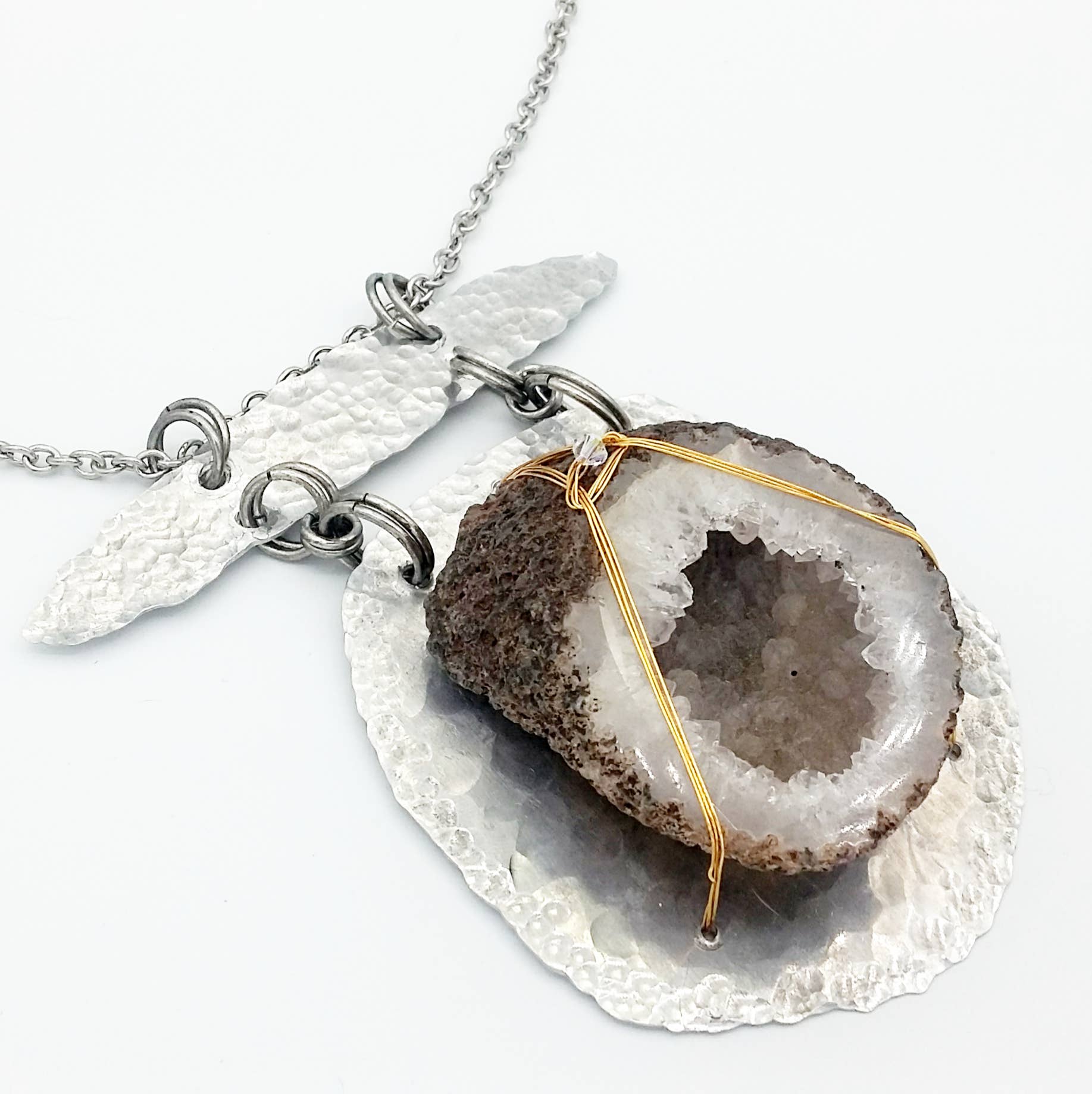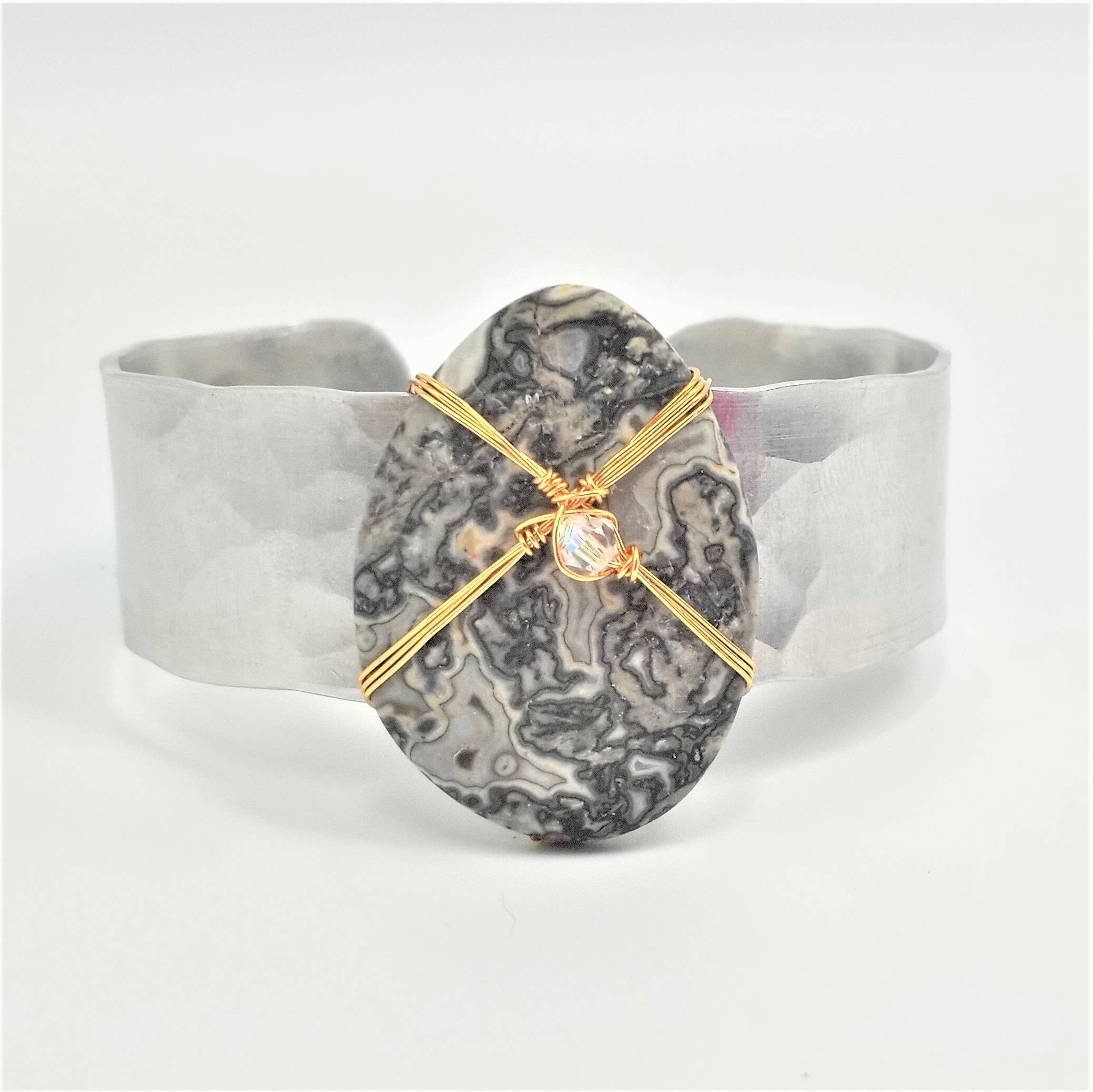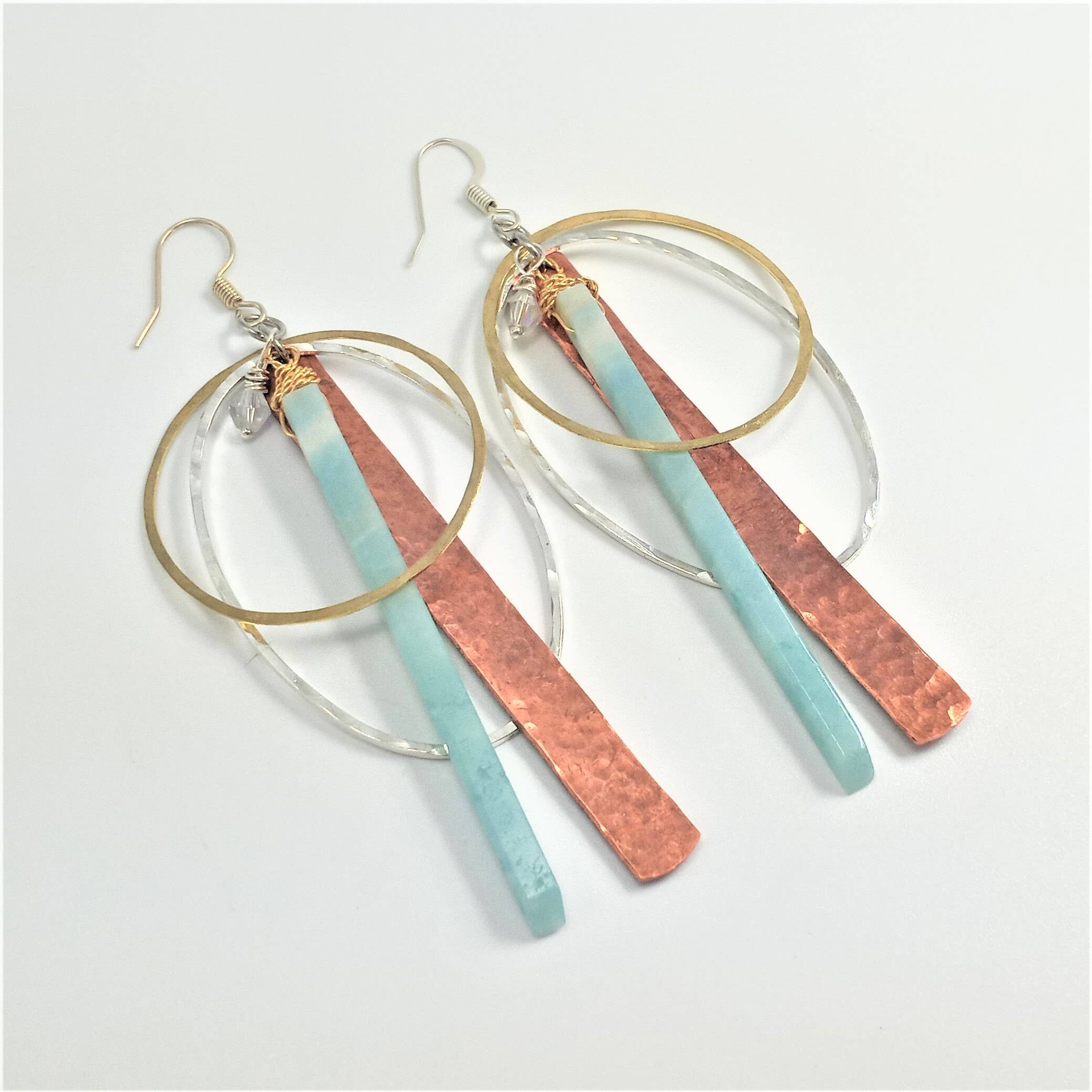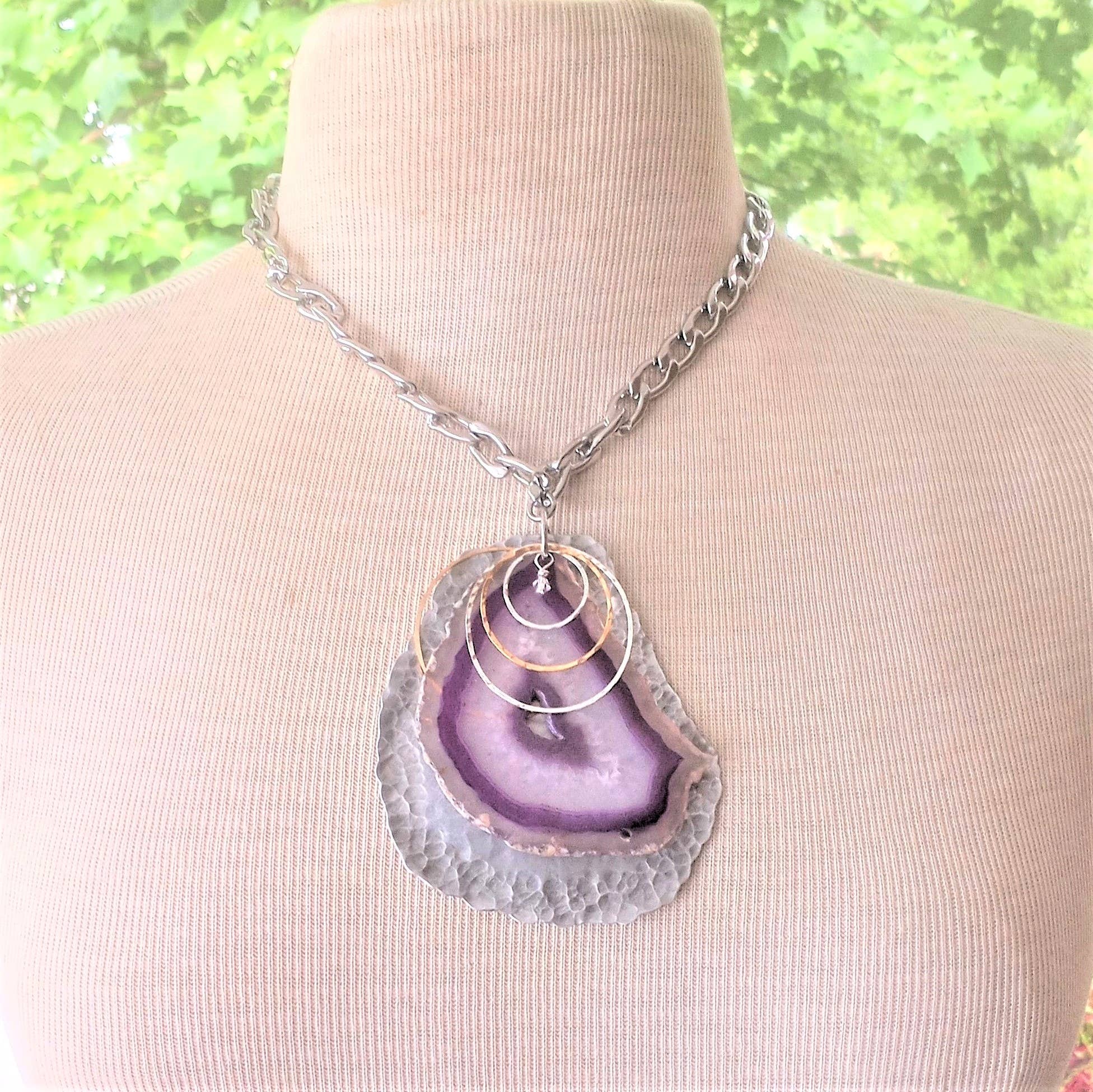 Handcrafted, Bold and Distinct, Art You Wear. My jewelry is about evolution-- evolution as a woman, as a wife, as a mother, and as an artisan. That evolution has inspired me in many ways along with the natural beauty of the areas in which I have lived, from Dallas, TX to Chicago, IL to Philadelphia, PA to Oahu, HI but now resides in the gorgeous mountains of East TN. My work is a blend of natural, semi-precious stones and subtly detailed, rich metals. I cut, shape, sand, solder, hammer and cold forge gold, silver, brass, copper, and aluminum. My jewelry achieves a union between inspiration and functionality.