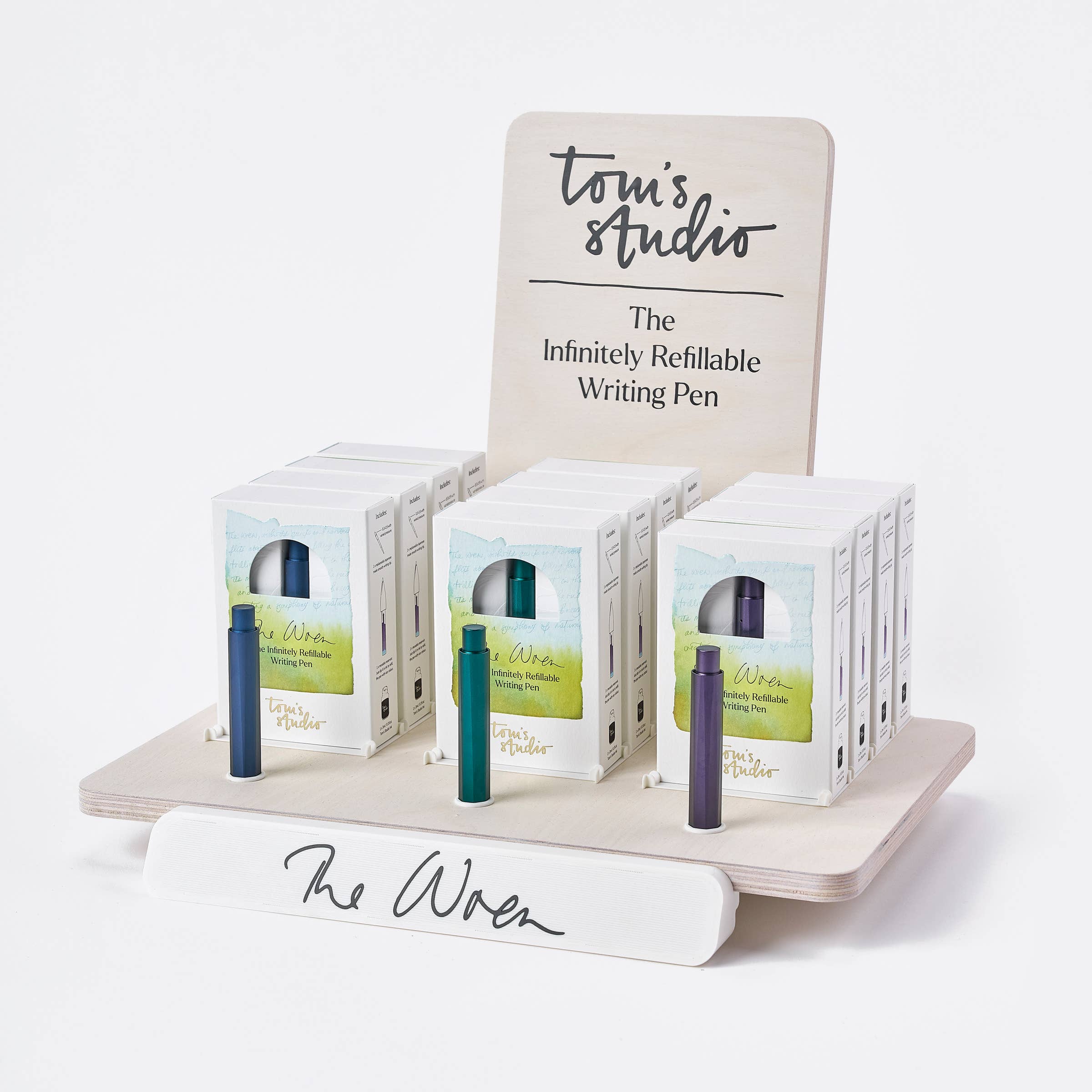 We believe everyone deserves the best possible tools. Tools that work. Tools that last. Tools that inspire. Our mission is to be the leading choice for the highest quality, responsible, and innovative stationery. We aim to bring joy through craft and community, inspiring everyone to realize their creative potential. Every pen is hand-built by our team in our Somerset studio, where the designs are brought to life with the utmost attention to detail. This hands-on approach not only enables us to create unique, high-quality pens but also ensures that we can maintain and support our products long after purchase. Tom’s Studio began with a simple observation: Tom noticed his wife, Gemma, using a plastic calligraphy pen that didn’t match the beauty of her work. Tom crafted his first pen from Corian and brass on his father-in-law’s vintage lathe, and the journey began. He reinvested every profit into improving his products, all while nurturing a community of artists and creators who supported his journey and kept sustainability at the front of his mind at every decision. Each pen is designed by Tom himself, and we work with a select group of manufacturers from around the world, some with over a century of experience in their craft, to source the finest components, including nibs, inks, and tips.