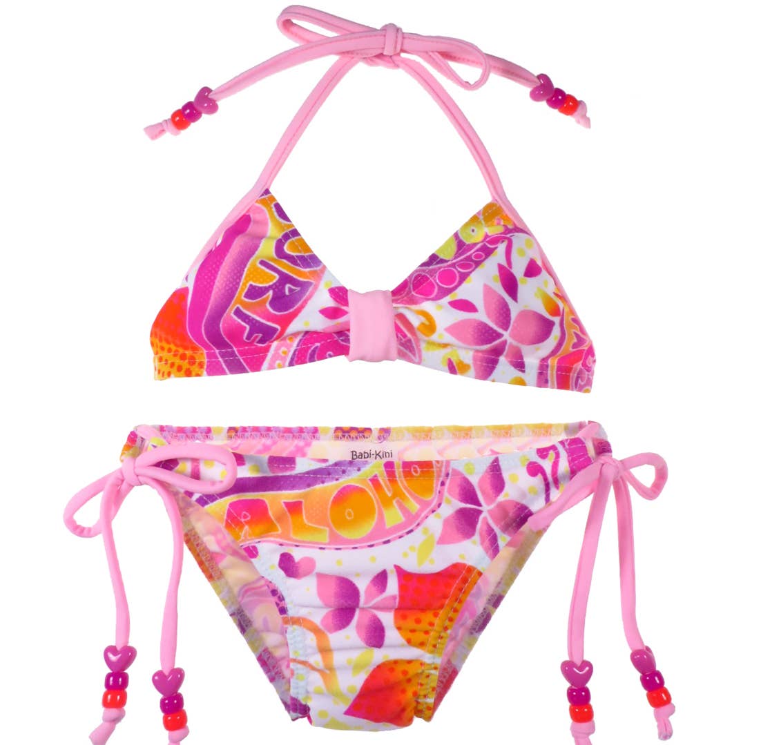 “The first bikini experience” is where it all began. Let’s have a little fun, celebrate a milestone, take some pictures and have something to chuckle about down the road! It all started when we made a fun little gift for a friend who had just had a baby girl. Soon others saw it, really got a kick out of it and wanted one too. We thought, “what the heck, we’re having fun, let’s make some more!” And then it took off. Somewhere along the way we became known as THE place to go when you want to shop an extensive collection of bikinis for the little ones! We aim to have something for everyone by covering a variety of styles. We have soft & feminine, fun & sporty, bold & trendy, and tropical. (Yes, we are pleasers and try to make everyone happy.) We start by sourcing our fabrics and trims from around the globe. The materials we select are of the highest quality. Babikinis are a fun little gifty item but they are also some serious swimwear that is built to last! We find ruffles, flowers, beads, appliques and decals to make each design unique. We bring it all home and manufacture right here in southern California. We could go overseas and get cheaper goods and make more money but no way, no how, we choose to keep the jobs right here in the USA. Yeah Baby!