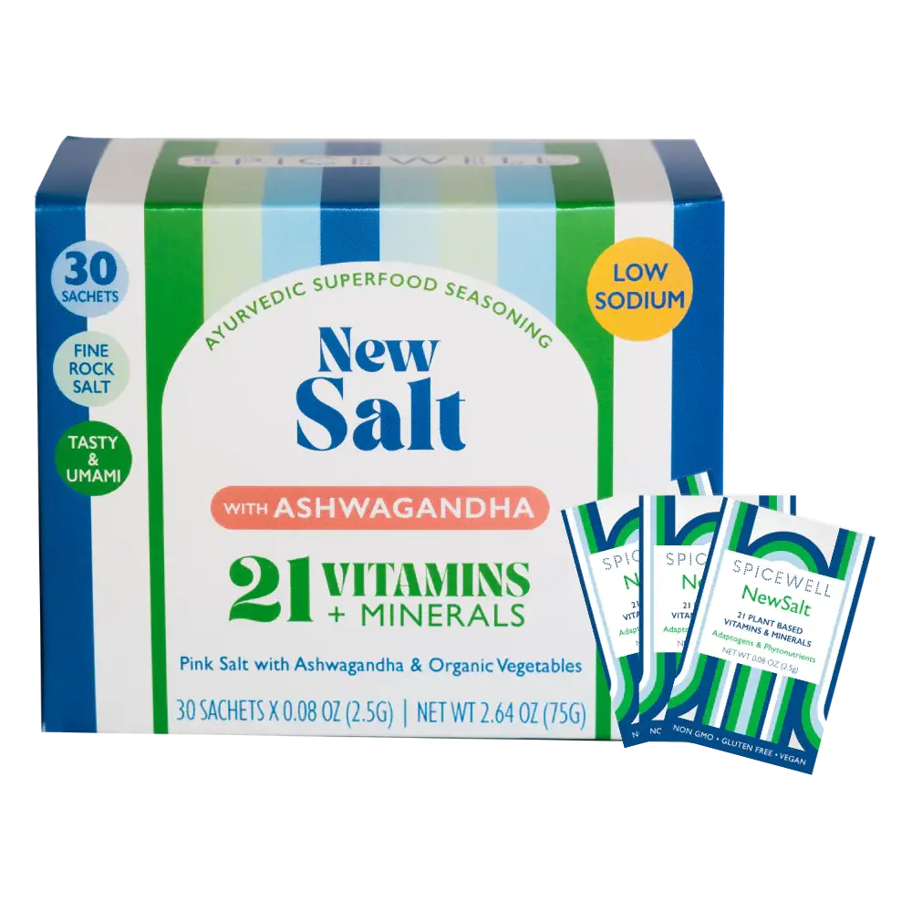 After facing multiple overlapping family health disasters in early 2021, I set out to find a better way to integrate healthy, healing foods into the meals we eat. I grew up with Ayurveda and learned from my mother and grandmother that the first stop when illness strikes isn’t the drugstore, but the spice drawer. When I had my first child in 2013, I went back to deploying the power of the pantry and making plant-based medicine at home. I studied plant medicine and understood how the food we eat has an outsized impact on our ability to fend off chronic disease. In short, we are better off getting our vitamins from vegetables and fruits of many colors than taking them in a pill form. I began doing more research on the fact that our soil has fewer nutrients now than it ever has, and that the food grown in this soil is also less nutritive. I came to understand how our entire food and health system was broken. And no matter how well we eat, we are still not getting enough of what we need. Most Americans are walking around with a nutrient deficiency. And there is a direct link to chronic illness. I set out to solve this problem by starting with the first nutrient-dense and lower in sodium salt and pepper. I’ve added ancient Ayurvedic formulations known to help the body and mind adapt to inflammation and stress, as well as 21 vitamins and minerals to eat with your food, the way they were always meant to be absorbed.
