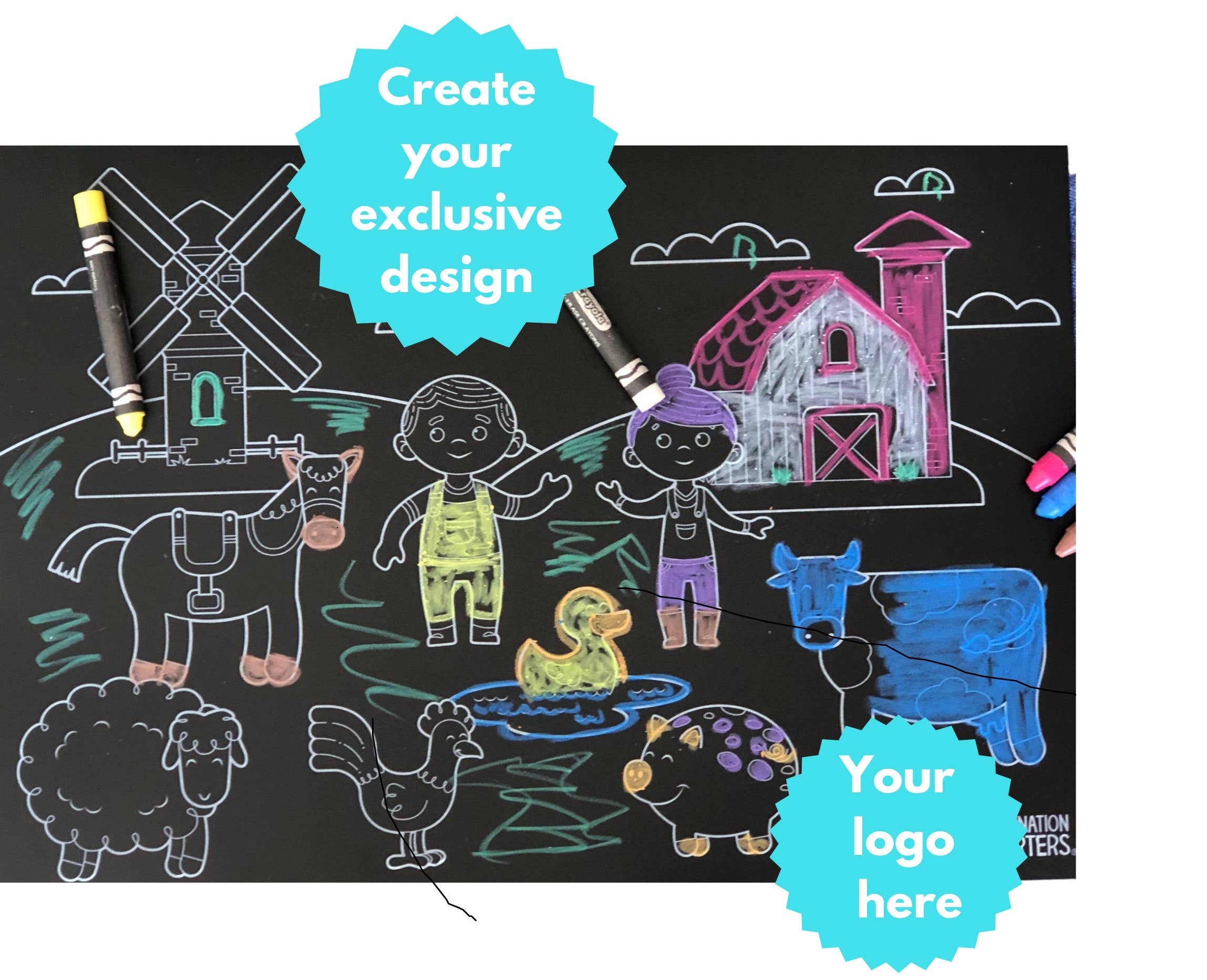 Find Us: Americas Mart Atlanta - New Annabelle Noel Designs showroom -B2 #1229 How it began: Once upon a time there were 2 moms who made chalkboard placemats for kids. They both thought their products weren't quite right. Instead of competing with one another, they collaborated and made the best chalkboard placemat ever. From that moment on, Imagination Starters was born. Our best-selling placemats are sold in over 700 stores nationwide and have been featured in a popular chicken restaurant's kid's meal. When you buy from us, you are buying directly from one of those original inventor moms (plus 4 other moms who help run the show). We have 15 kids among us and somehow still run this company. Thank you for buying from us. It makes a world of difference in our day. Experience the POWER of Coloring! Please note: if you receive a damaged item, please make a claim with Faire. We do not ship out replacements valued at less than $20 wholesale due to shipping costs but will refund your invoice for any damages. Thank you -Anne, Leah, Kelly, Allison, Shannan and Monica