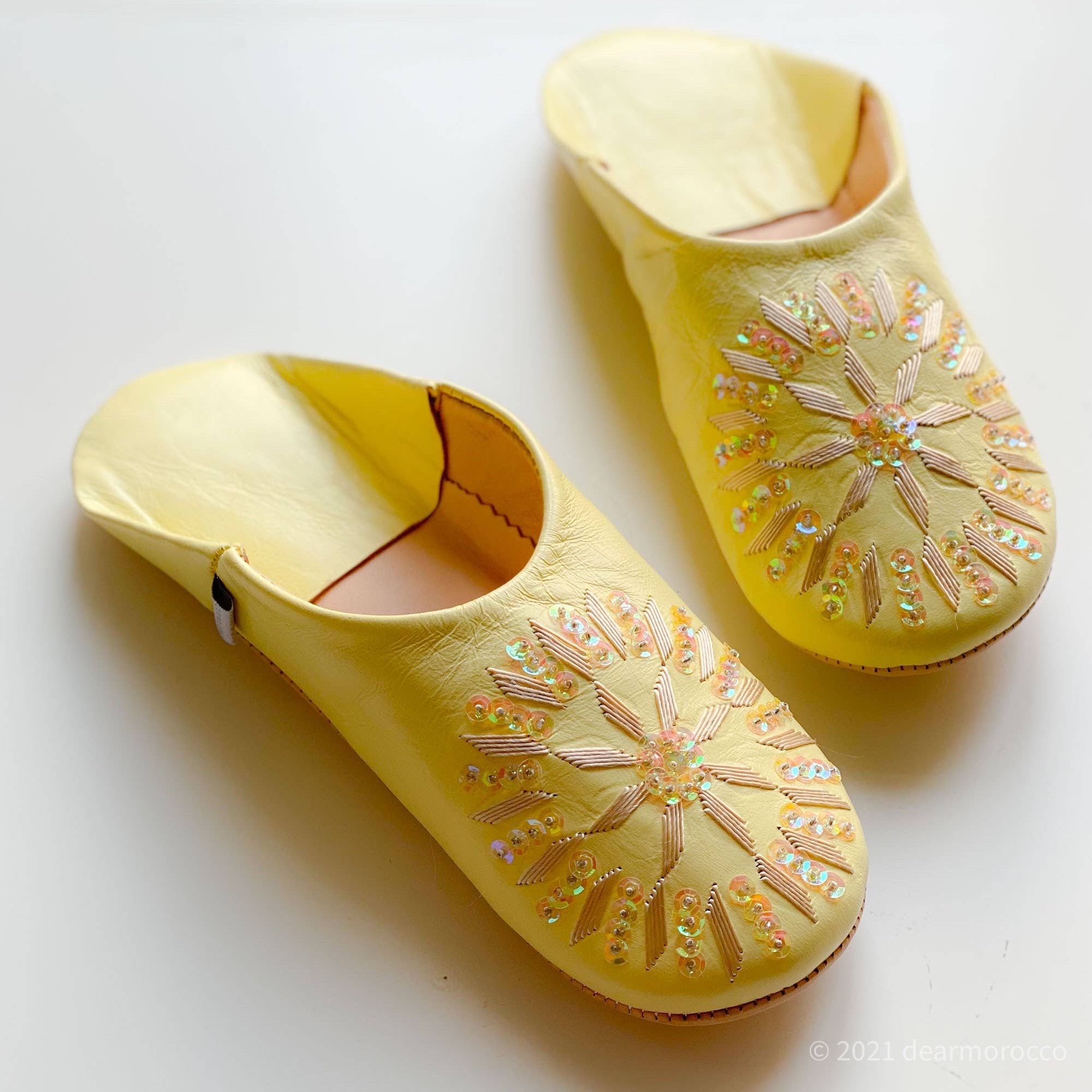 Hello, my name is Kaori Miyamoto. I am Japanese, I started the brand “dear Morocco” in 1999, selling Moroccan handicrafts for more than 20 years. Our Babouches and some other goods are designed by me and made by our craftsmen. The name of “ Morocco” in Arabic means “ the country where the sun sets” and Japan is the country where the sun rises. 2 countries have very different cultures and colors. I mixed them on our products. I hope you will enjoy the wonderful handwork of Moroccan handicrafts men/women and Japanese quality, color, etc.