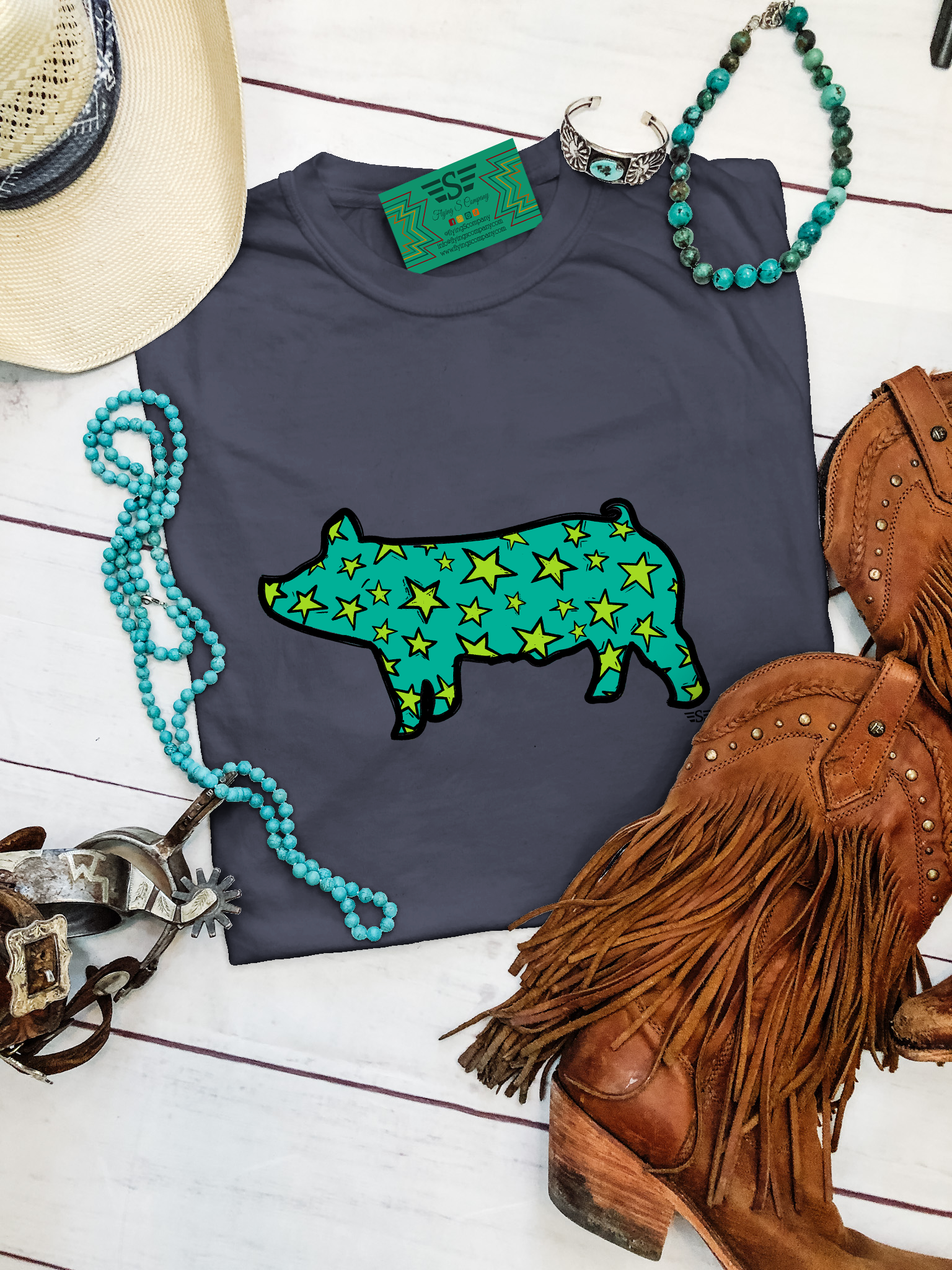 Howdy friends! Flying S offers you a variety of trendsetting designs. We work hard to develop original designs and products that are sure to help set your business apart. Having grown up on a commercial cattle operation in southern Oklahoma, where CEO Shiann and her husband continue to pass down the family tradition of ranching to their two daughters, Flying S designs are authentic to our western roots. At Flying S we pride ourselves on excellent customer service, originality, and quality and we know you won’t be disappointed shopping Flying S!