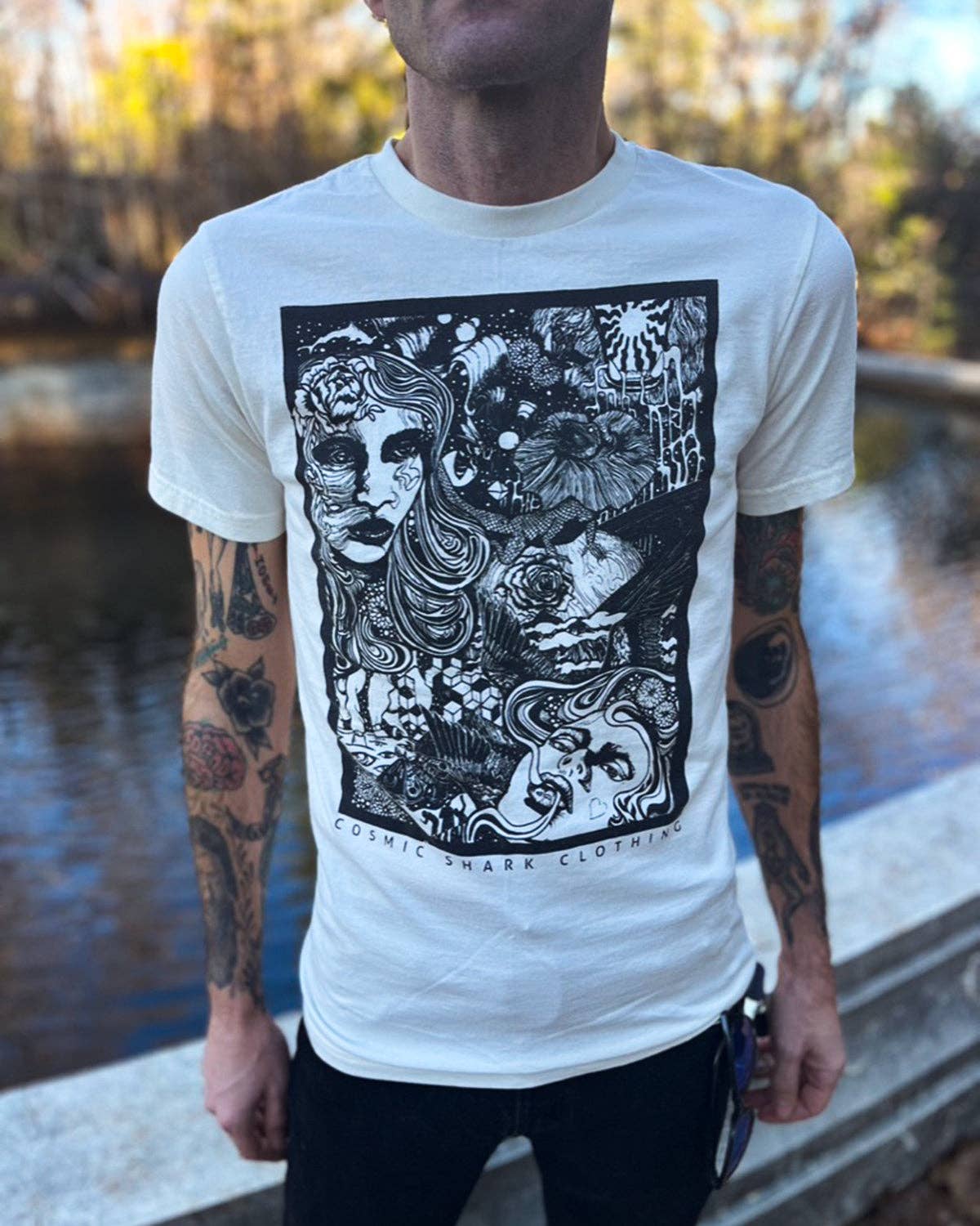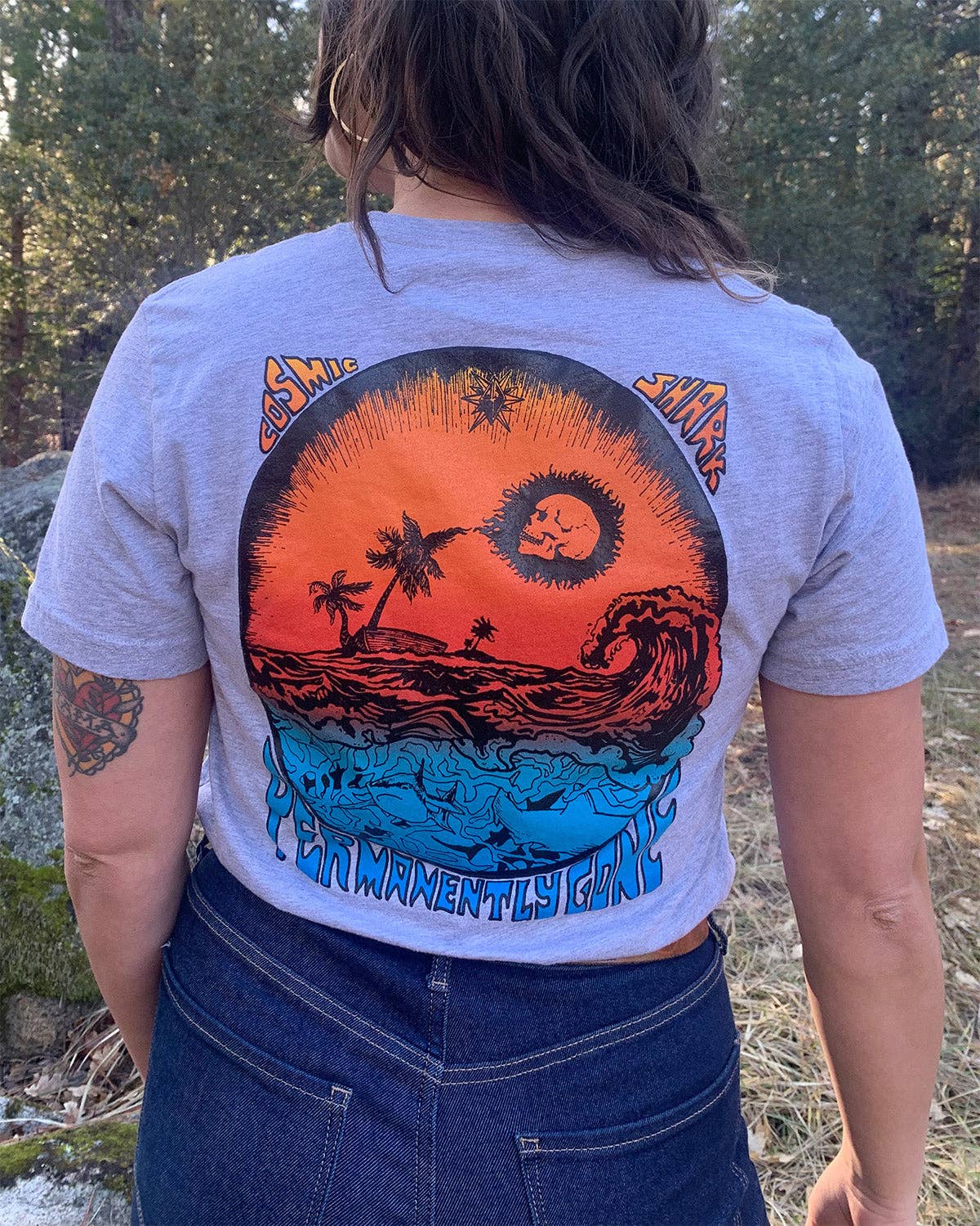 Cosmic Shark Clothing is a women owned and operated screen printing company based in Northern California. We wanted to create our artwork while making it accessible and affordable for others. Our creative outlet began as a line of handprinted apparel, and has expanded to stickers, cards and other fun items we can conjure up. Our designs are created by our own Annie Kendall and are influenced by: witchy, pop, mountain to sea life, psychedelic, punk, rock, tattoo, goth, anything that make our fun loving toes curl culture.