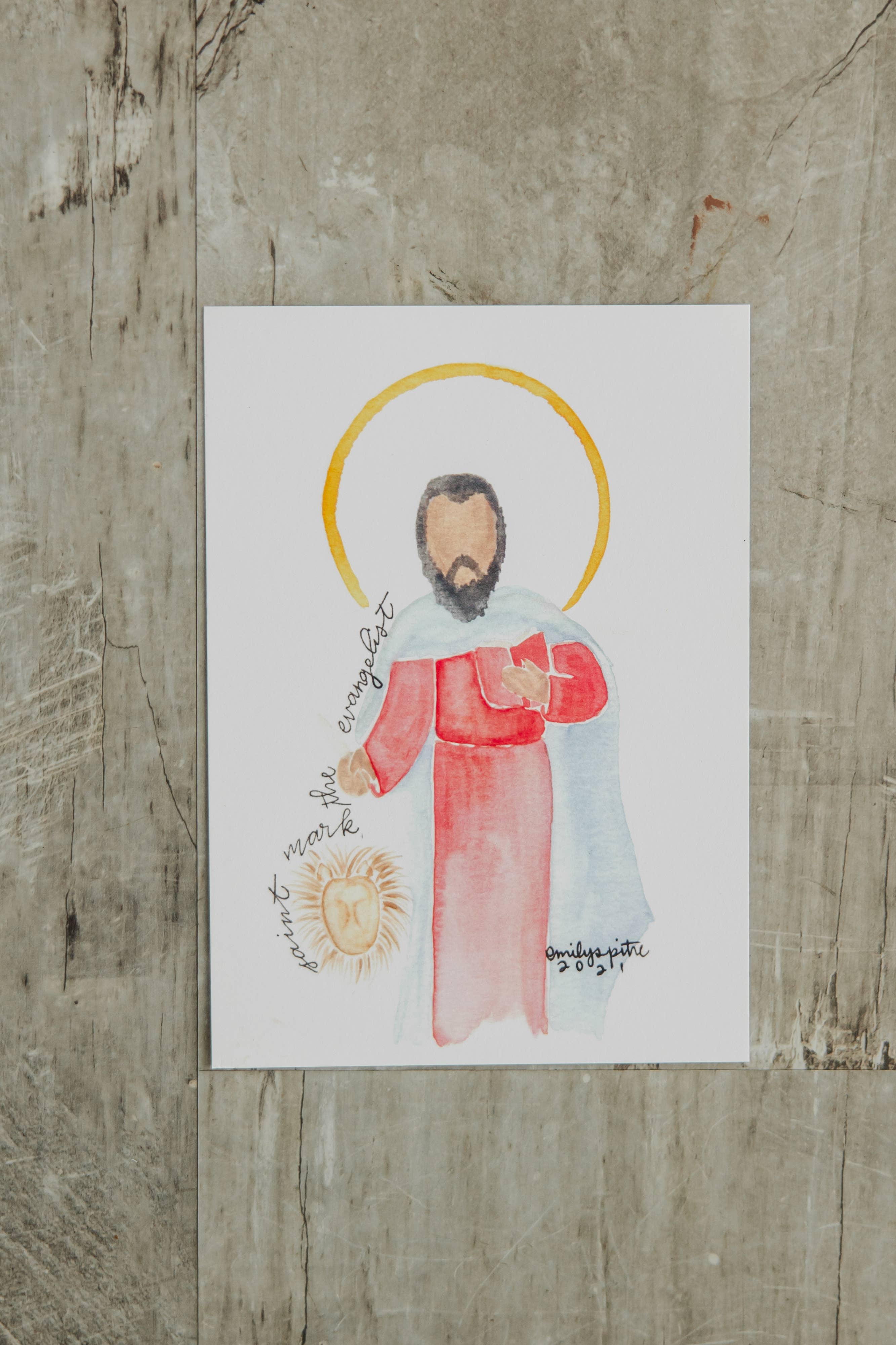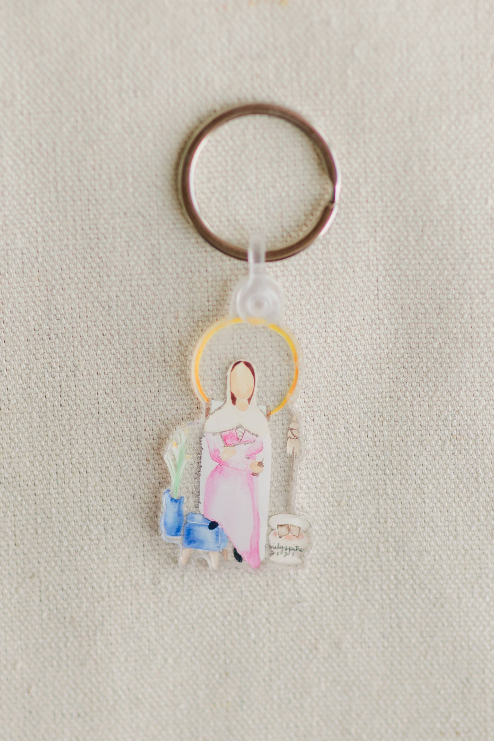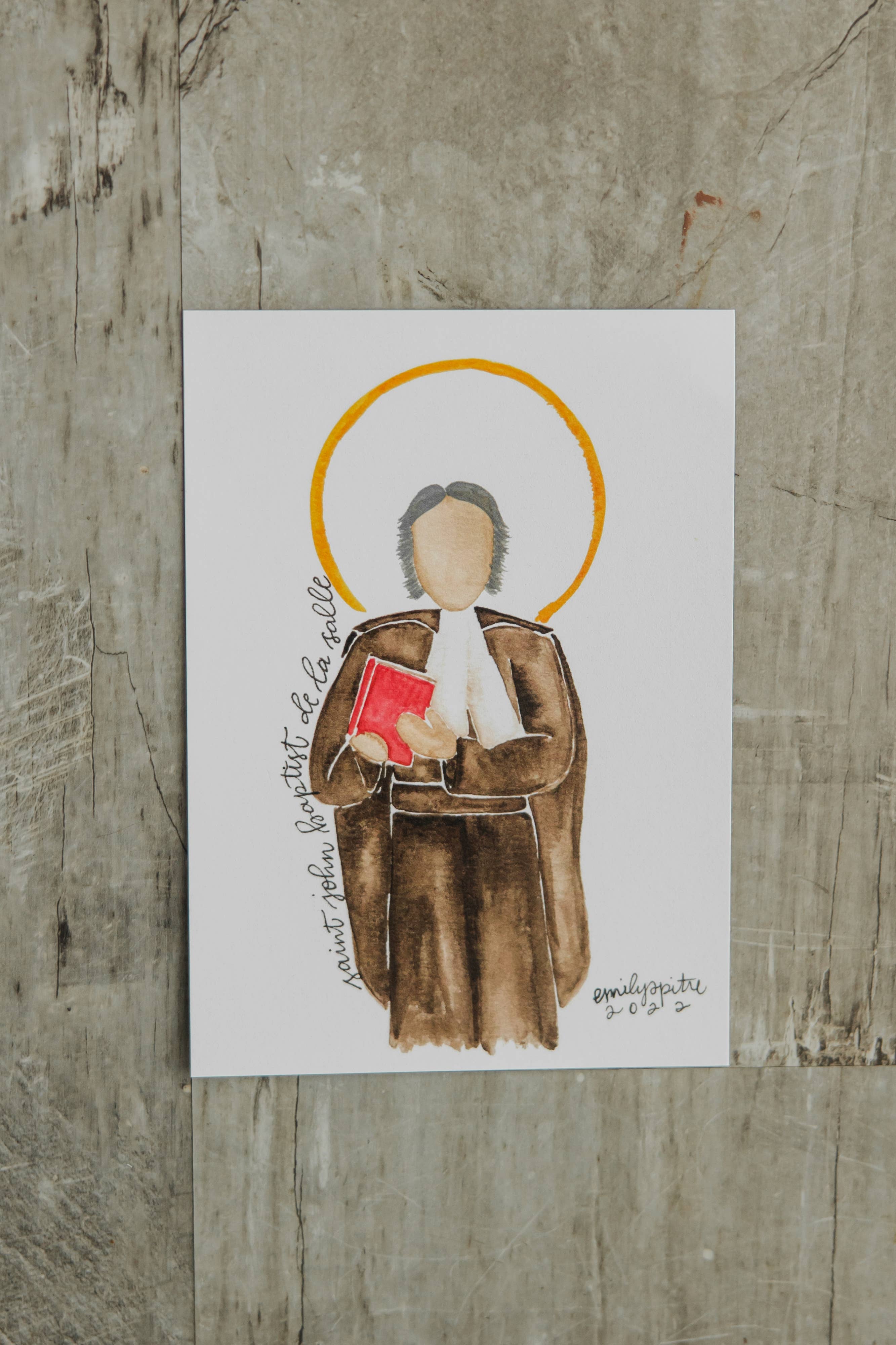 Hi there! I'm the Emily of Emily S Pitre Art! I am so blessed that you're here. At my wedding our celebrant spoke about how at specific moments in our life, the Lord places people in our midst and desires in our hearts. That is the best way I can describe the fruit that has come from sharing my art. As an occupational therapist with a love of the Lord and a slowed work schedule during the early pandemic days, I had some time to pick up a new hobby. After painting St. Catherine of Siena as a way to pray through her intercession on her feast day, it was made clear to me that the Lord is calling me to share my gifts in new ways. Why no faces? Well to be honest, faces are hard! Just kidding, kind of. I chose to paint saints with minimal details so that you can better relate to the saints in your home. I pray that when you look at my art, you can more easily see qualities that parallel to some of the most immediate people in your life and maybe even you. Why is this important? Because we are ALL called to holiness.