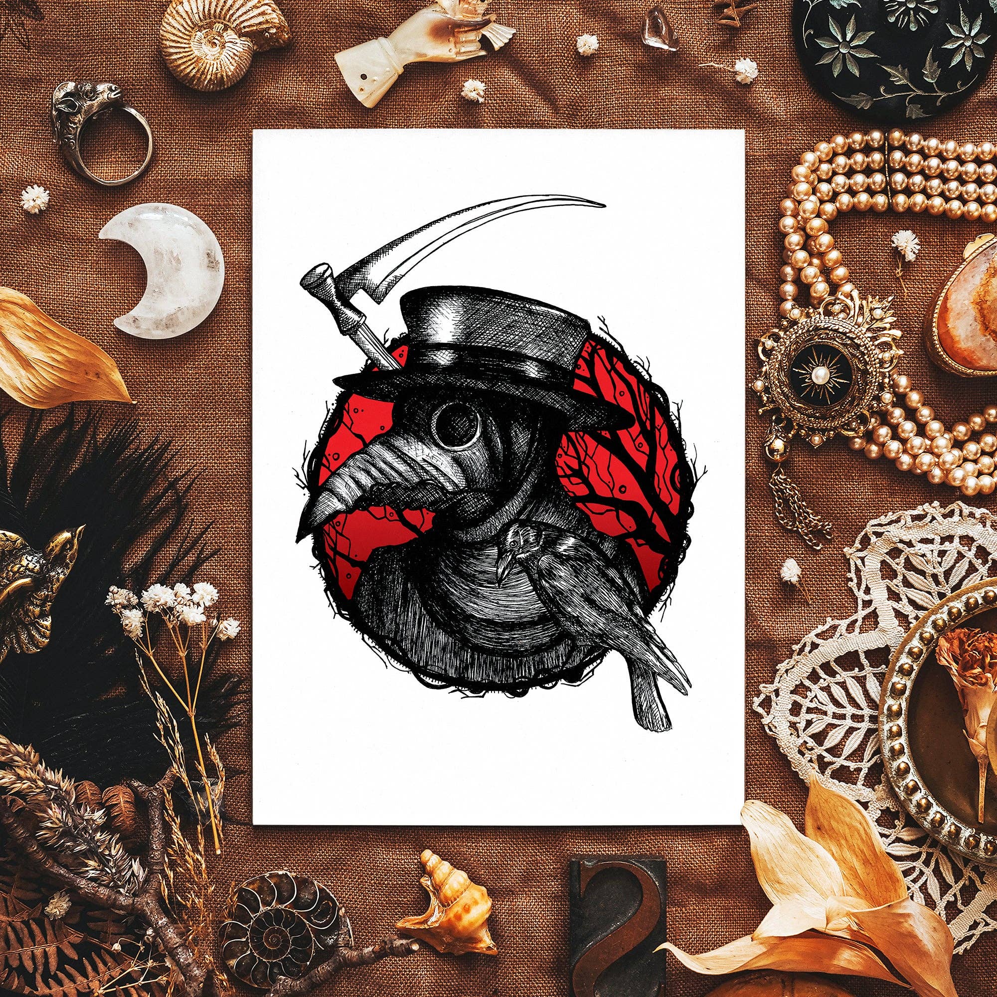 I'm Elyssa Long, a graphic designer and illustrator from London, now living in Nottingham, and the creative behind Print is Dead. Created during my MA in Graphic Design and Illustration at Nottingham Trent University, Print is Dead is a celebration of my love of mythology and gothic imagery, with a side of esoteric symbolism. Most of my work involves pen and ink drawing and digital artwork, exploring the beauty of the macabre, heavily inspired by vanitas and memento mori and drawing on the rich history, mythology and folklore based around the cyclical nature of life and death.