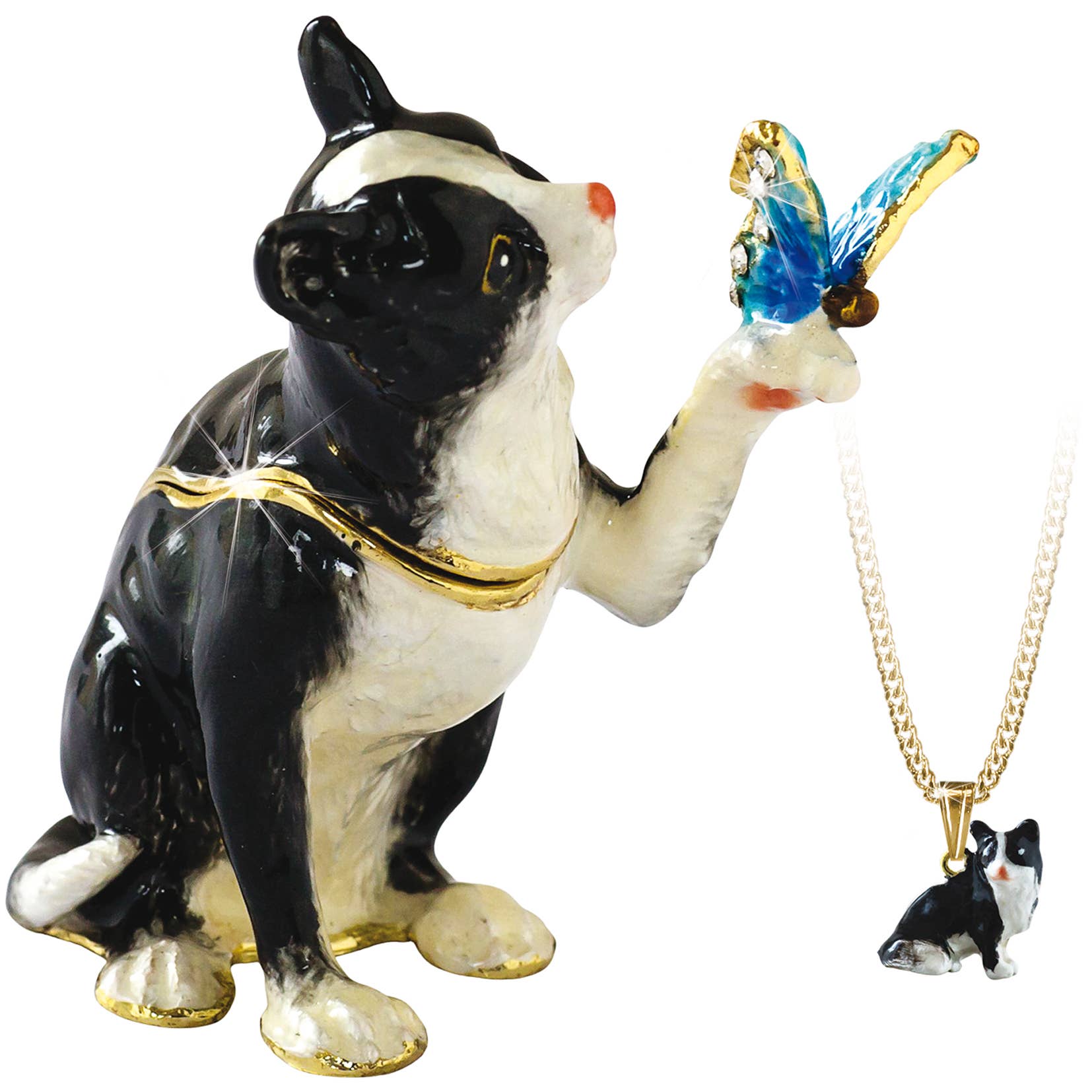 A stunning range of jewelled trinket boxes which includes two themed collections recreating famous characters from Alice in Wonderland and the Wind in the Willows. Items are hand cast in Pewter and then Gold or Silver plated. Individually hand painted with vibrant coloured enamels. All trinket boxes contain a matching pendant necklace and are gift boxed.