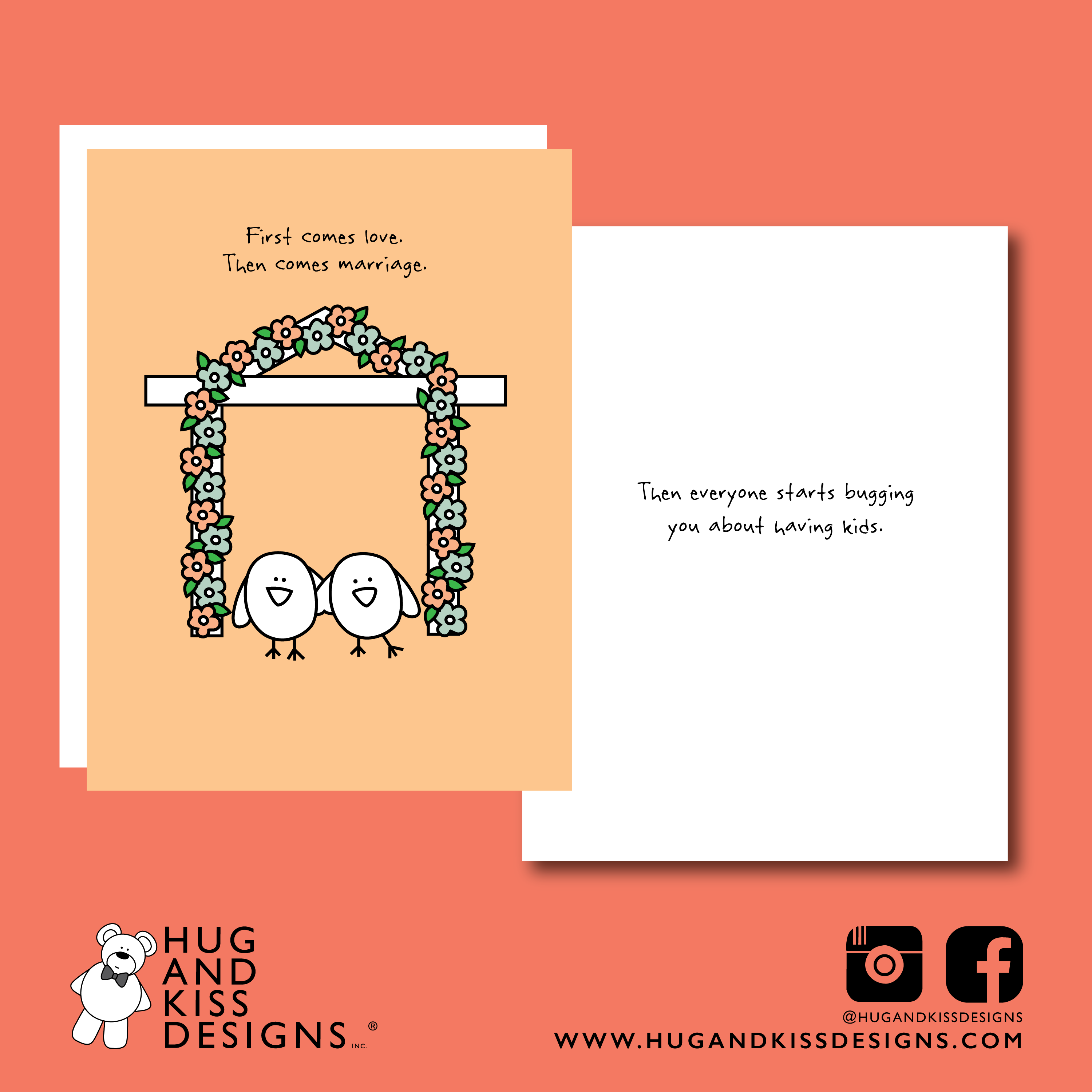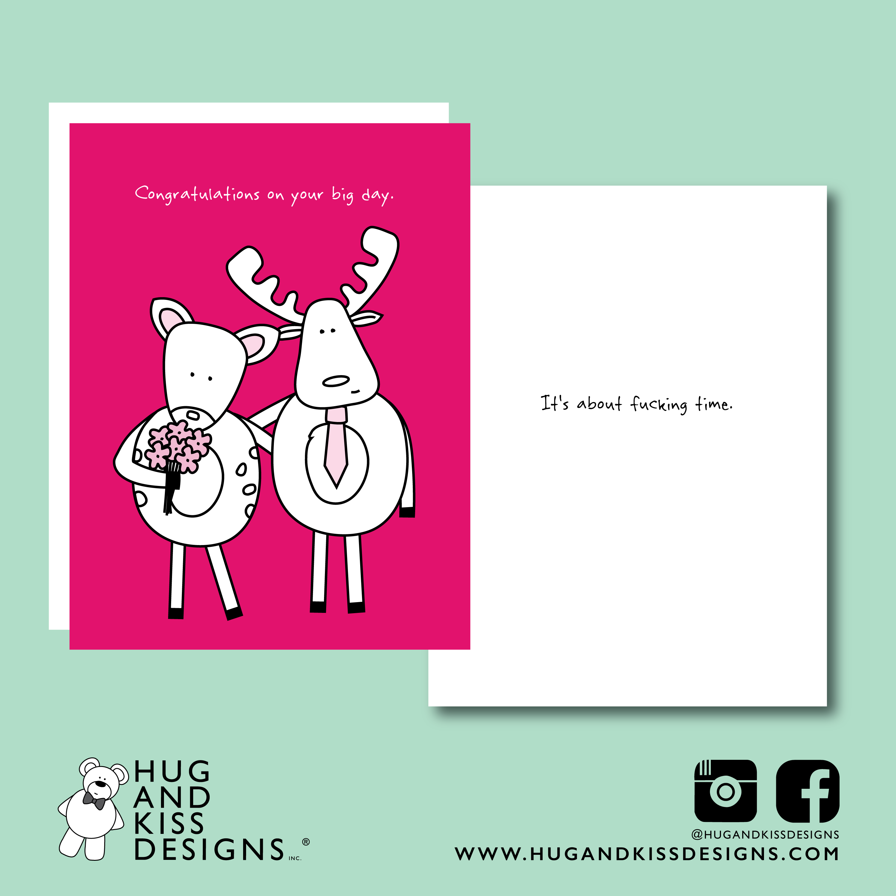 Nikki is a journalist and copywriter based outside of Vancouver, BC. She founded Hug + Kiss Designs Inc. on a whim back in 2007 after she realized how truly predictable greeting cards were! She decided to combine a sweet cartoon illustration with an unexpected sense of humour (involving lots of swear words/sarcasm/sass) and it turns out she had created the perfect combination that people were looking for! In the 16-years since it was founded, Nikki has had Hug + Kiss Designs cards in over 100 retail locations across Canada... and a few others abroad. All her cards are printed by a family-owned print shop, but then creased, cut and folded one at a time in the Hug + Kiss Designs office! (Meaning Nikki herself actually touches each and every card!) You don't need to worry about quality here, because with a perfectionist attitude, nothing but the best ships from this office!