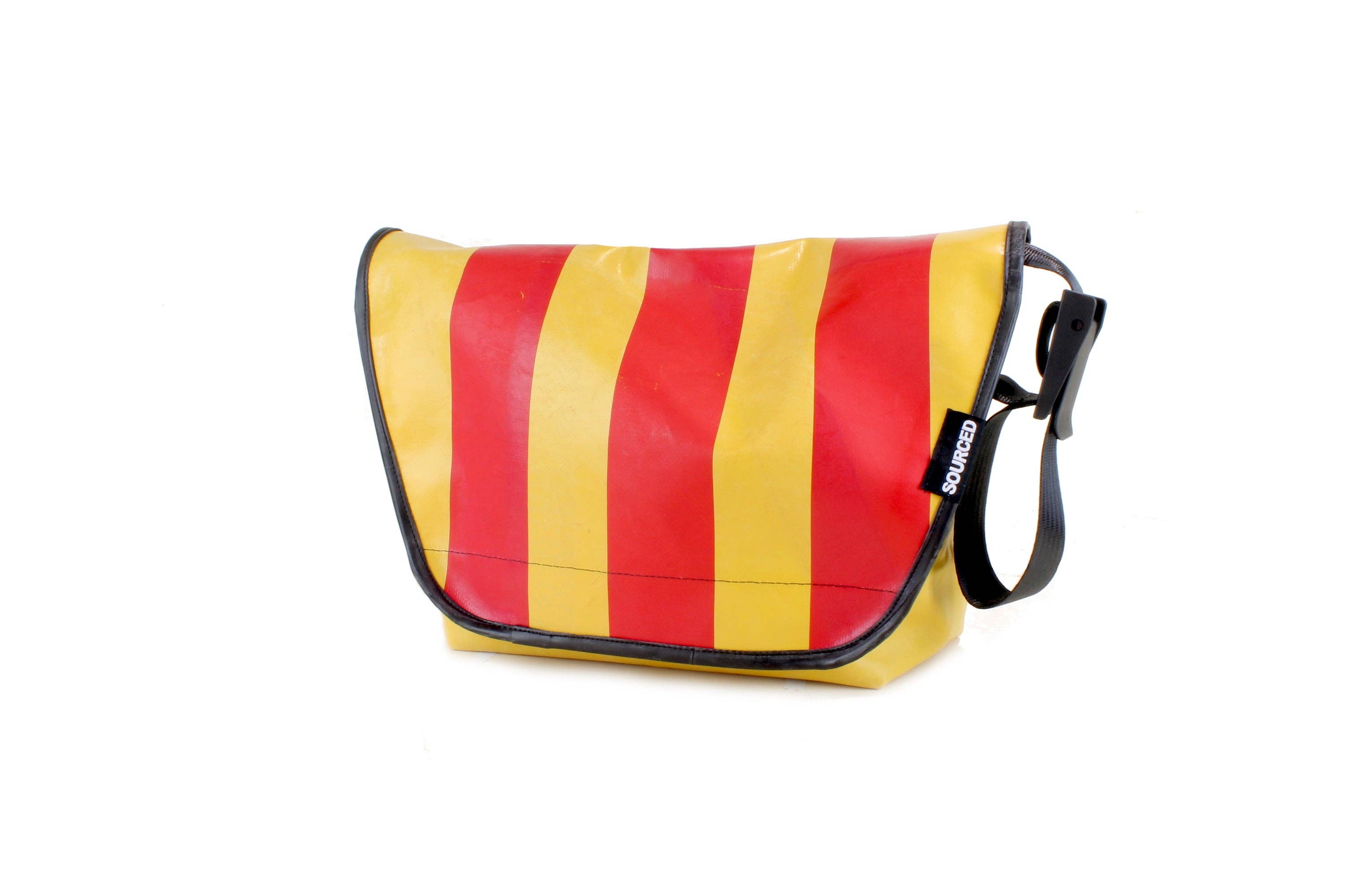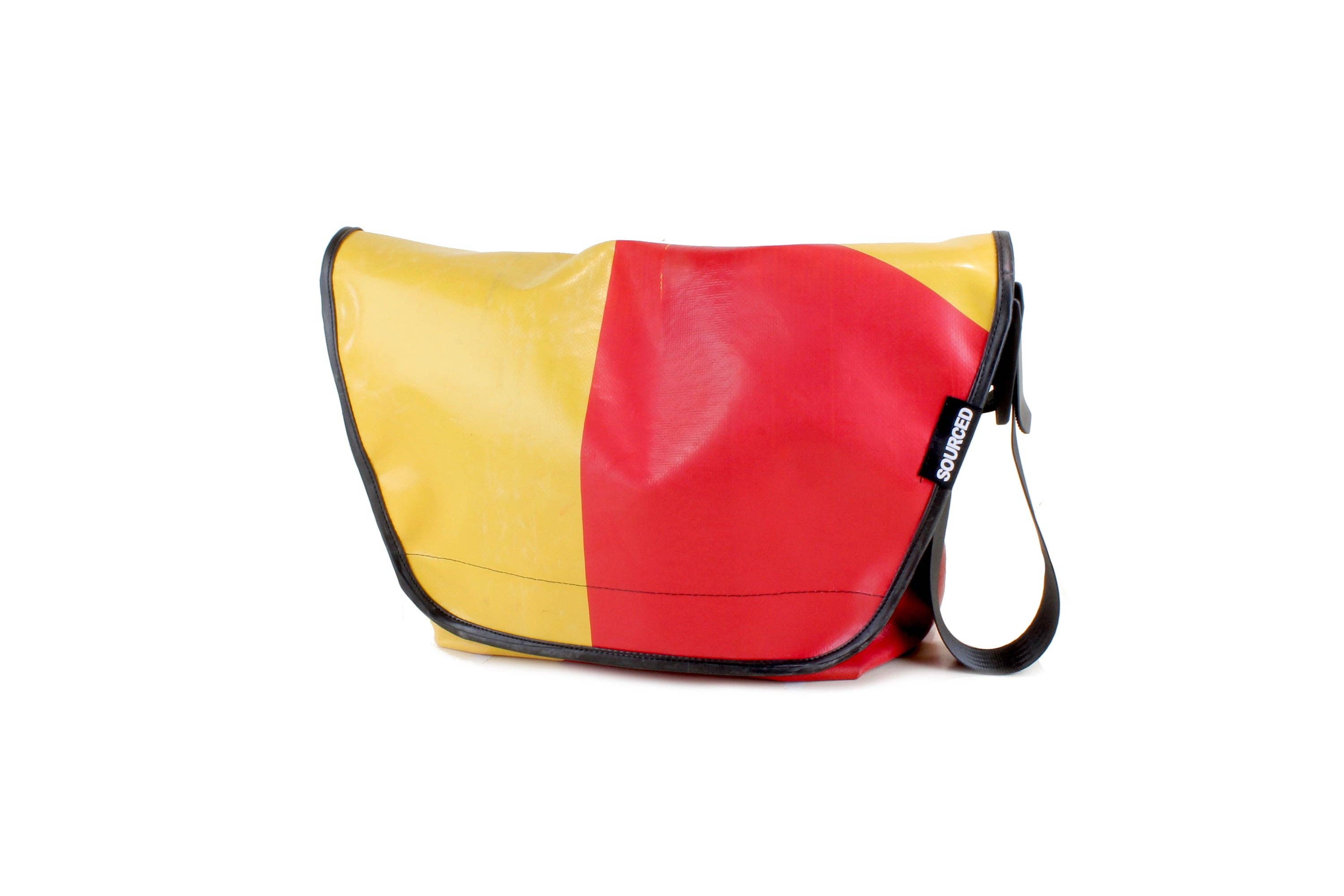 SOURCED produces bags and lifestyle accessories from recycled truck tarpaulins. Every bag we make is unique, due to differing logos & markings. Our truck tarpaulins come from the road networks of Europe. We search high & low to find old truck curtain. This thick, waterproof material would otherwise end up in the landfill. We design and manufacture all our products in the UK. Bags are produced in small batches and can be customized on request.