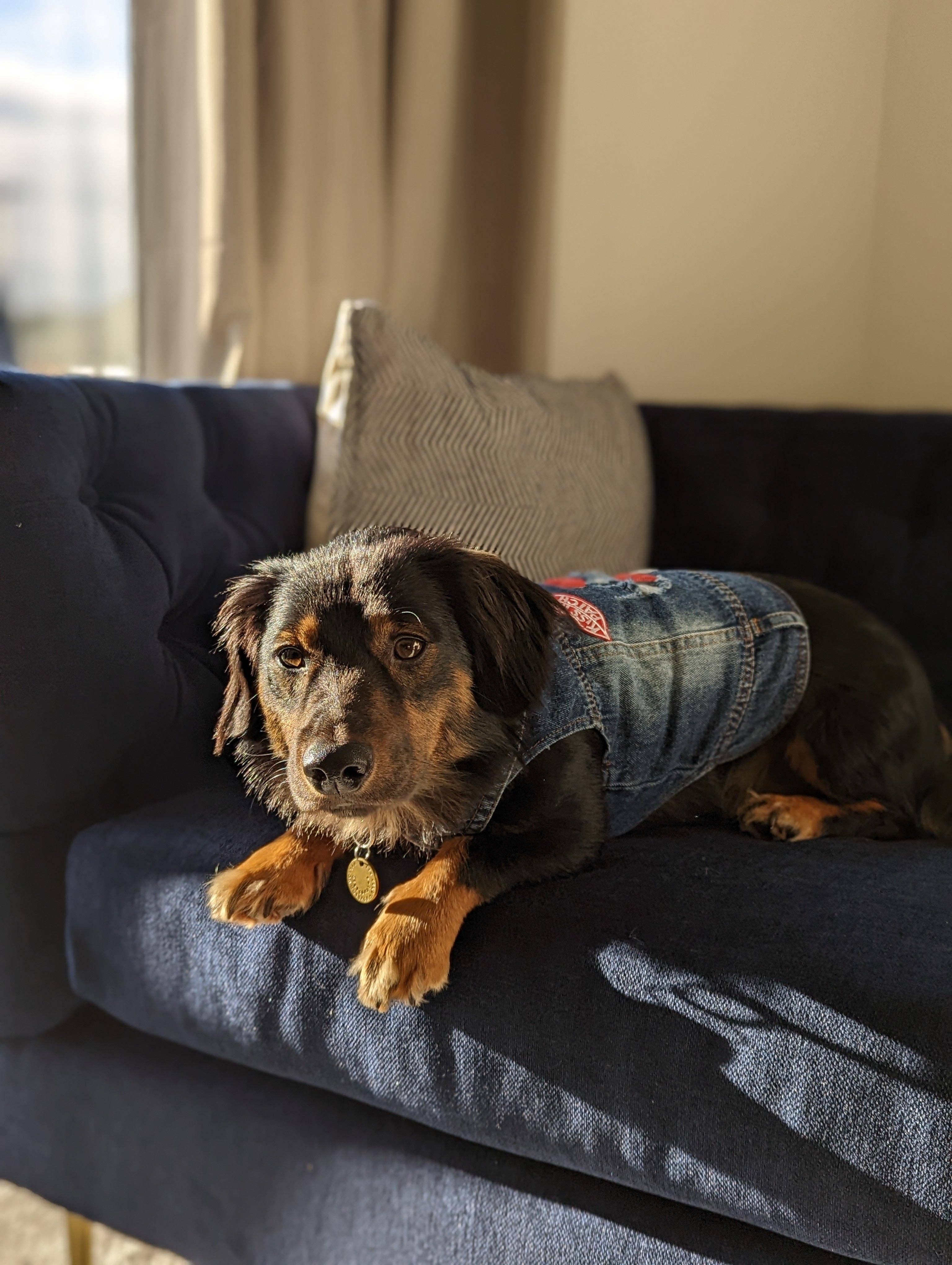 Hi! I'm Jess andI LOVE dogs. I have been running dog events with my partner for a good few years now and whilst there I sold everything dog related from bow ties and yaks to dog hats and dachshund socks.I really wanted a customised denim jacket for my dachshund, Neegan but couldn't seem to find anywhere online that did exactly what I wanted... So I made my own! Everyone that saw Neegan in his jacket wanted to know where it was from and if they could get one so I set this website up and started offering other people the chance to customise a denim jacket for their pooch!I would LOVE to see your doggo in a denimdogg jacket super soon πΆπ€