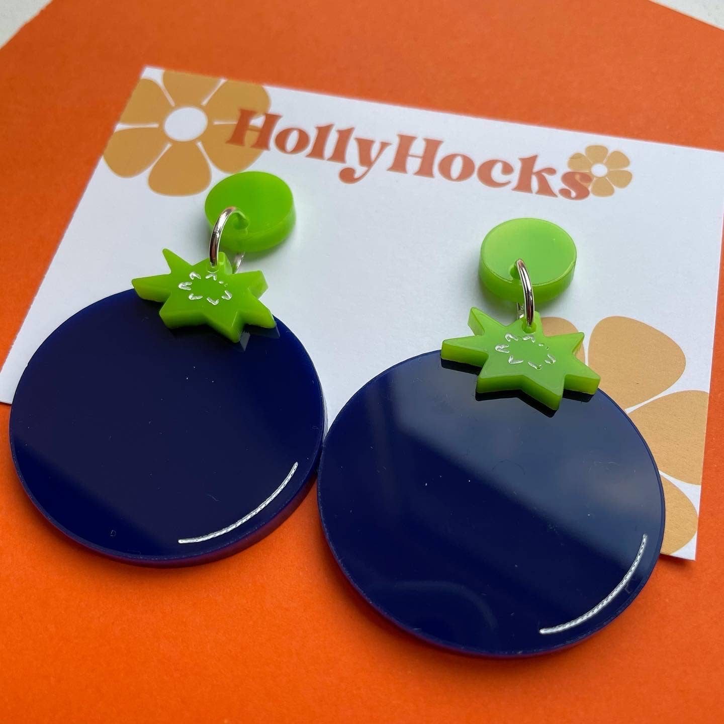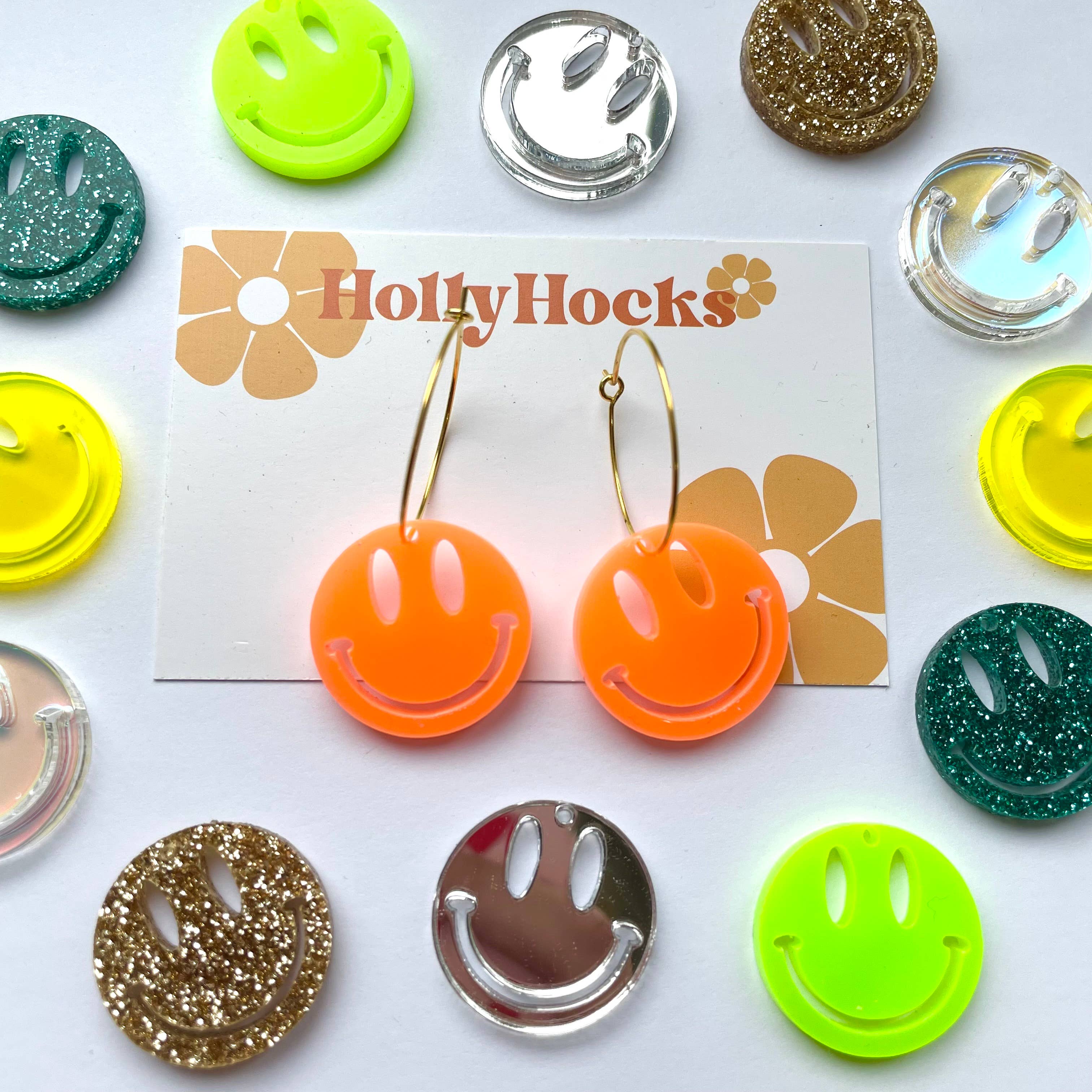 Each item is designed, lasercut, assembled and packaged by a 1 woman team in a small studio at home. HollyHocks is all about fun, bright, colourful statement jewellery and accessories with an aim to bring a smile to your face! Most items are available for colour customisation so you can pick the perfect earrings for your store! By using acrylic the earrings are lightweight and comfortable to wear, and the use of hypoallergenic metal studs means no nasty irritated ears.