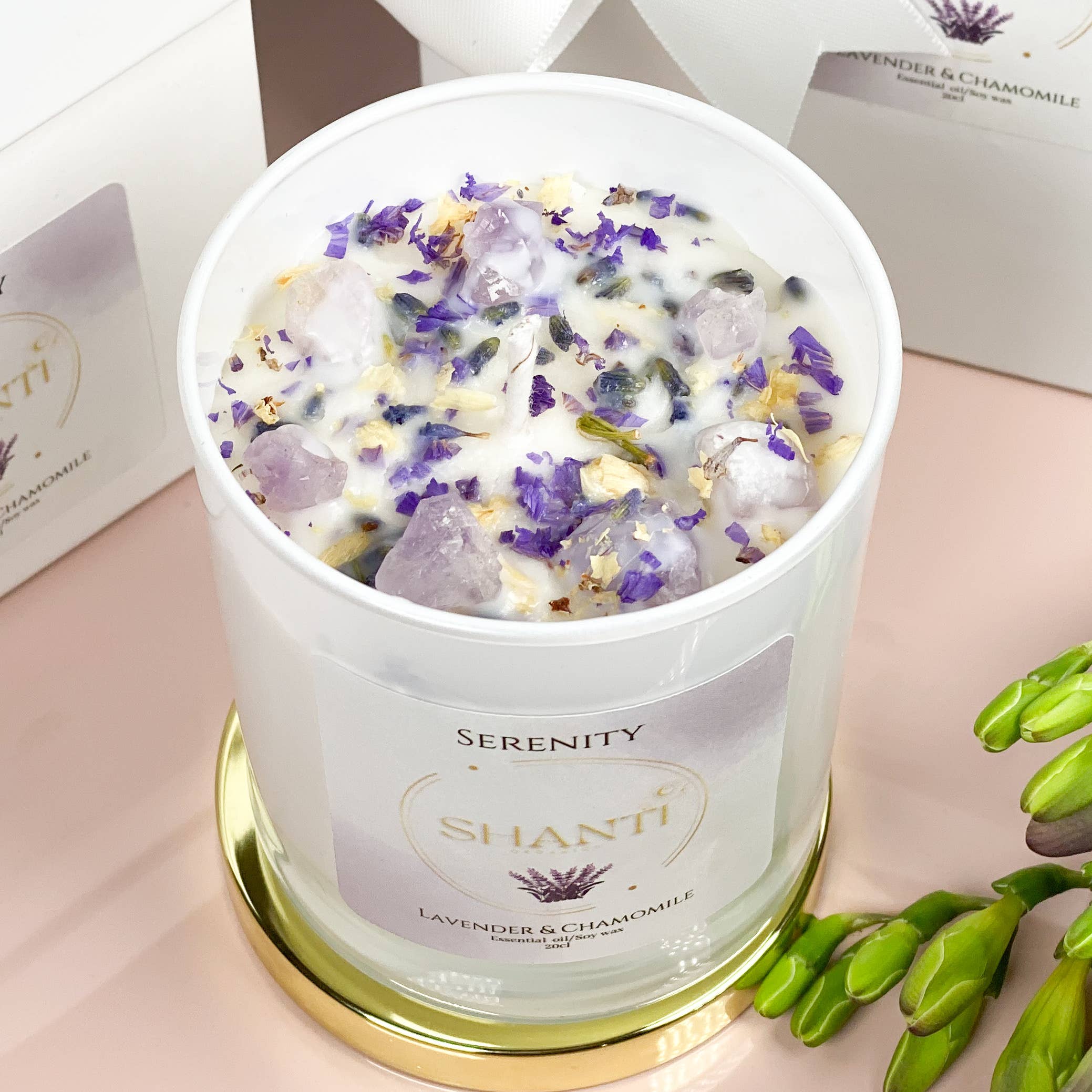 Shanti Organics was born in a beautiful seaside town of Teignmouth, Devon by yogi and nature lover, Denisa. As a big believer, that nature has everything we need to help us on our healing journey and promote our health and wellbeing, I combined my passion for flowers and aromatherapy into one. Creating beautifully decorated candles using dried herbs and flower petals, infused with the aromatherapeutic properties of essential oils, topped with healing crystals. Every candle is crafted with love and great care, using 100% natural ingredients, vegan and cruelty free, infused with only the best essential oils on the market.