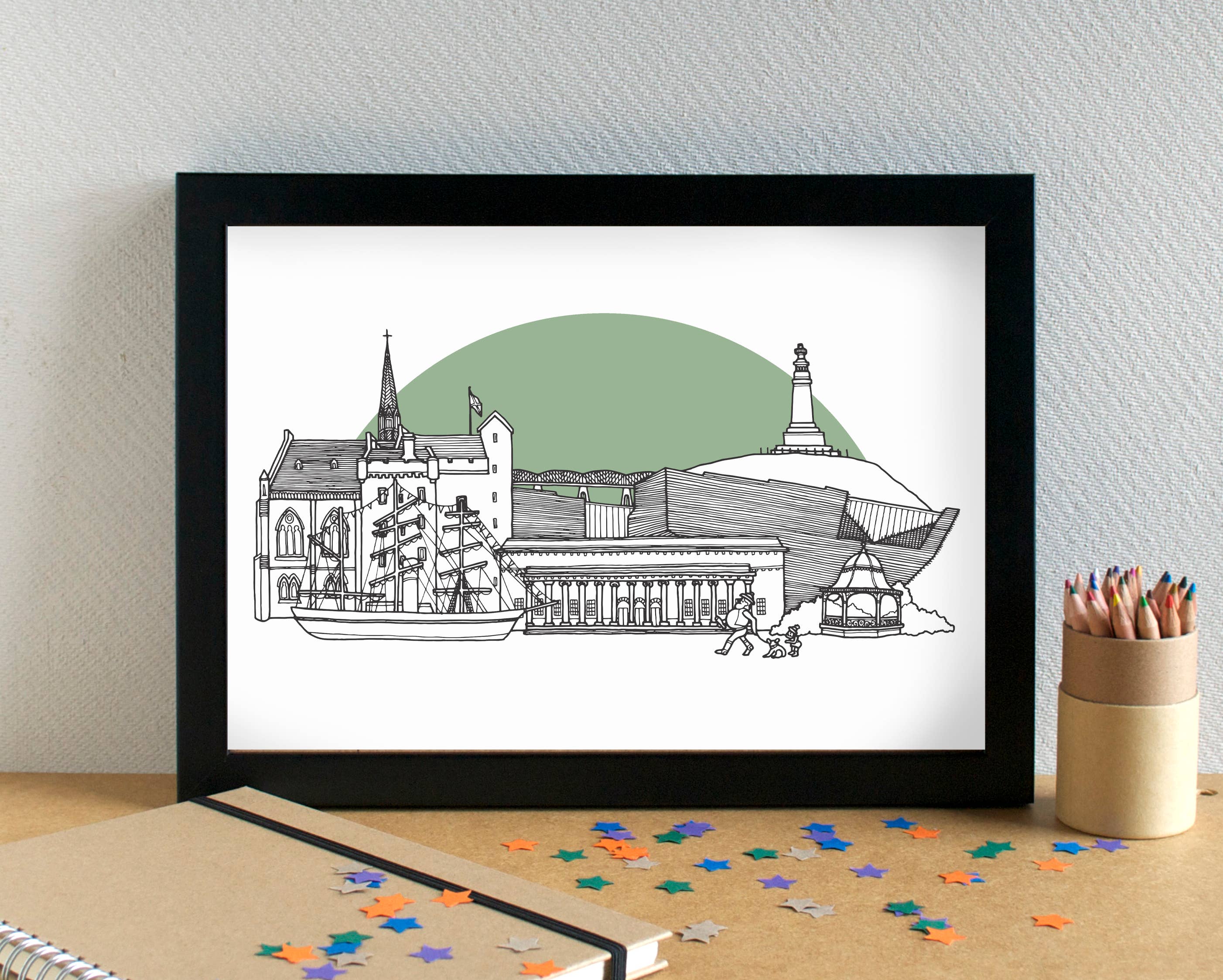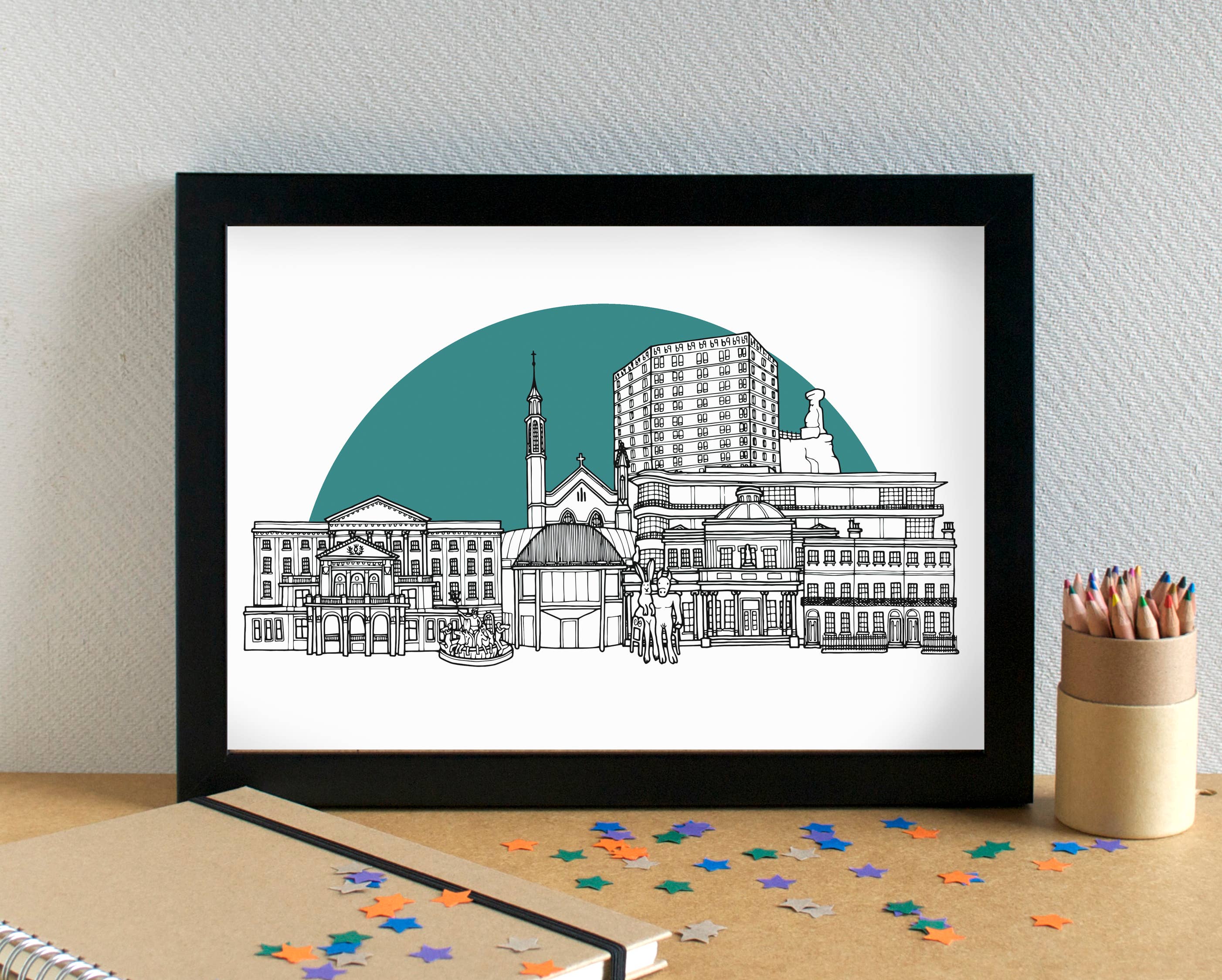 I'm an illustrator based in Liverpool, UK. I create greetings cards, art prints and giftwrap adorned with my illustrations. I have two main ranges: Alphabets, which are a series of themed alphabet illustrations featuring different food types or hobbies. Skylines - an ever-expanding series of black and white line-drawn illustrations of cities and towns - predominantly UK locations, but also some international locations. I've drawn over 190 skylines to date - have I drawn your town or city yet? I also have a range of funny food-based greetings cards. I am passionate about minimising waste, and aim to be as plastic-free as possible. My cards are all supplied with a low-adhesive sticker to keep the card and envelope together; my prints are supplied in biodegradable cello bags, with recycled greyboard and sealed with a sticker. I reuse packaging materials as much as possible. All my products can be recycled or repurposed after use.