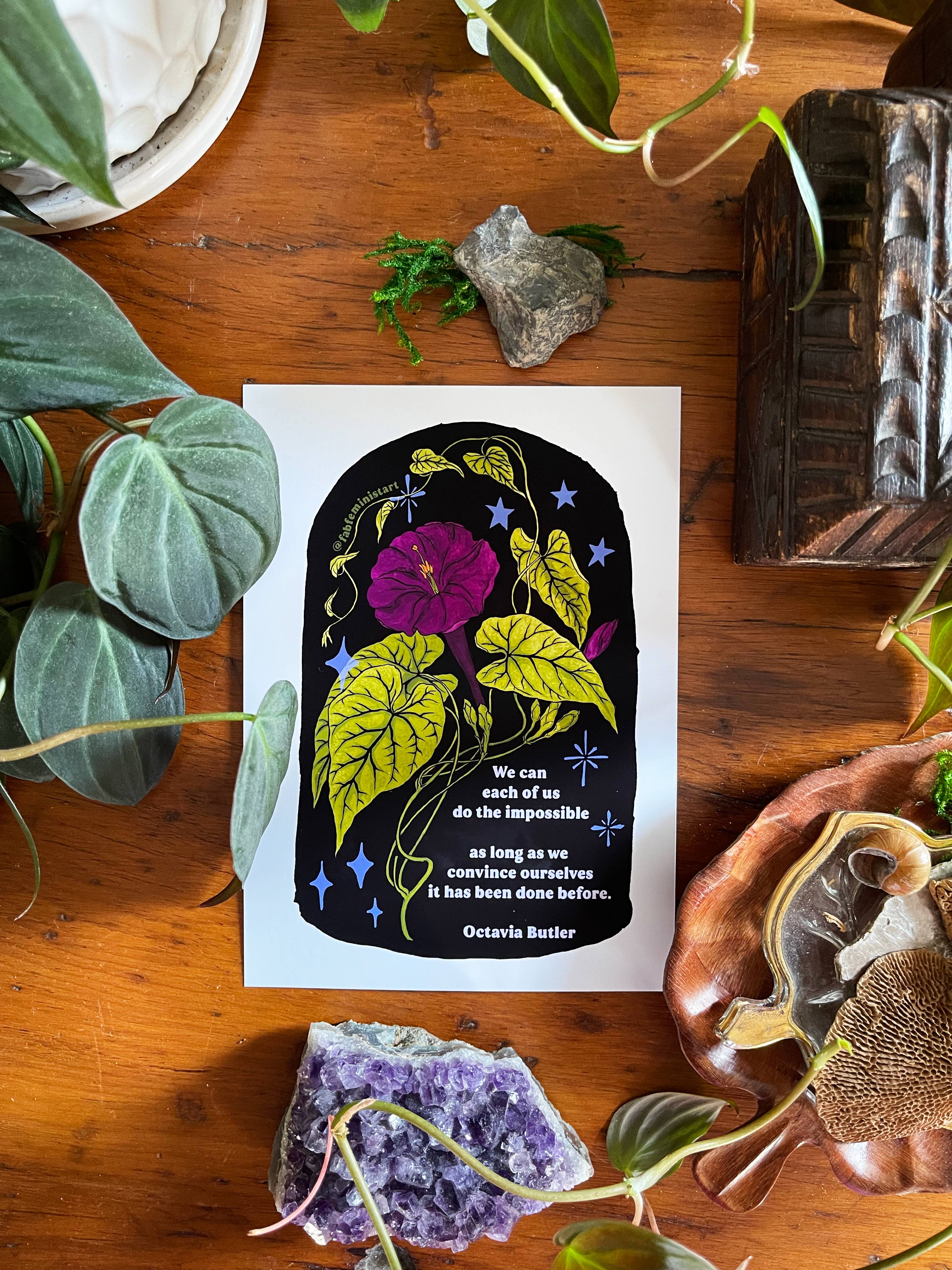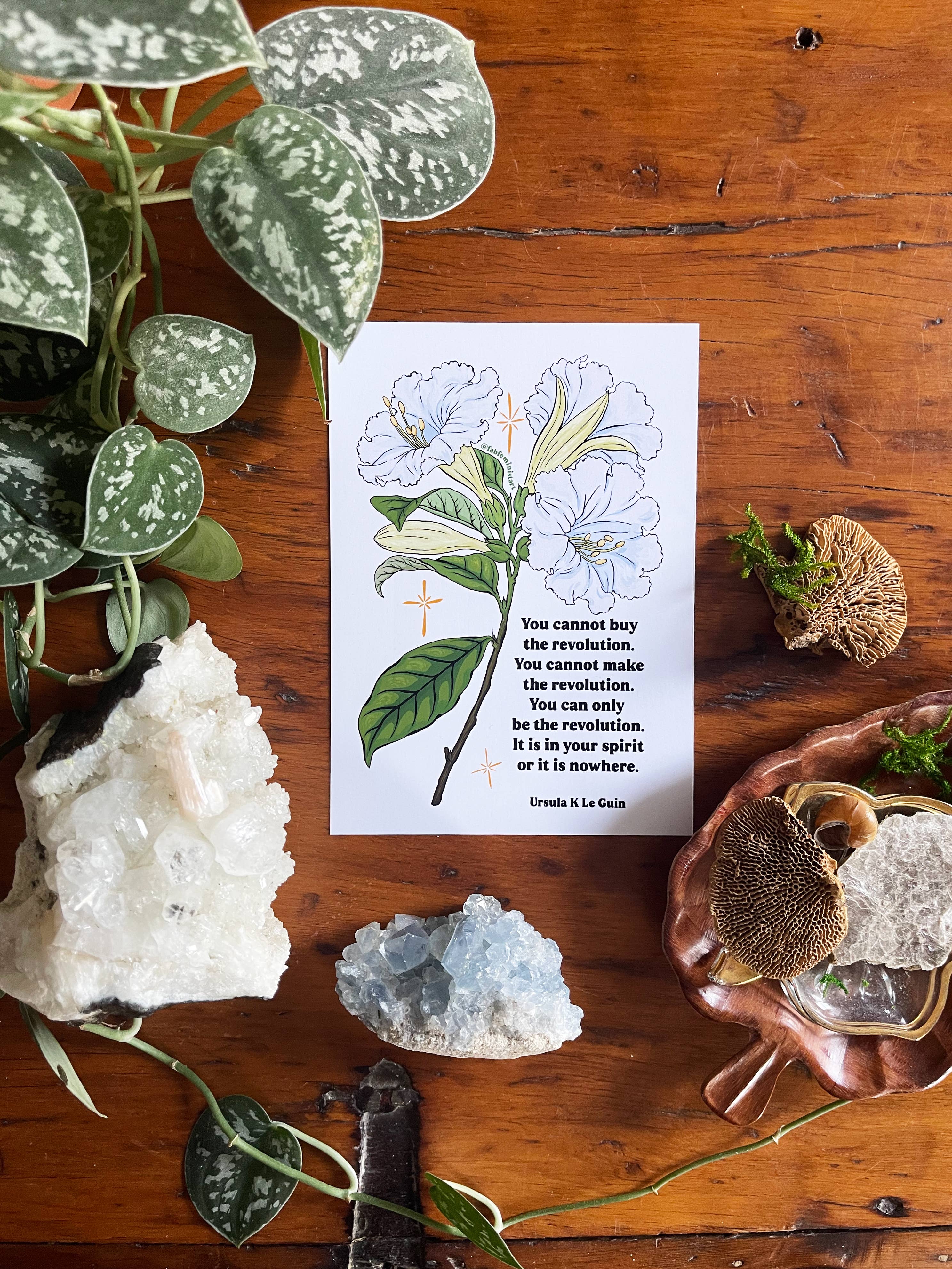 Fabulously Feminist was founded by artist Callie Garp & is located in Pittsford, New York (just outside of Rochester). Callie is a queer female feminist entrepreneur, invested in creating ethical goods that celebrate and affirm people who are otherwise marginalized in their daily lives. Every single Fab Feminist item features an original work of art, designed to inspire others to be kinder to themselves, and the world. Fabulously Feminist is all about creating art for social and eco justice. With my aesthetic inspired by nature and my love of gardening, I hope to bring joy into peoples' homes, and to foster a sense of belonging and connection. We are all working towards becoming our best selves, and especially loving ourselves for exactly who we are. I hope my art helps others on that journey. This creative life can be very busy and challenging, but the magic happens in that moment when someone picks up a Fabulously Feminist print and says, 'Thank you so much - you have no idea how much I needed to be reminded of this today.'