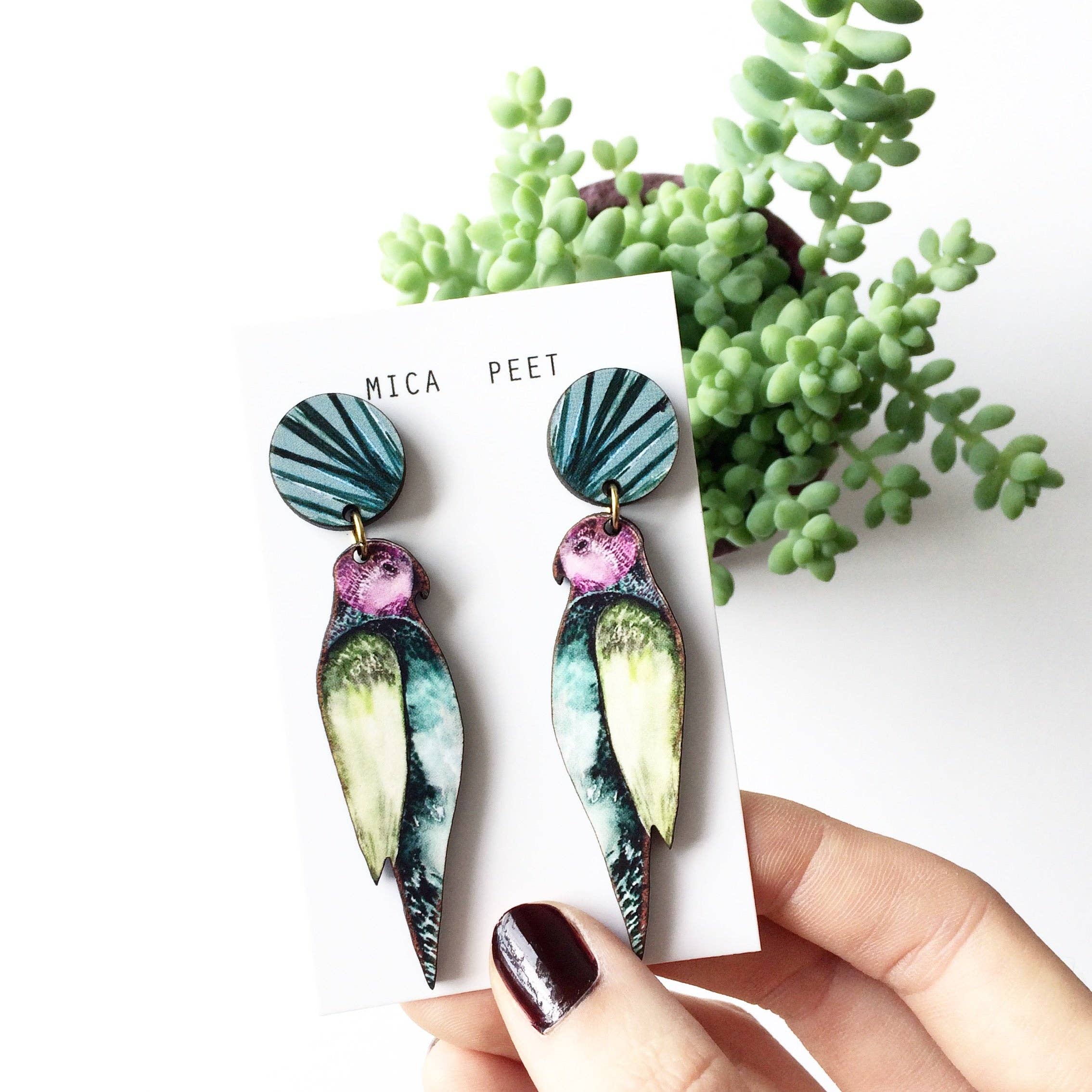 Hello, I'm Mica and i run my small jewellery brand from my home studio in Southsea, United Kingdom with the help of my wire fox terrier Reg. I create unique printed & gold jewellery inspired by my ever growing house plant collection and my love of the beautiful natural world, combined with modern & stylised shapes. Founded in 2013 after graduating from university with a degree in Fashion Textiles, I combined my love of print design, illustration & jewellery to create a unique collection of affordable yet beautifully crafted designs. My brand has been stocked in shops across the world, including the Tate gift shops, Kew Gardens, The Royal Academy, The Natural History Museum and The National Gallery in London