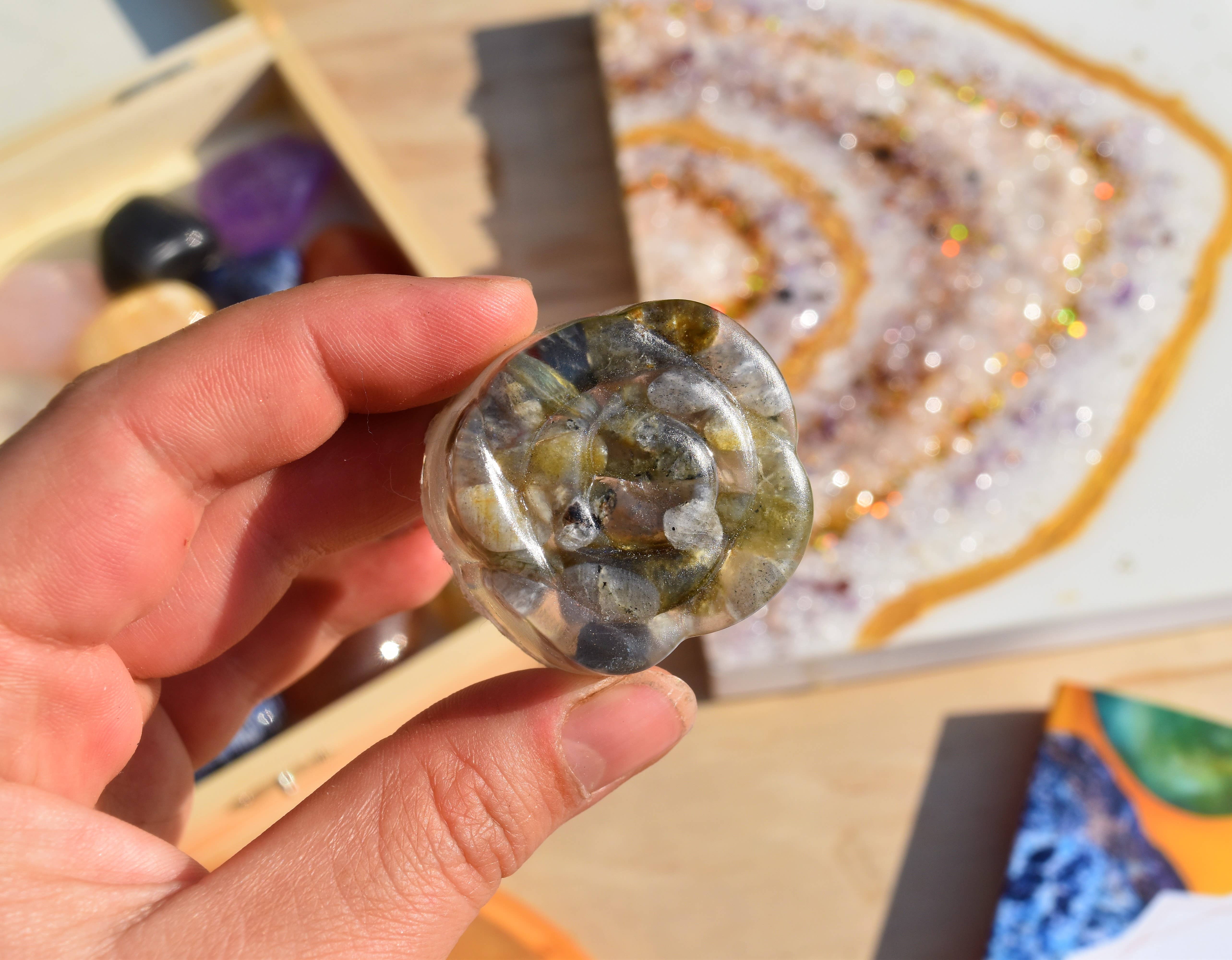 Knot Treasures started in 2013 with a love for creativity and imagination. My passion is to create unique and one of a kind products in my studio. I love to create with crystals & gemstones. Each product I create is made with love, care and positivity. I enjoy creating a wide range of products from jewelry & accessories to wall & home decorations. I started Knot Treasures with creating hemp jewelry and my business evolved into wire wrapping crystals while making wearable art. My other passion is being in nature whether I am going for a daily walk with my dogs, hiking or going fishing, skiing with friends and family.