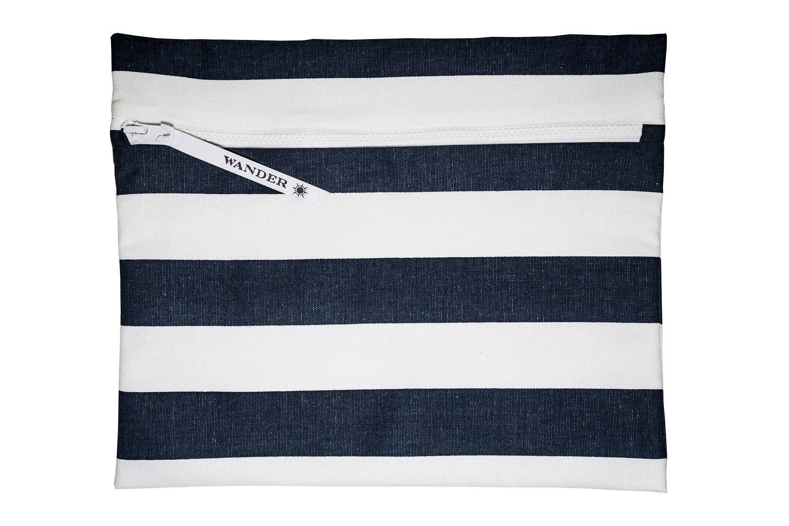 Wander & Perch makes chic wet swimsuit bags and wet/dry travel pouches to protect dry items while you're on the go. As seen in People Magazine, Real Simple, The Zoe Report, Refinery29, Brit+Co, and more. Living by the beach in Southern California means there is always a reason to get out in the sun. If by chance it happens to be cloudy or otherwise "cold" (in other words less than 70F degrees), then you just head to hot yoga. I found myself searching everywhere for a cute bag that I could put my wet bikini or yoga gear in as I zoomed around town, but everything was so... utilitarian. I decided to create my own chic wet swimsuit bag that would be beautiful, reusable, reliable, and, most importantly, would make me smile every time I used it. Initially I just made one bag to use myself, but soon my friends started asking me if I could make them some. I made a couple to carry my sons' change of clothes to swim class with and bring their wet bathing suits home with and other moms asked me where I got them. They worked so well that I made one to keep my phone dry, sand-free, and hidden in my beach bag. One of my sisters-in-law wanted one for her trip to Belize. I made a couple more for myself for my intimates so the TSA couldn't see my business when I went through airport security and fellow travelers asked me about them. Shortly thereafter, I realized I was on to something, and the Wander Wet Bag™ was born. Eileen Zimmerman, Founder