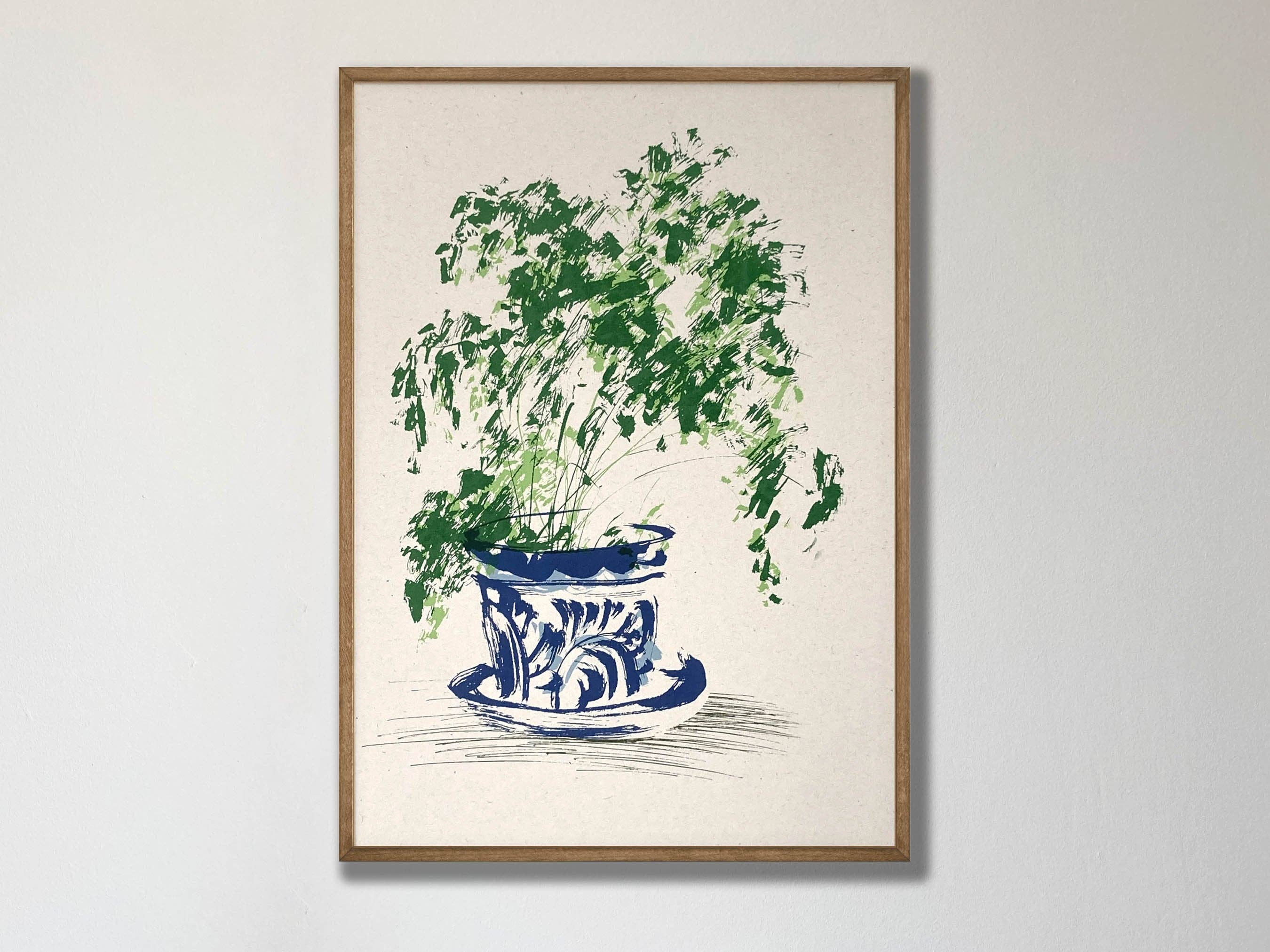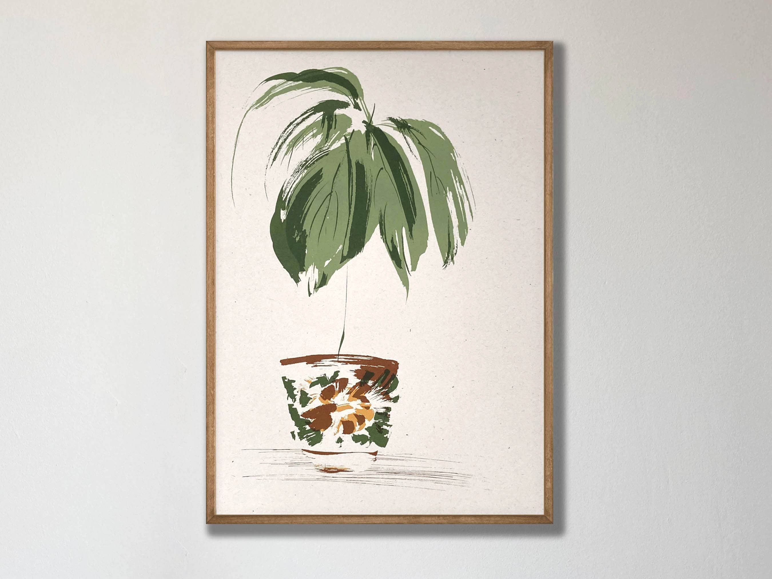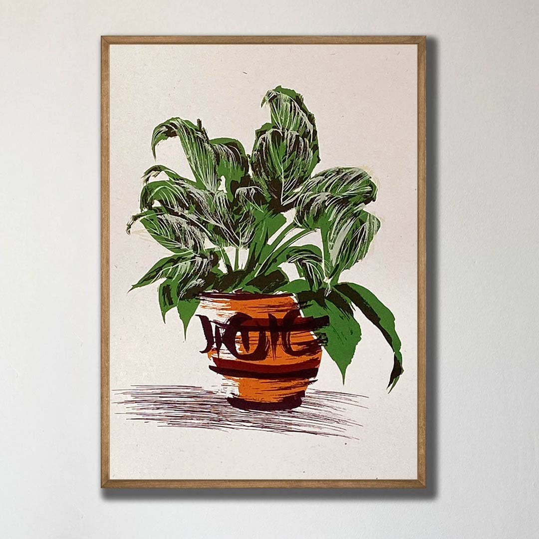 I love drawing plants! My work is inspired by the plants in my home and the vintage ceramics that I collect to plant them in. Drawing technique is very important to me and the way I make work. I adore the way a simple brush mark can describe so eloquently the form of a leaf or meandering stalk.