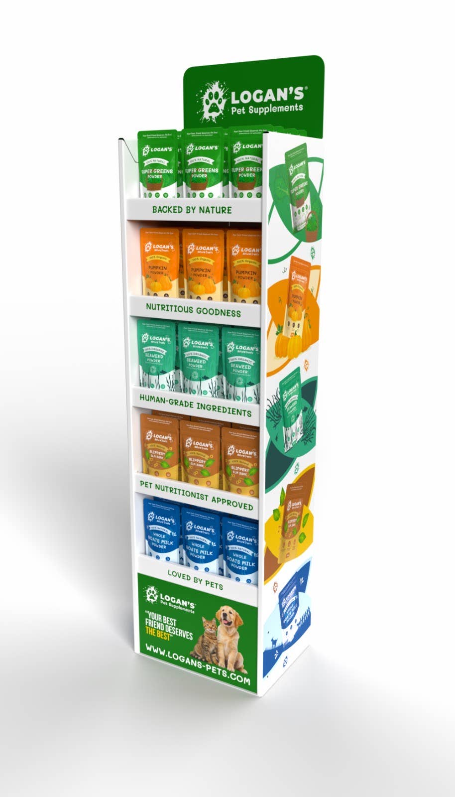 At Logan's, we believe that pets are not just animal, there cherished members of our families. This belief is at the heart of everything we do, guiding our commitment to provide only the vey best for your best friends. Our products are crafted from the finest human-grade ingredients, ensuring quality and mouth watering tasty flavours. Each supplement is approved by pet nutritionists, reflecting our dedication to excellence. From our popular Pumpkin powder, known for its digestive benefits, to our Seaweed Powder that promotes dental health, every product is designed with your pet's needs in mind. We understand that transitioning to natural supplements might seem daunting. That's why we're here to guide and support you through every step of the way. Our community of pet lovers is growing, and we're proud to have expanded our reach, with over 300 pet related businesses across the U.K and Europe now stocking our products. At Logan's, our motto is simple "your best friends deserves the best". Its not just a saying, it's our promise to you and your four legged friends.